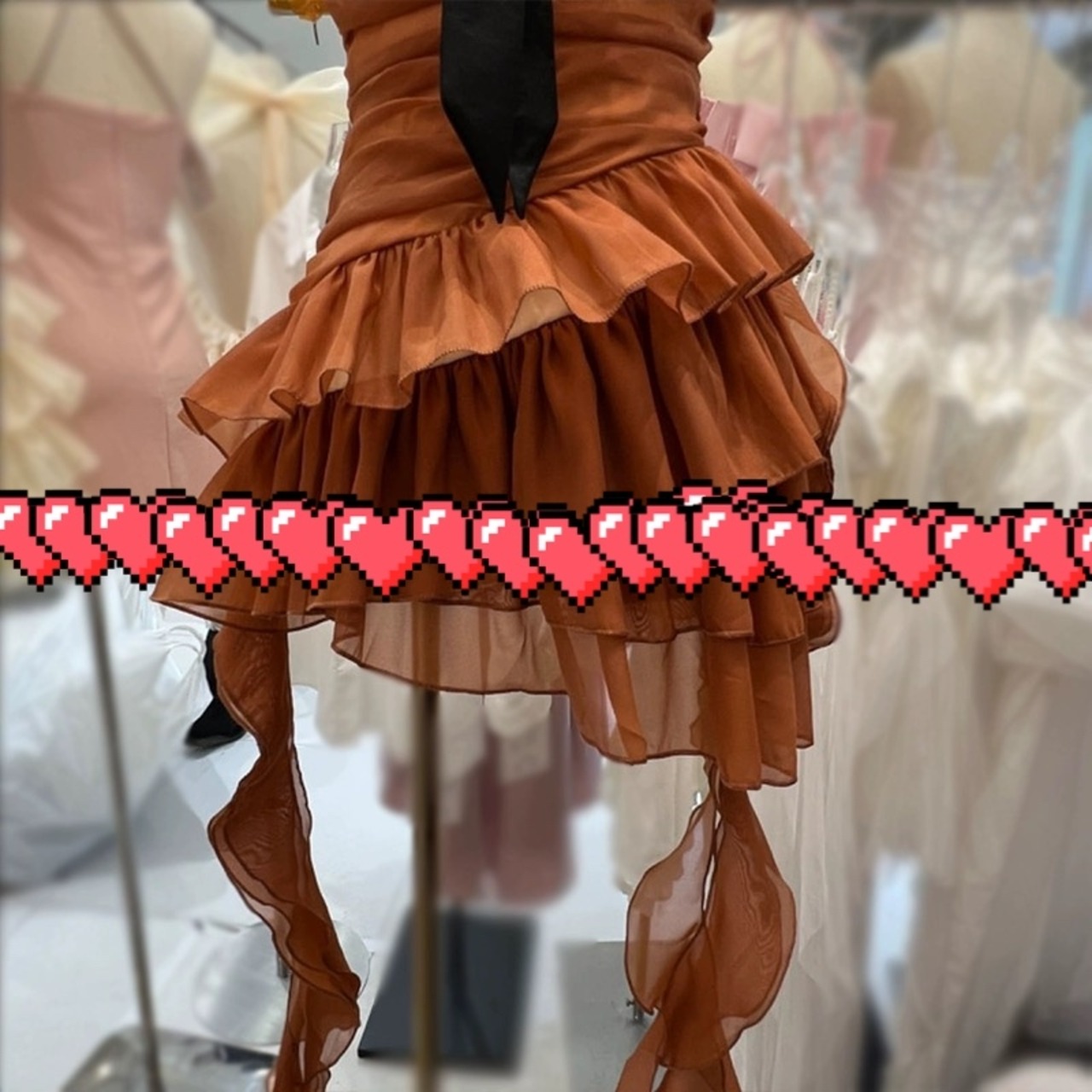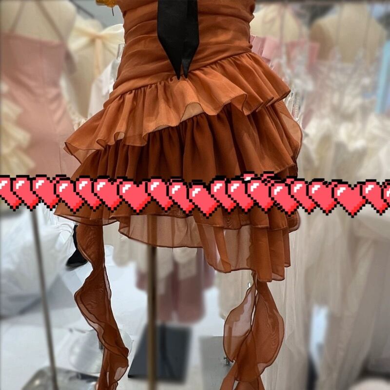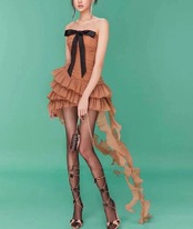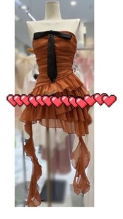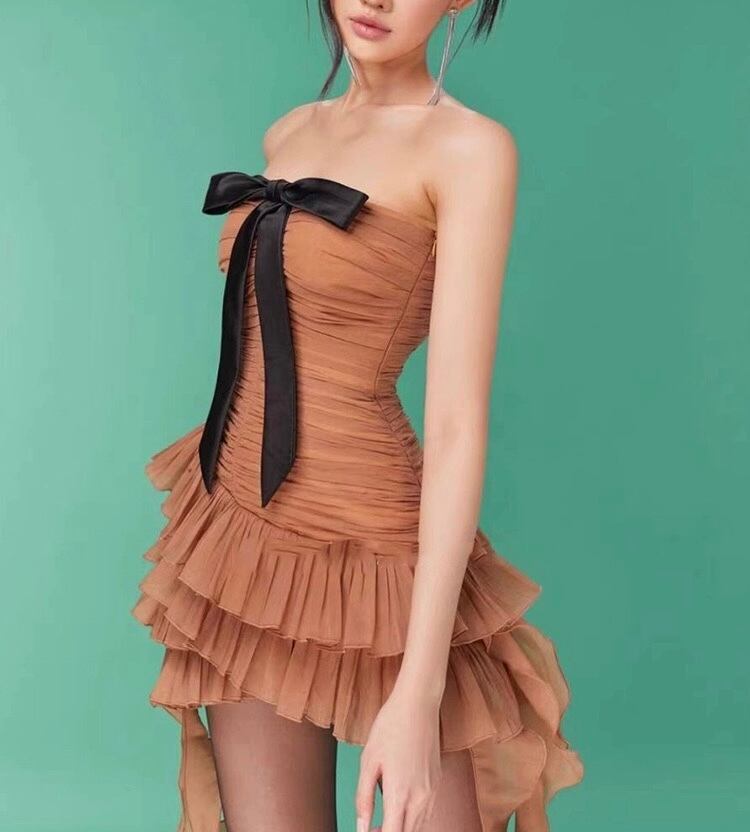 茶色 リボン ベアトップ リボン ドレス ワンピース