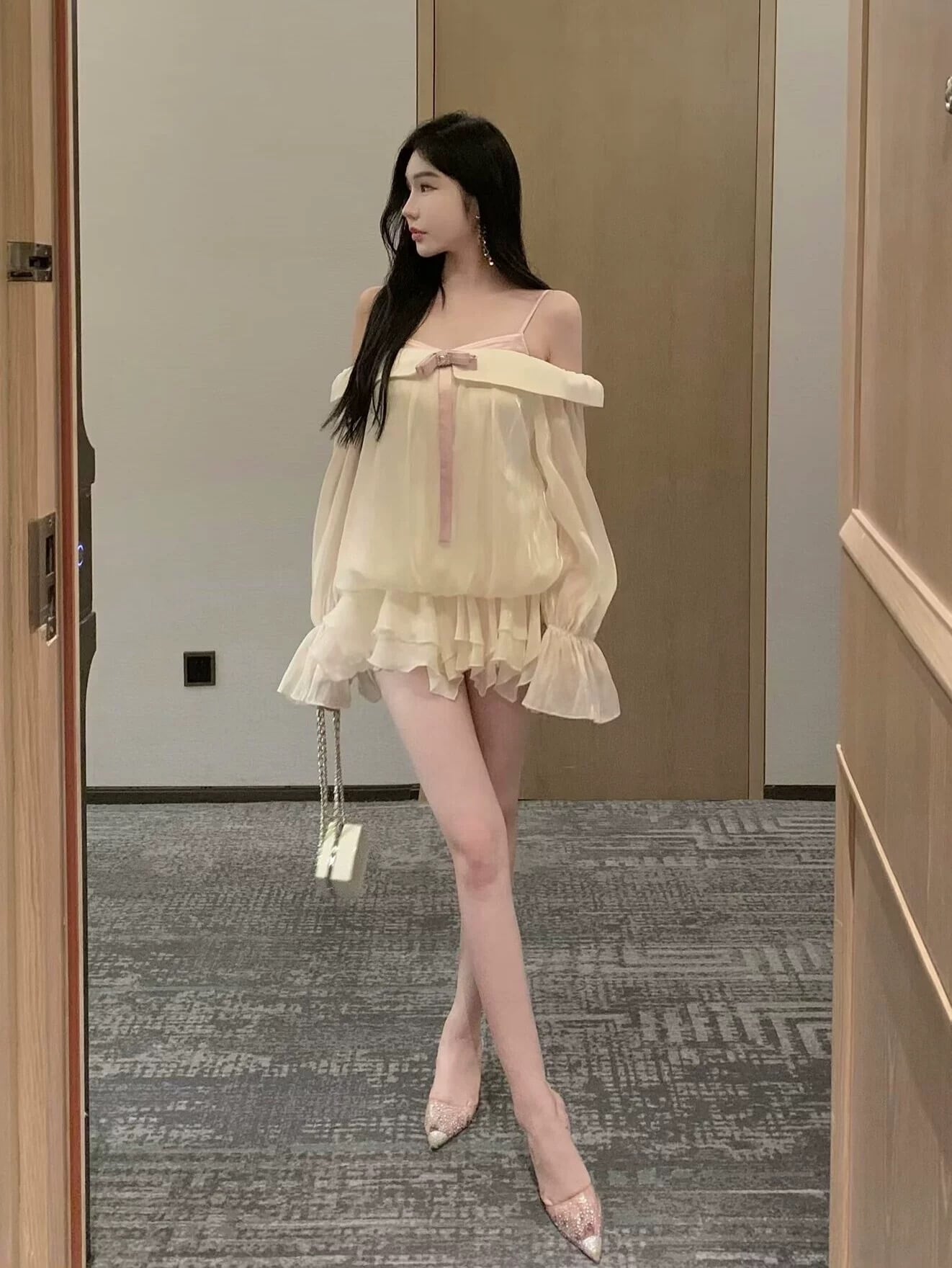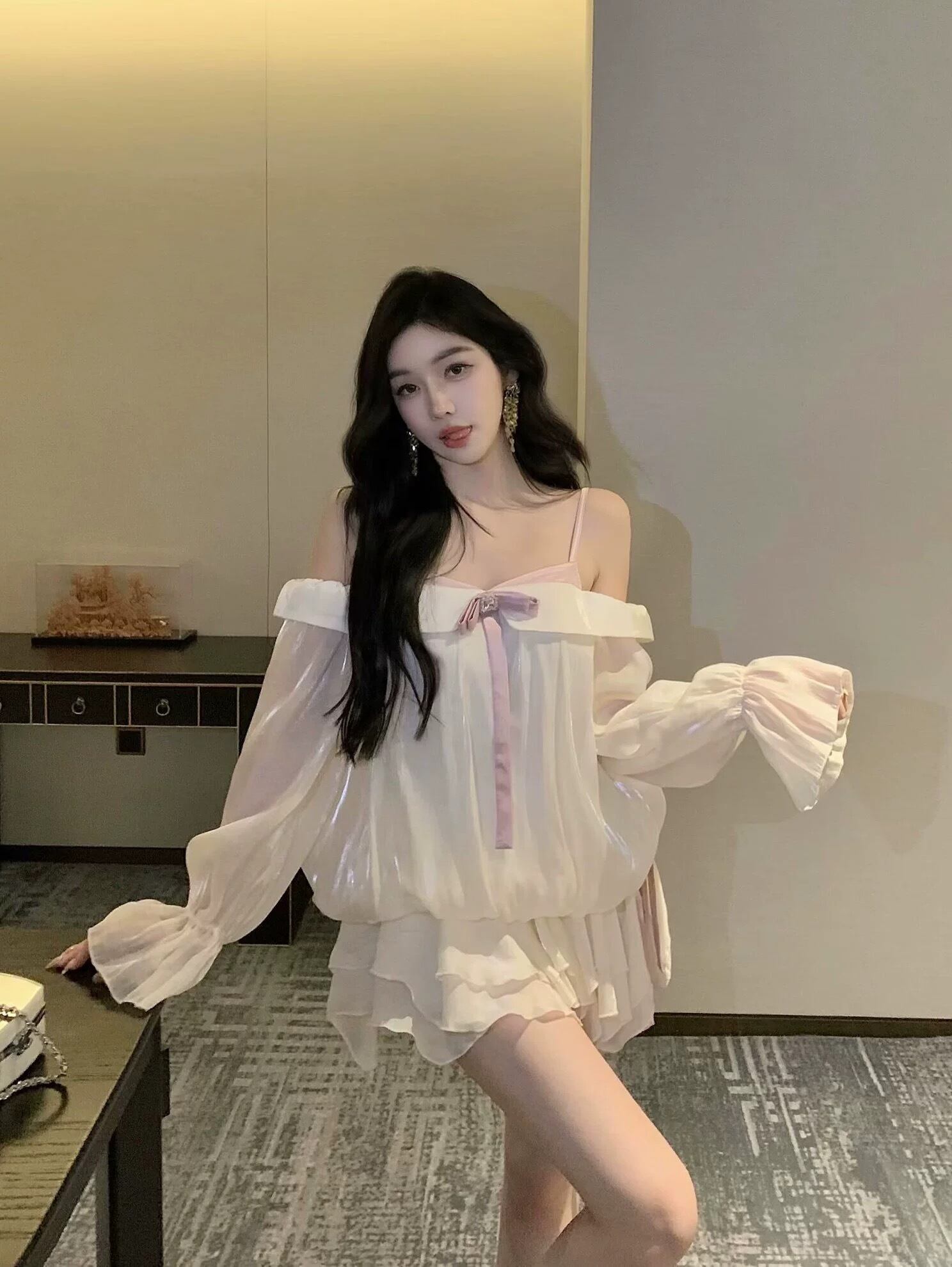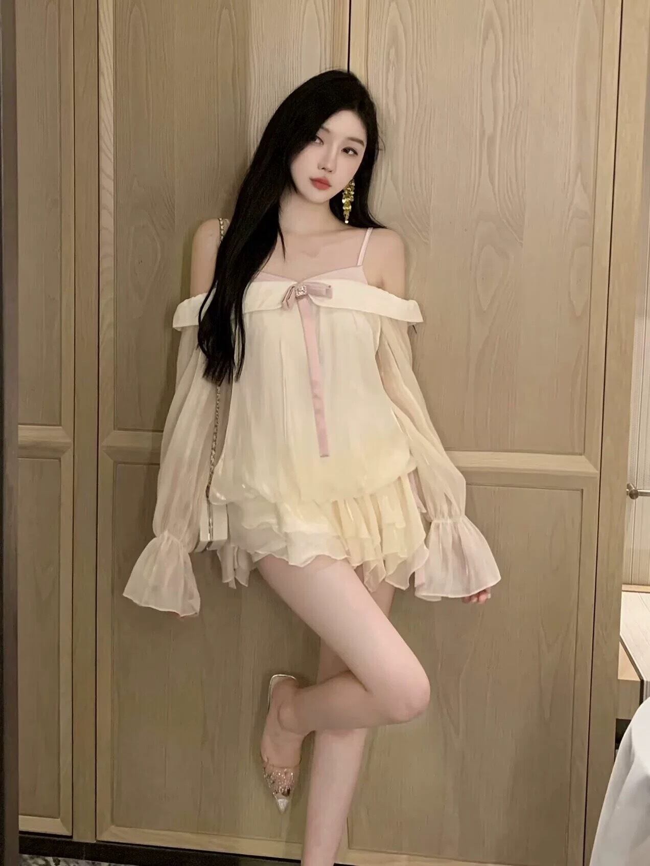 ブラウス ワンピース オフショルダー チュニック ガーリー