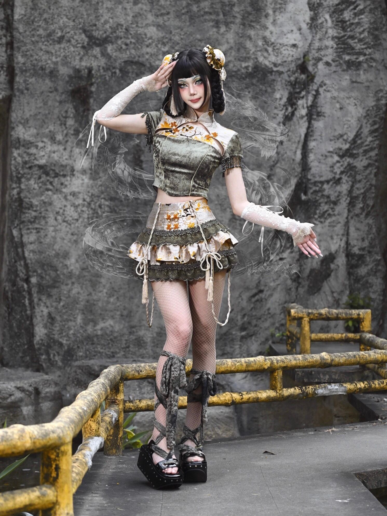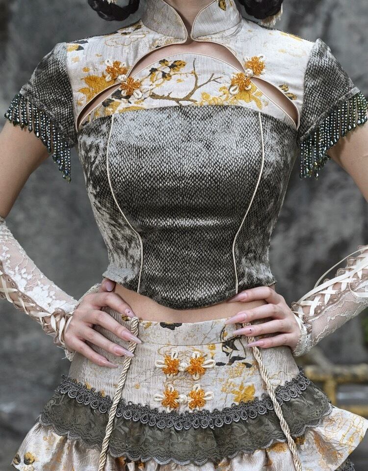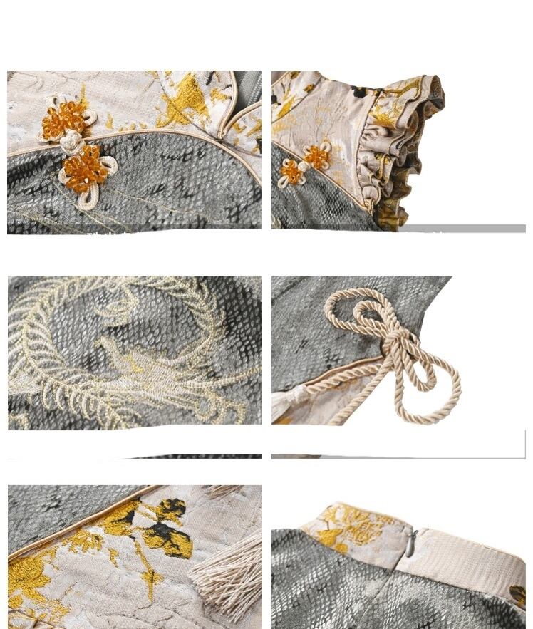 チャイナ コスプレ ゴールド カーキ ミニスカート ブラウス