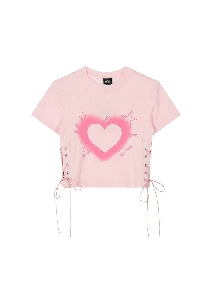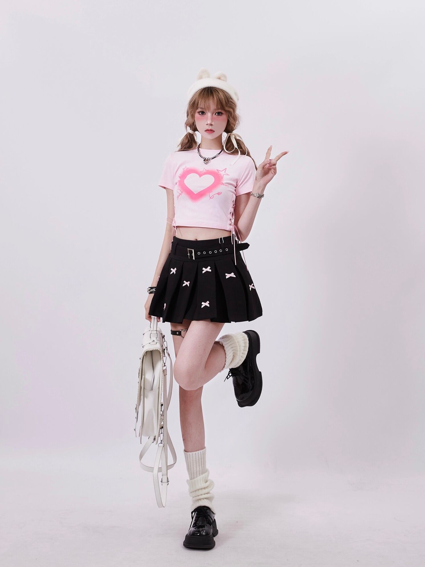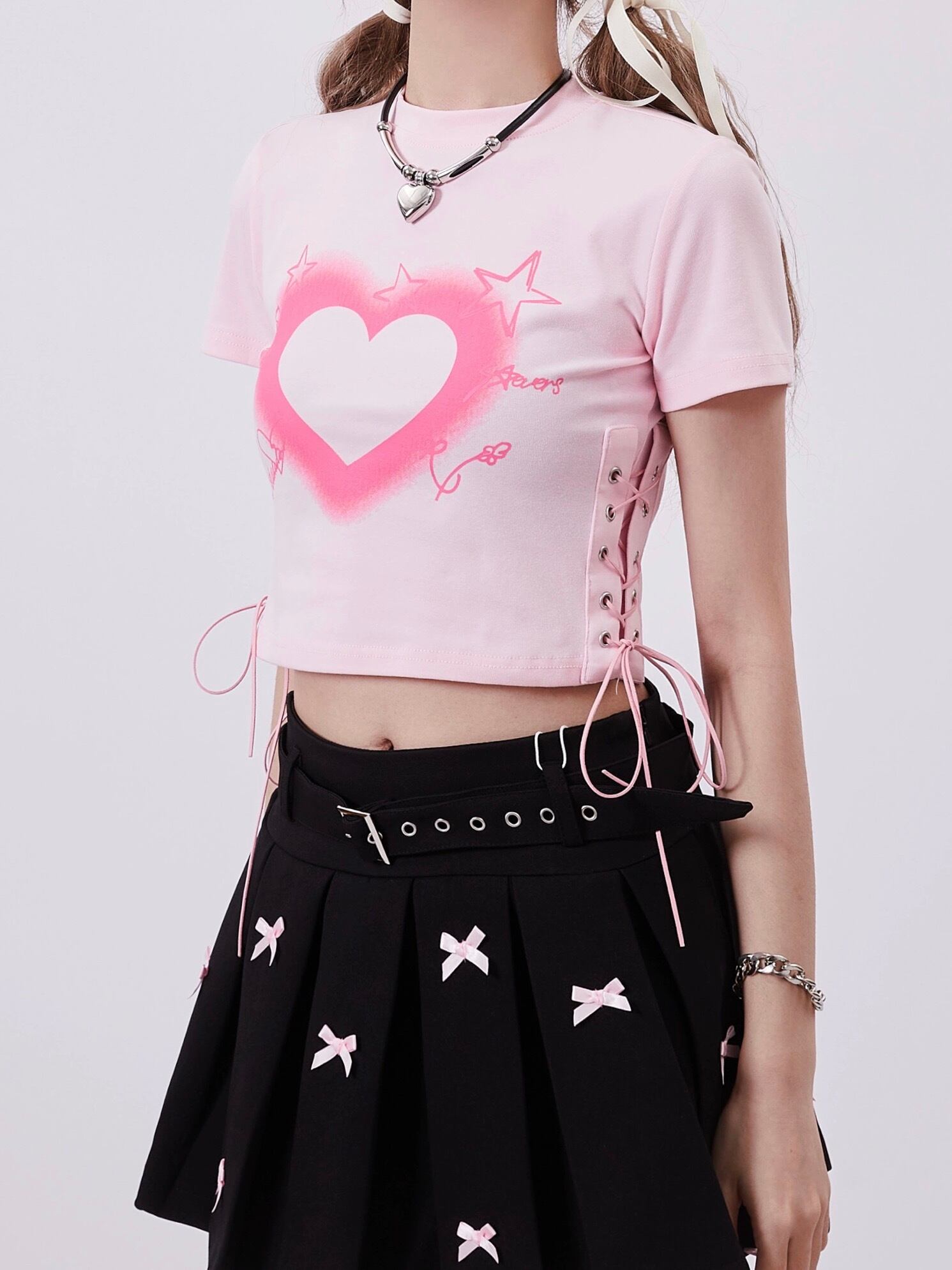 トップス ハート ブラウス リボン 黒 白