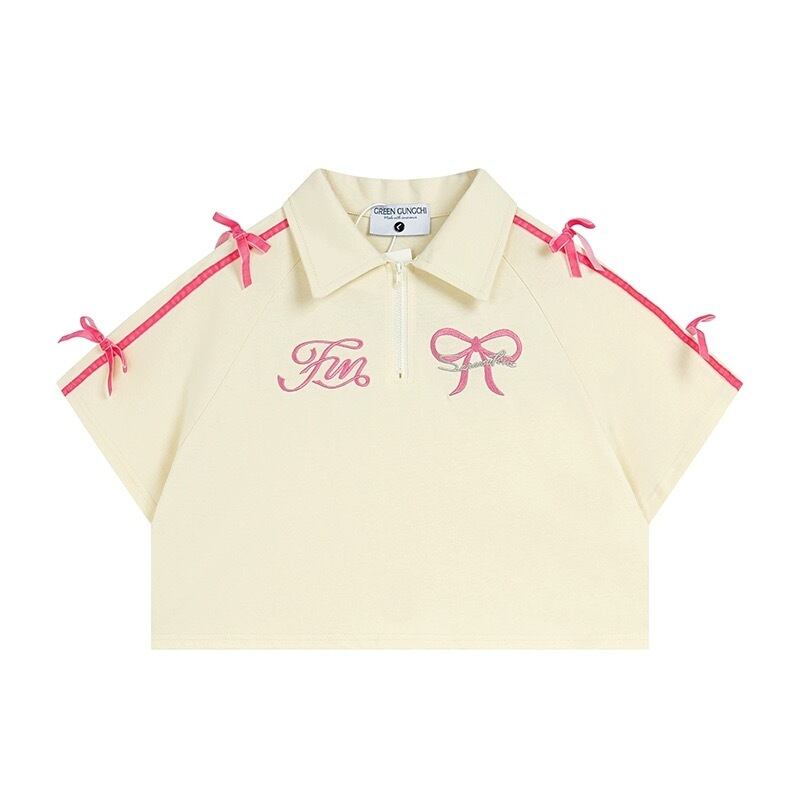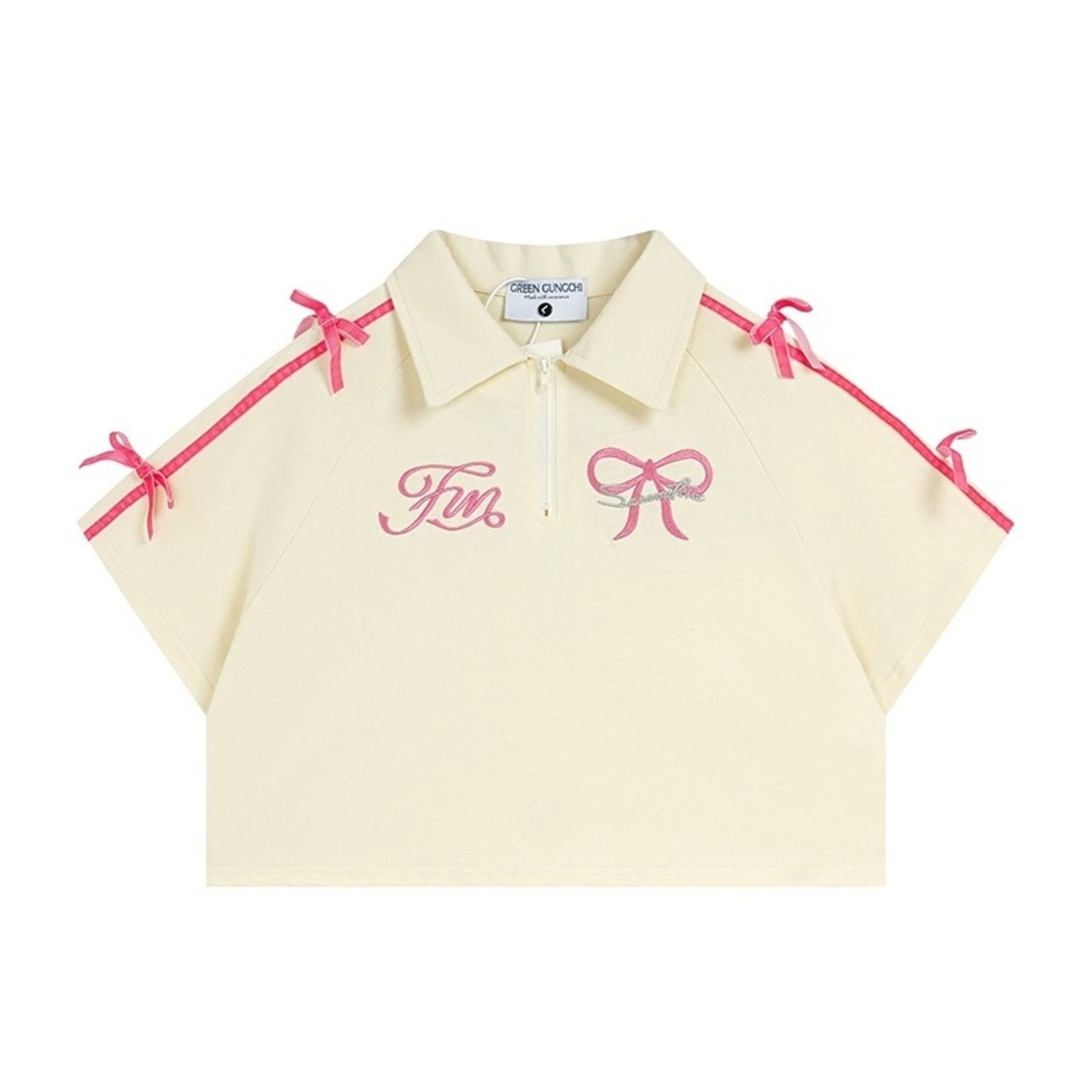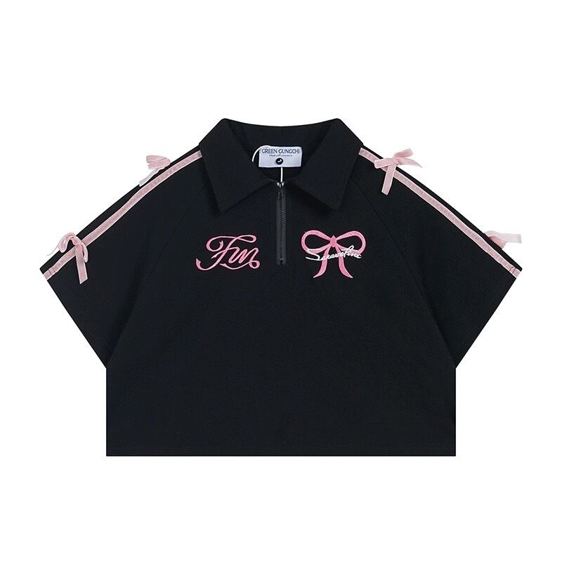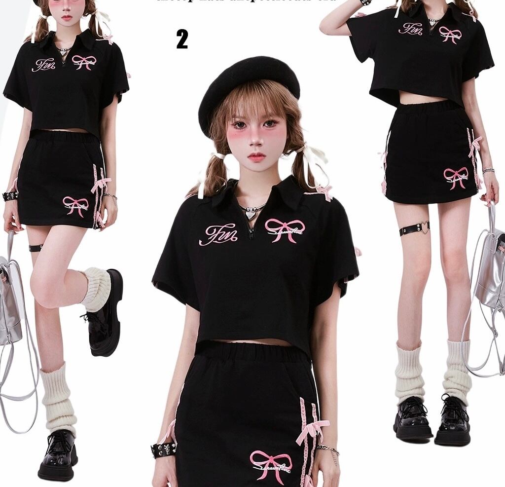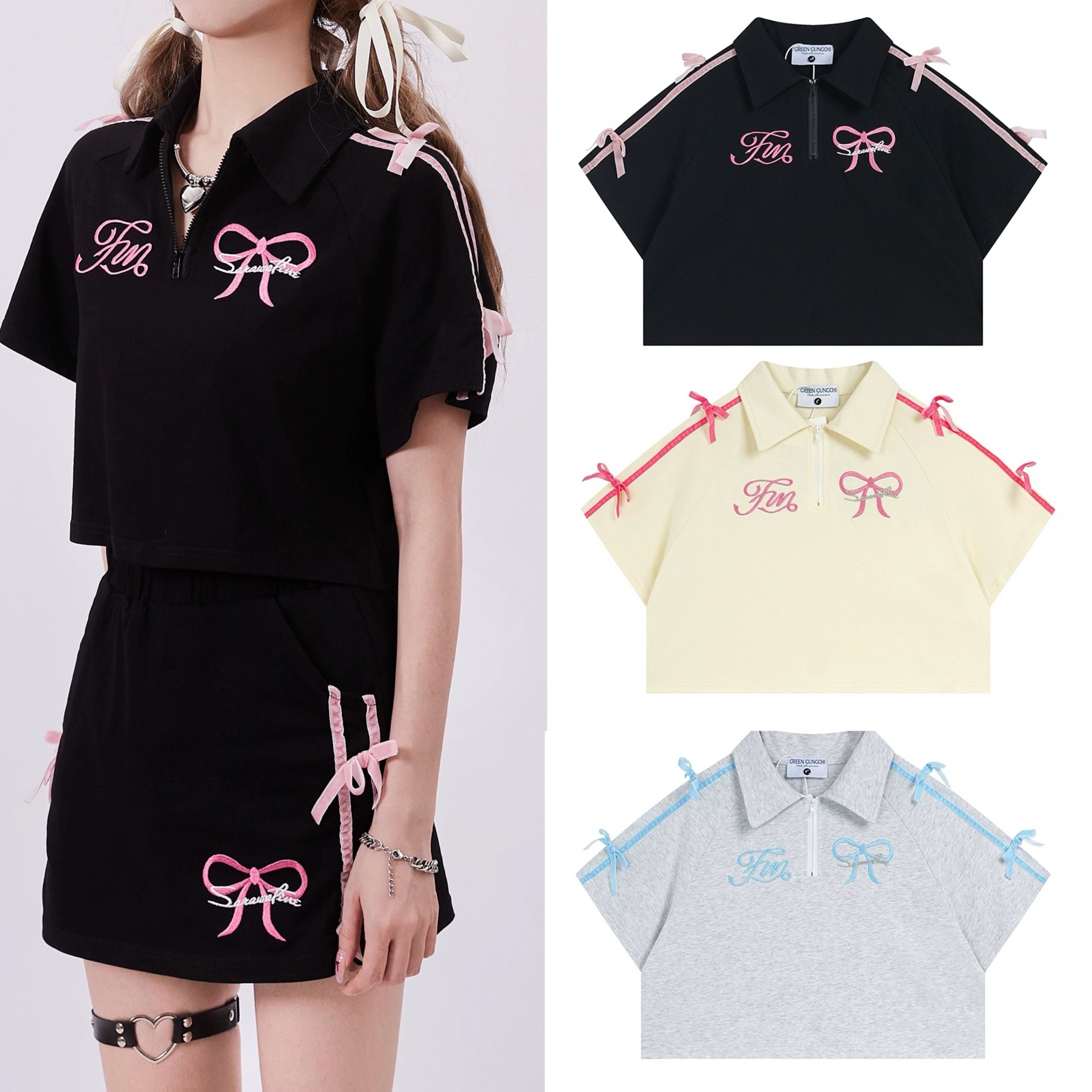 【トップス】黒 白 リボン 水色 スウェット カジュアル