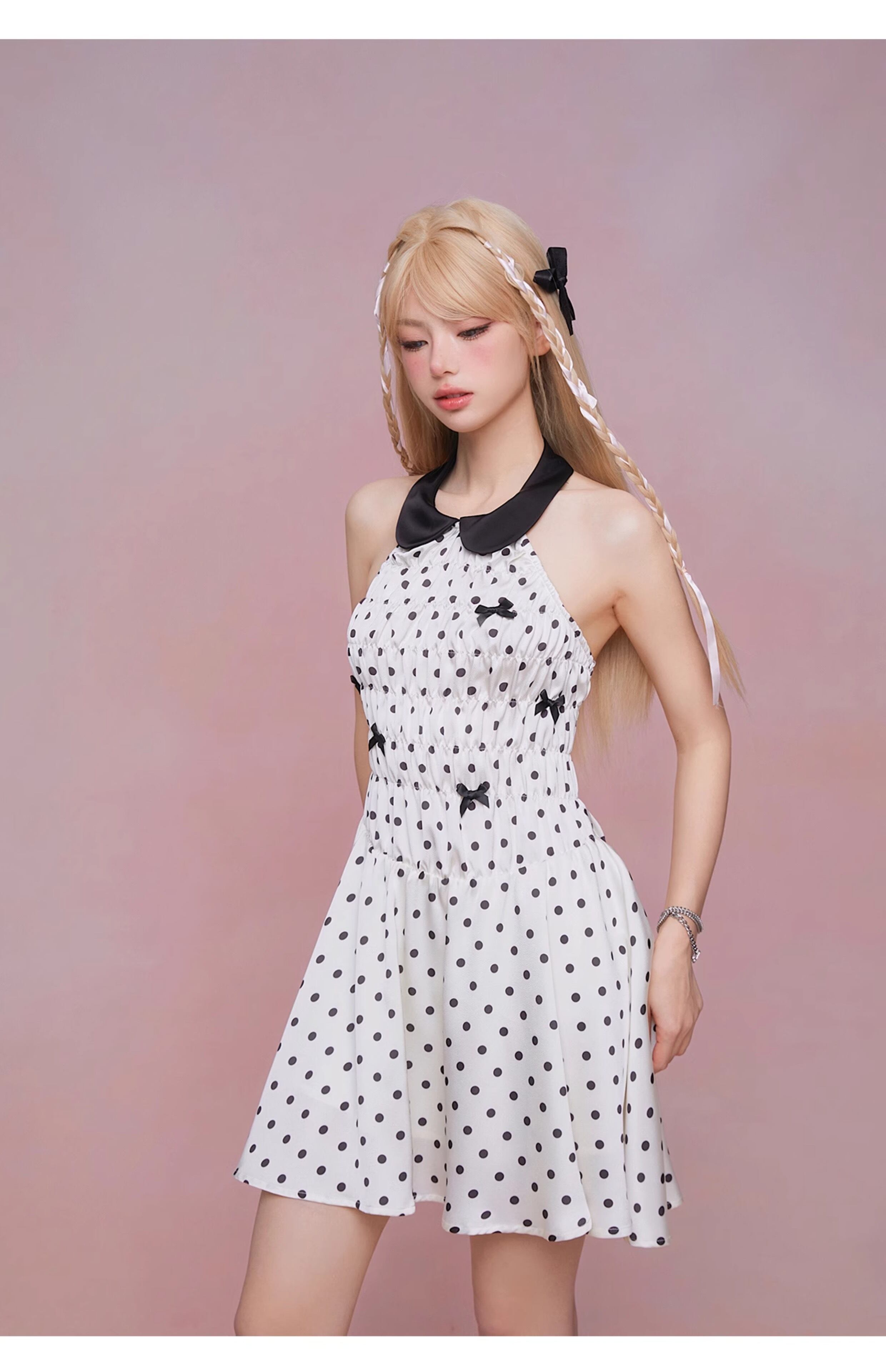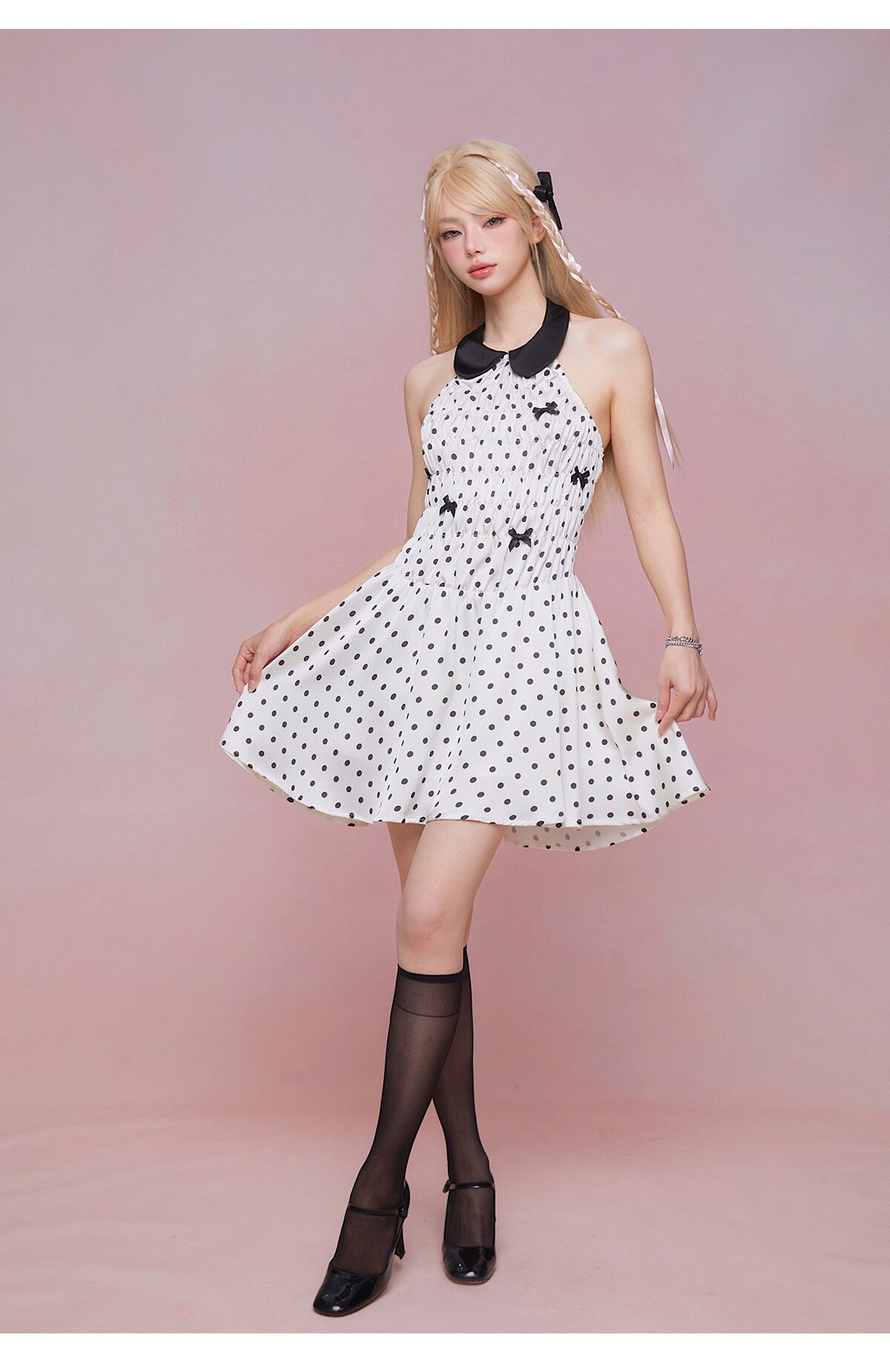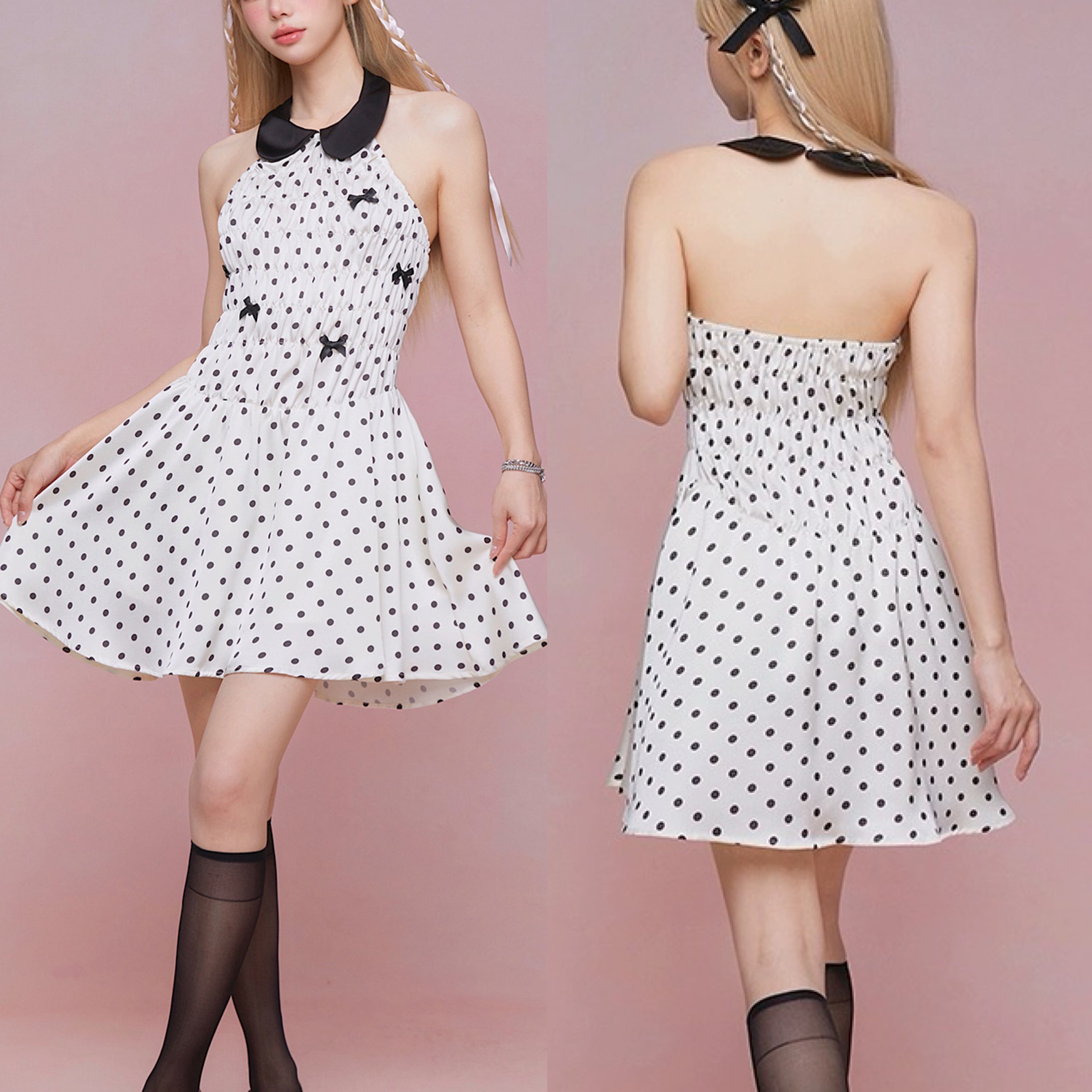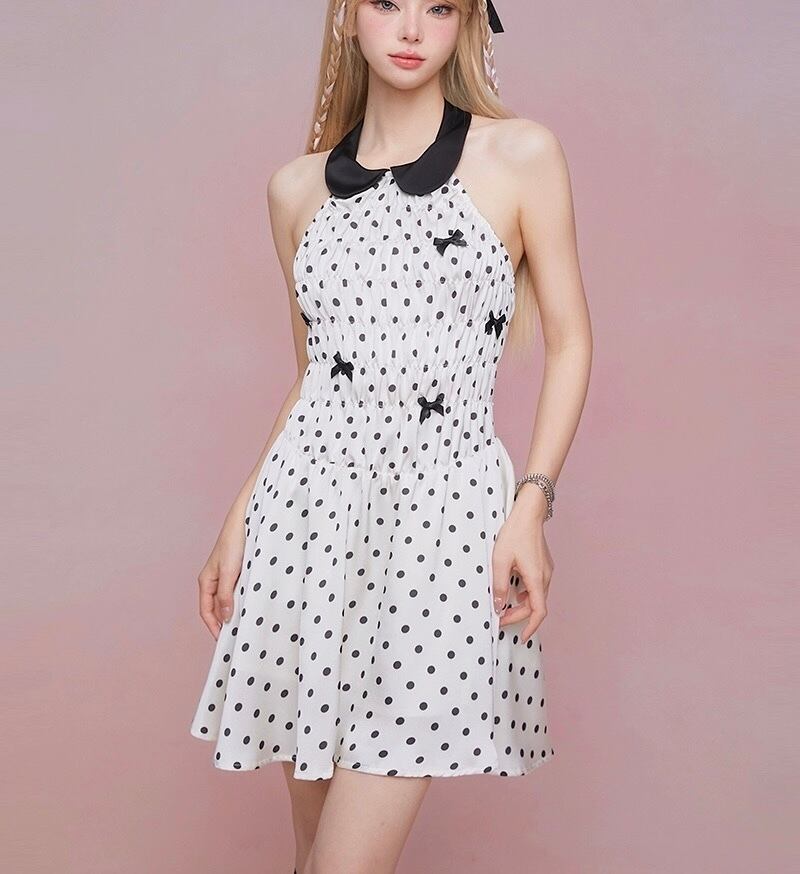水玉 ドット 白 丸襟 ワンピース