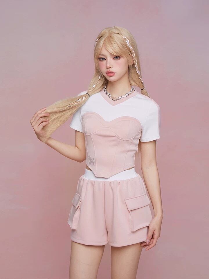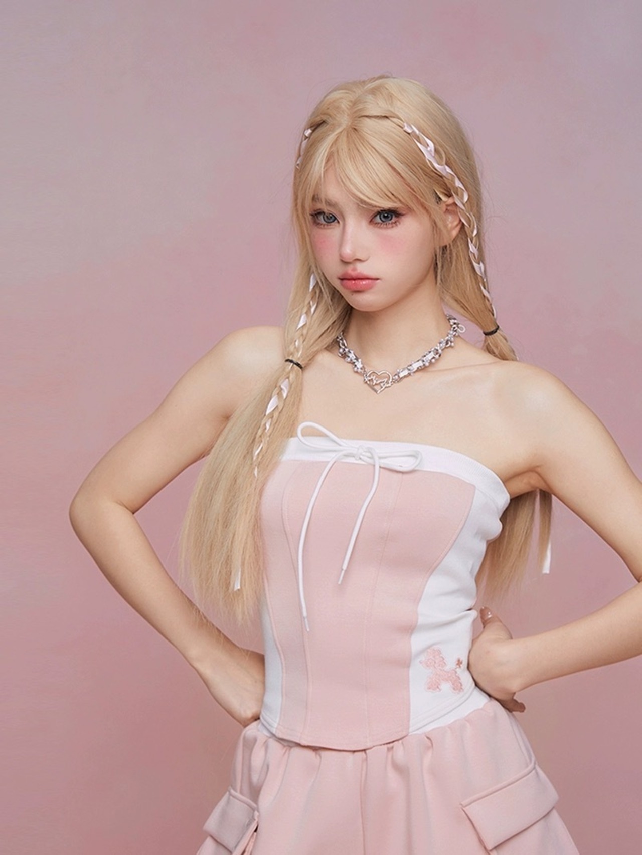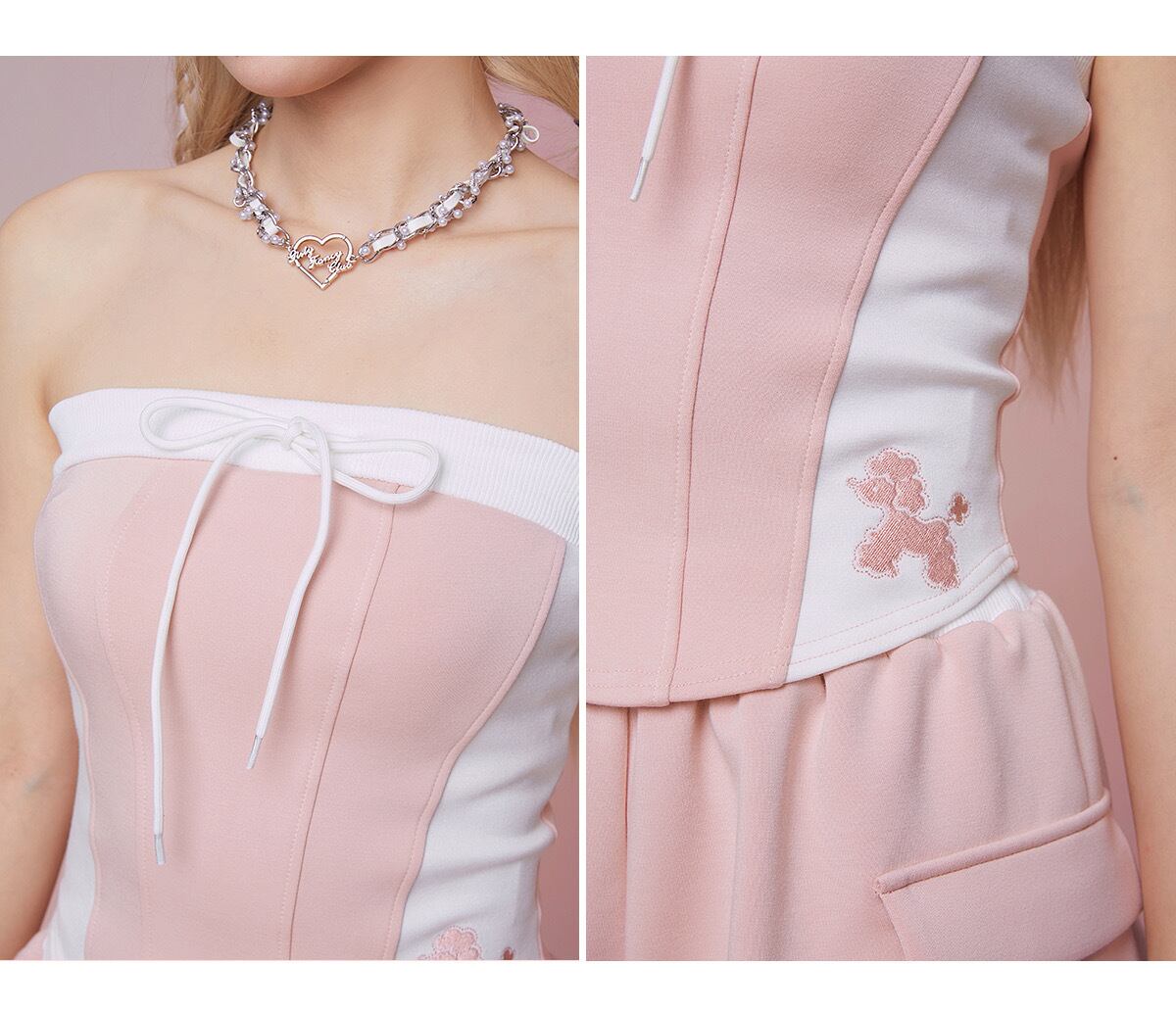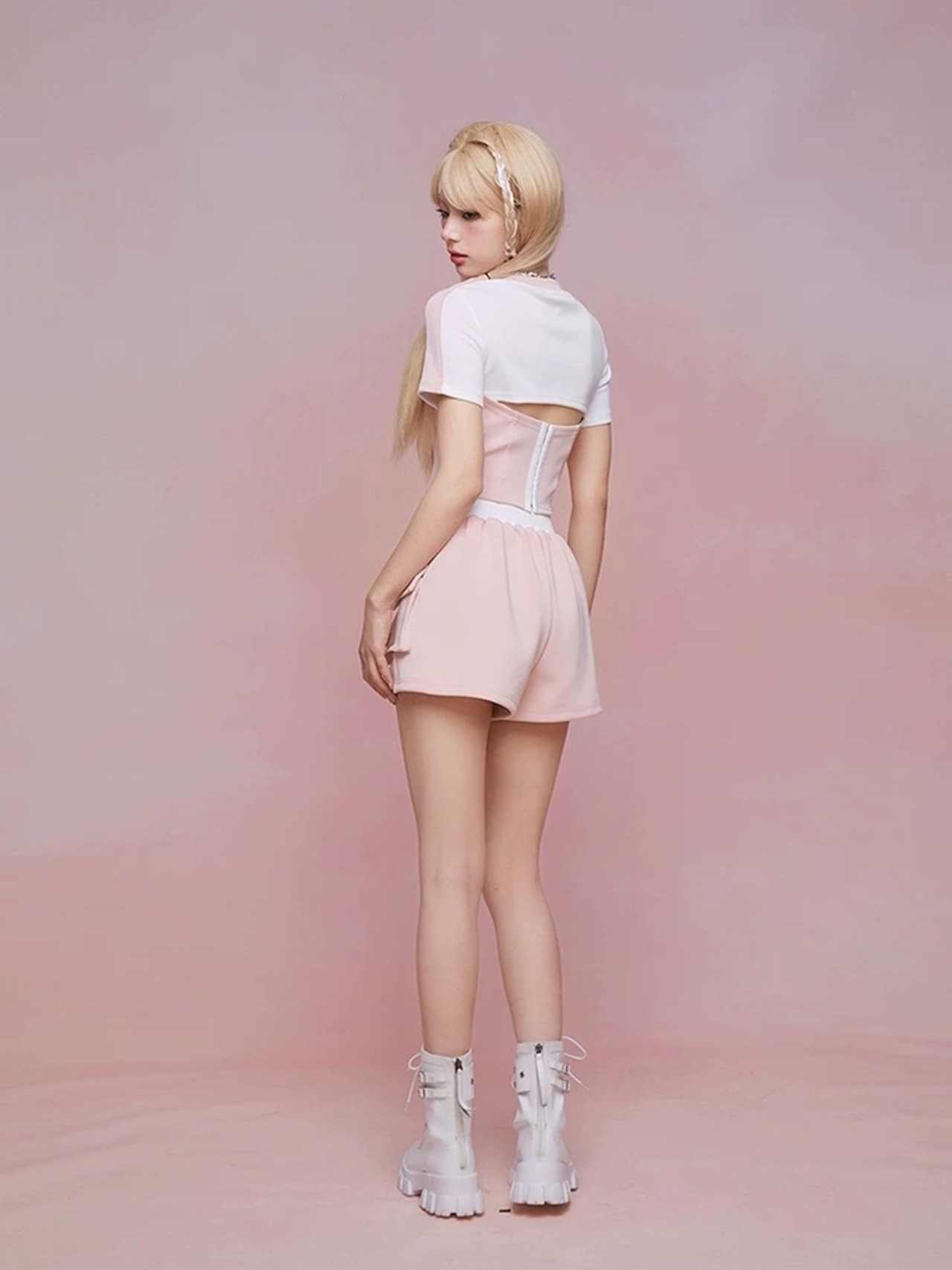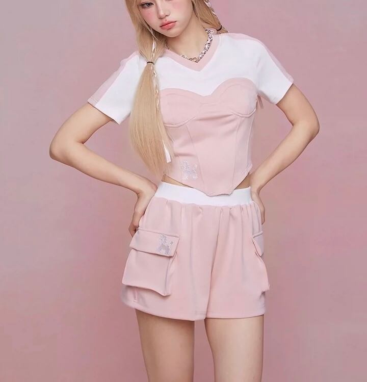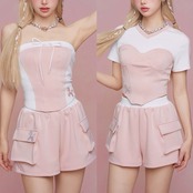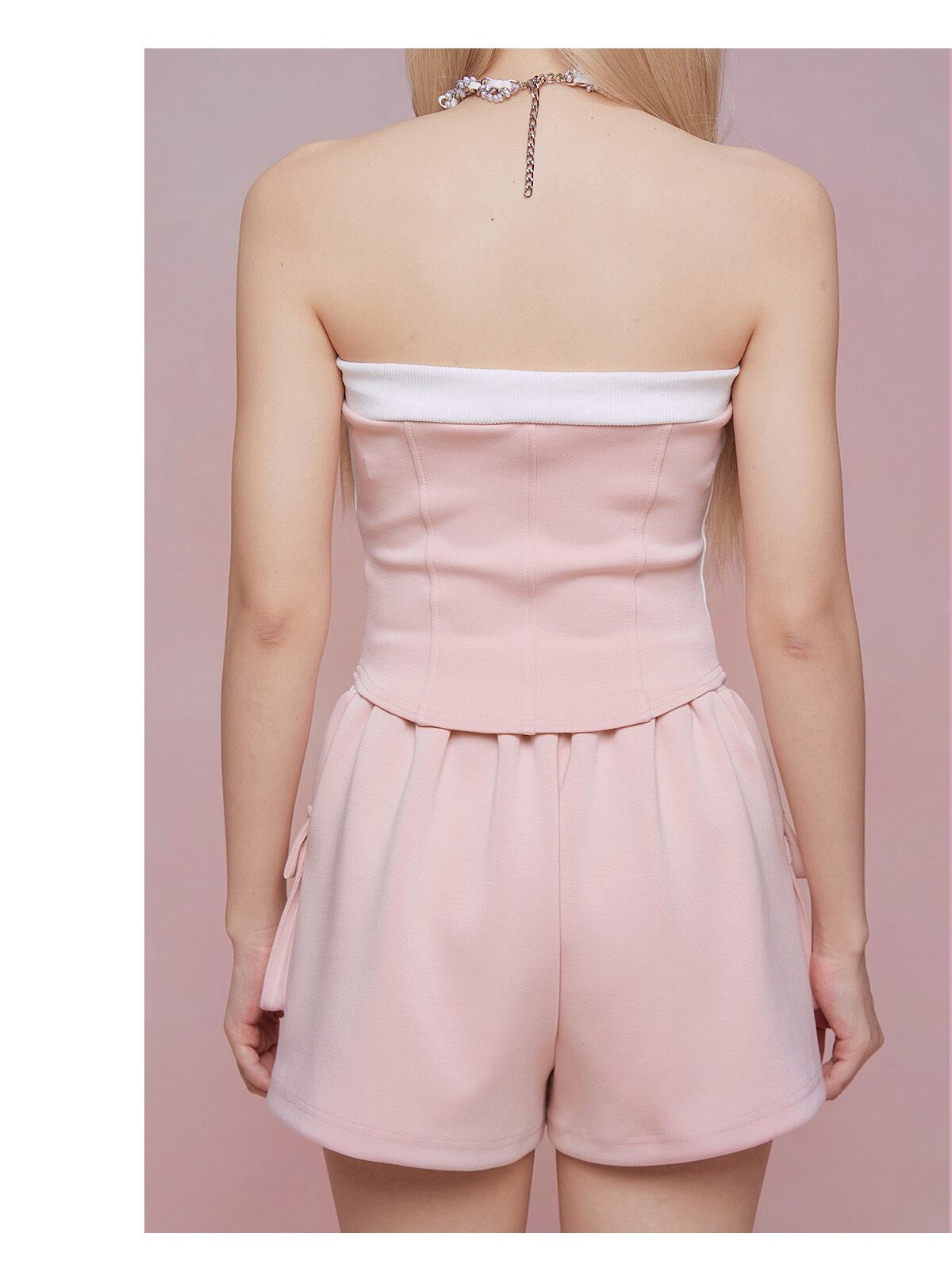 【セットアップ】ピンク スウェット カジュアル ミニスカート ベアトップ ジム
