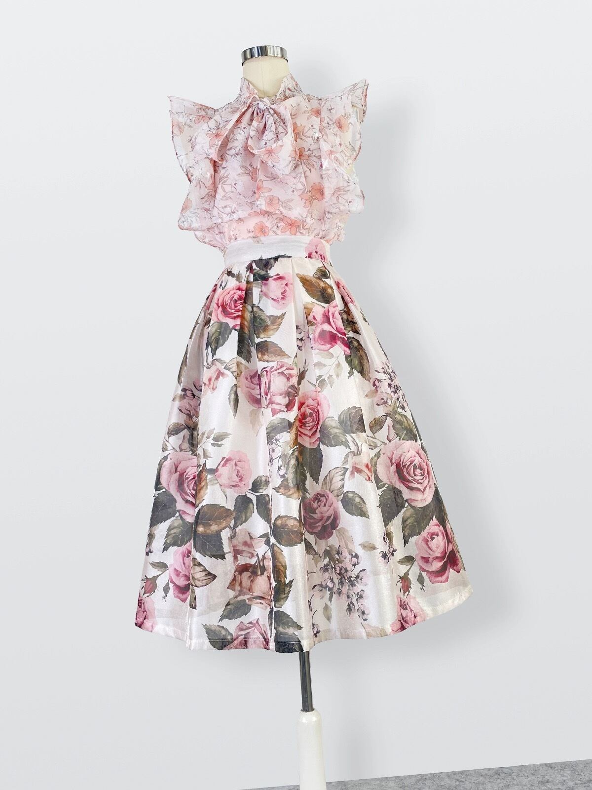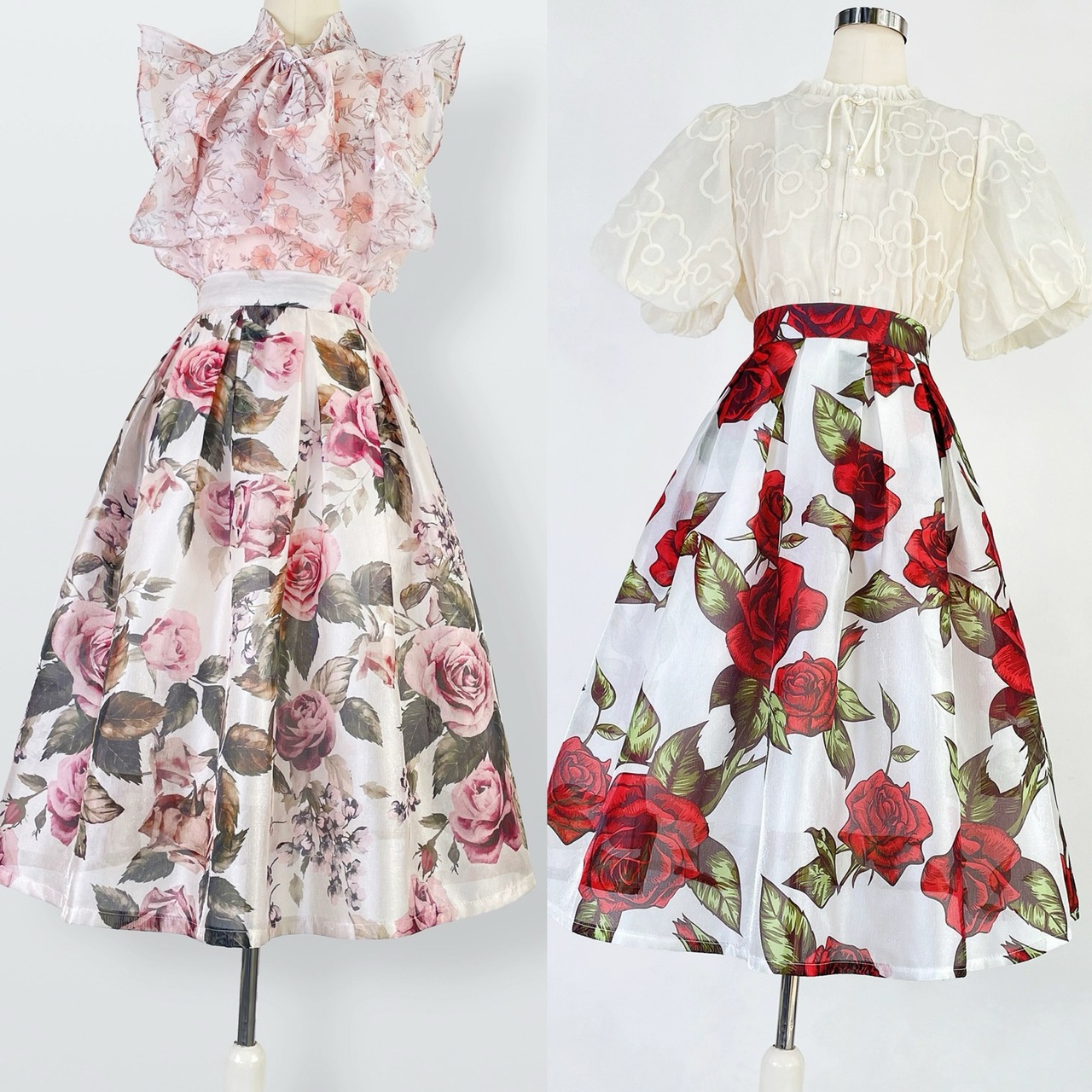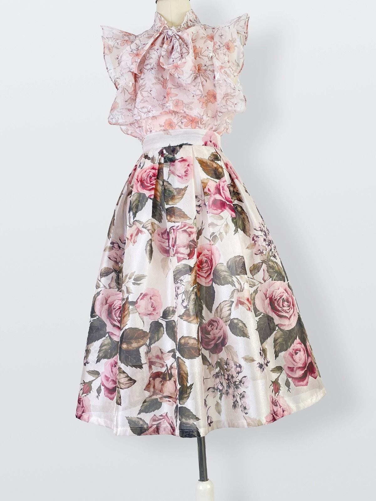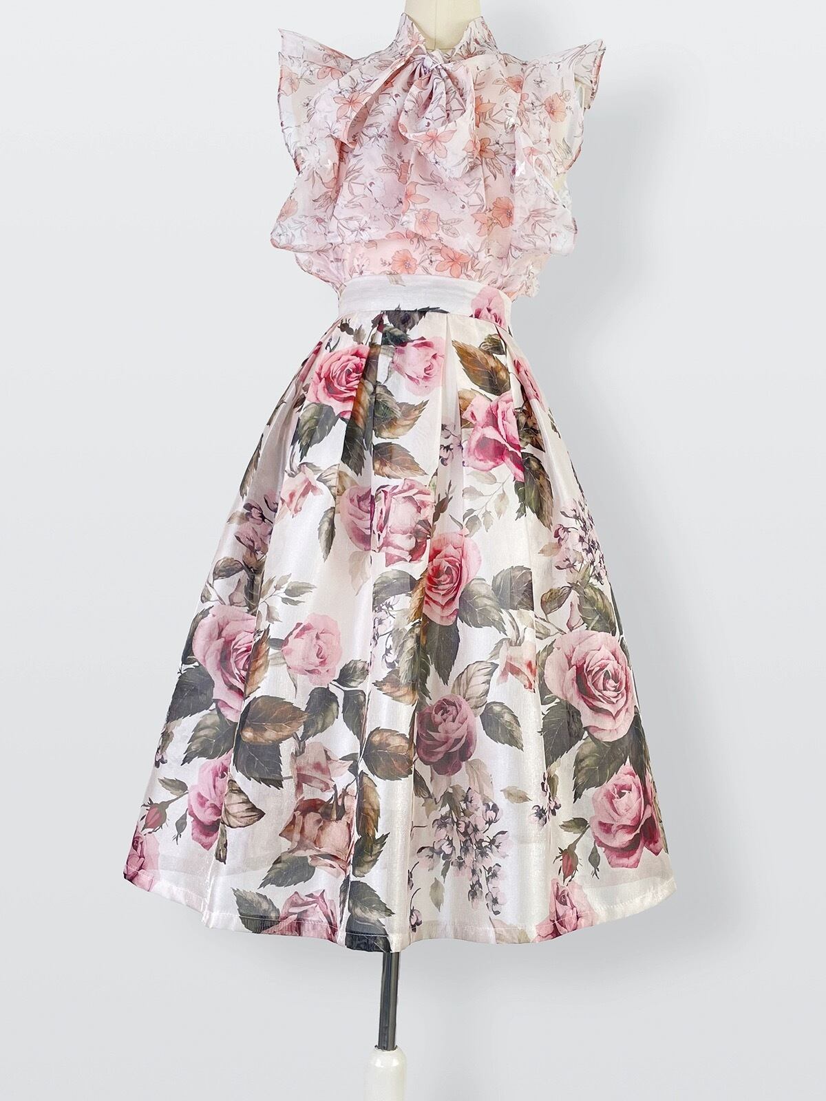 ピンク 赤 薔薇 花柄 フラワー スカート