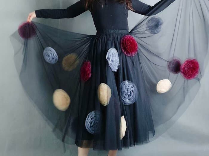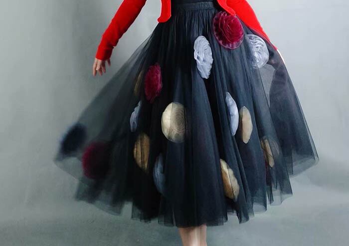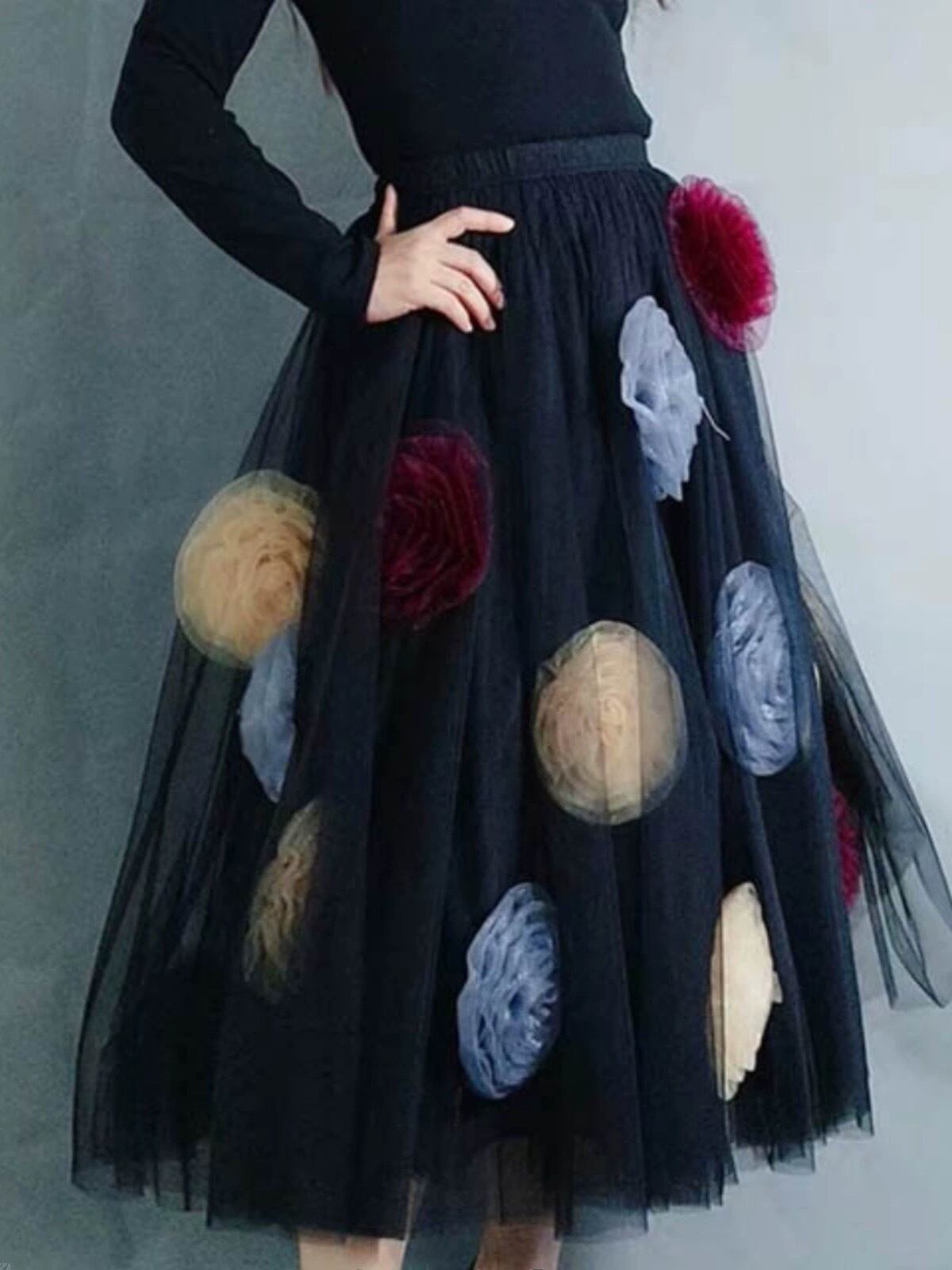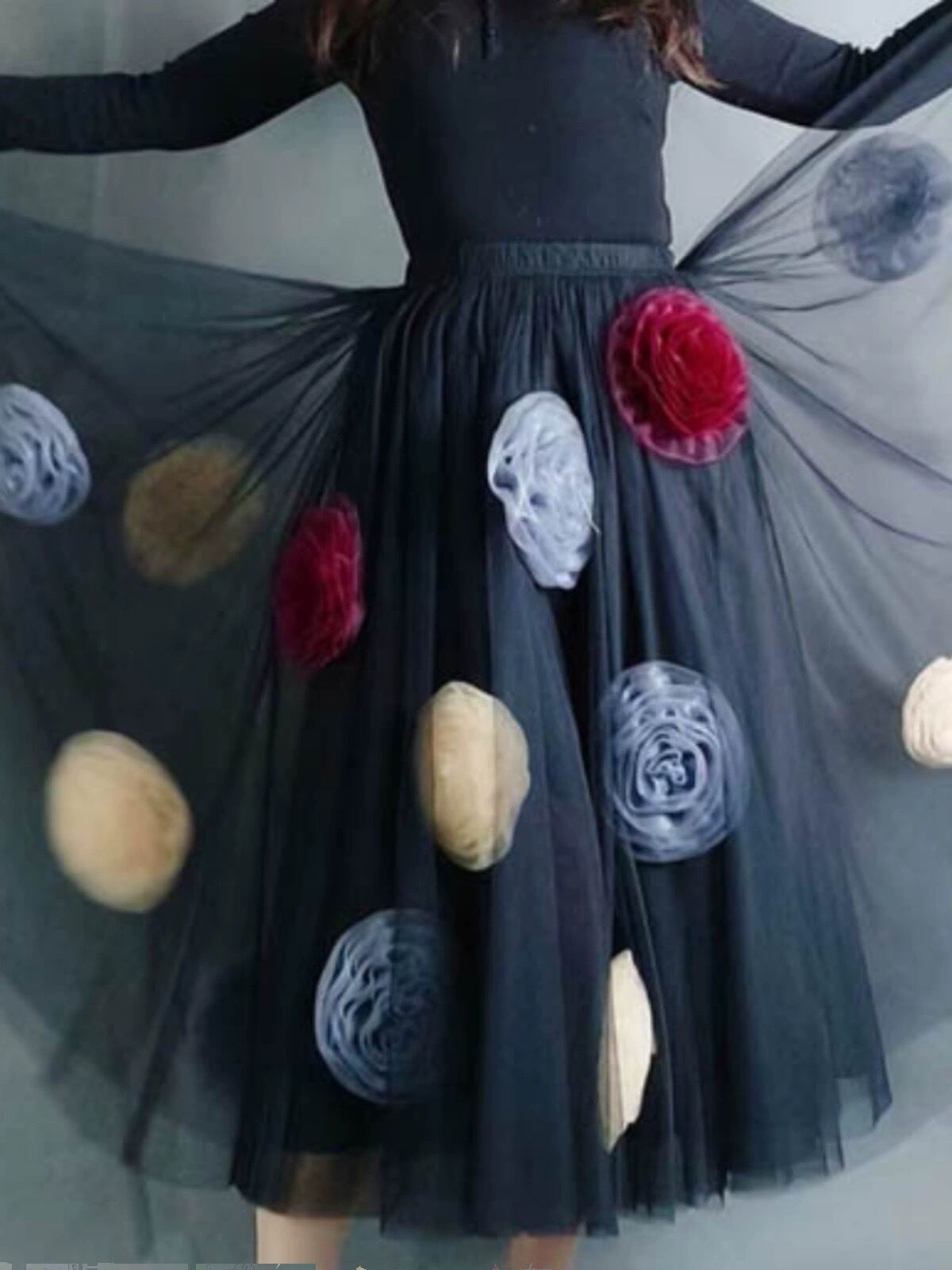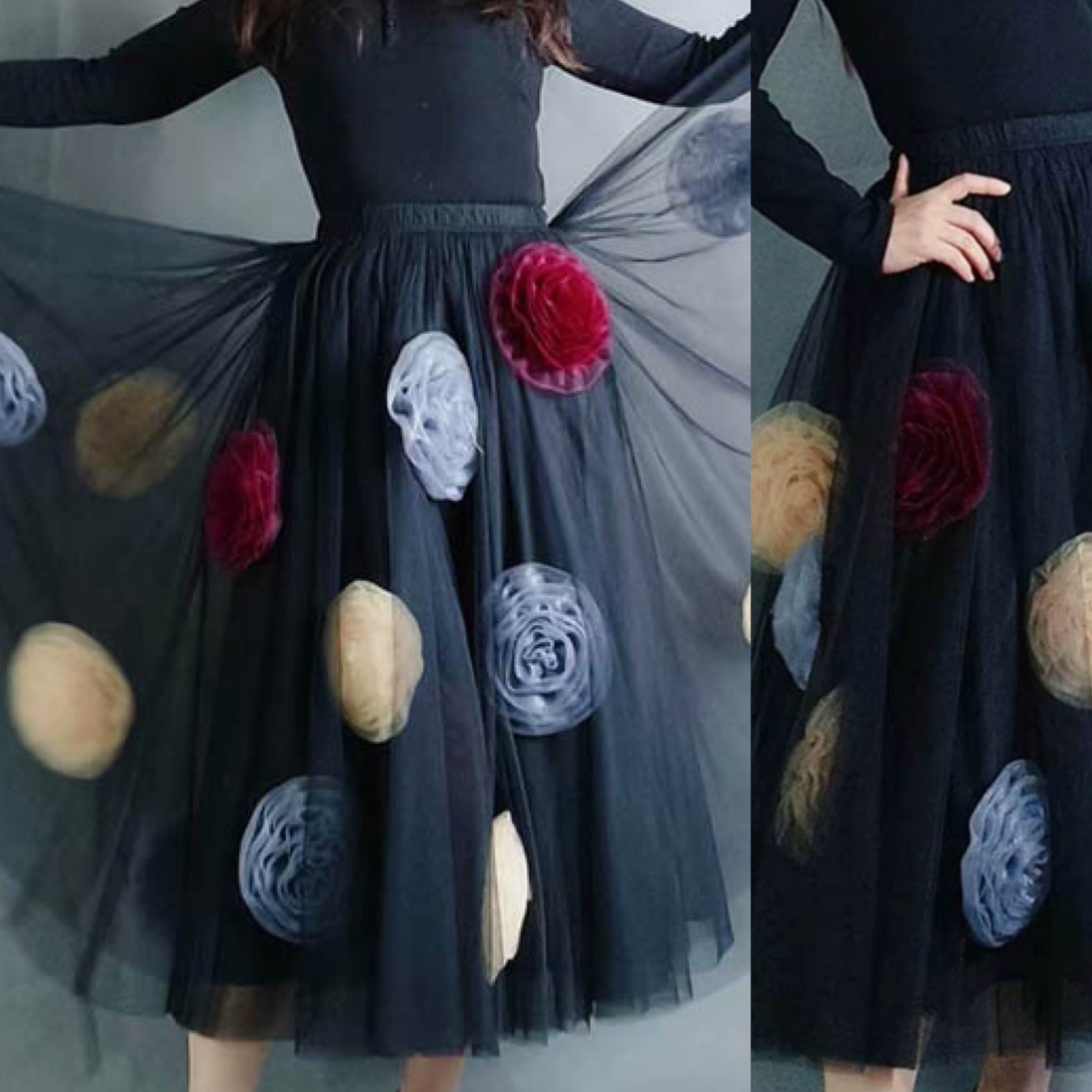 黒 カメリア 薔薇 花柄 フラワー スカート