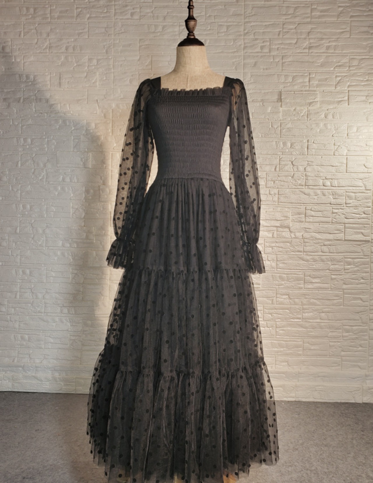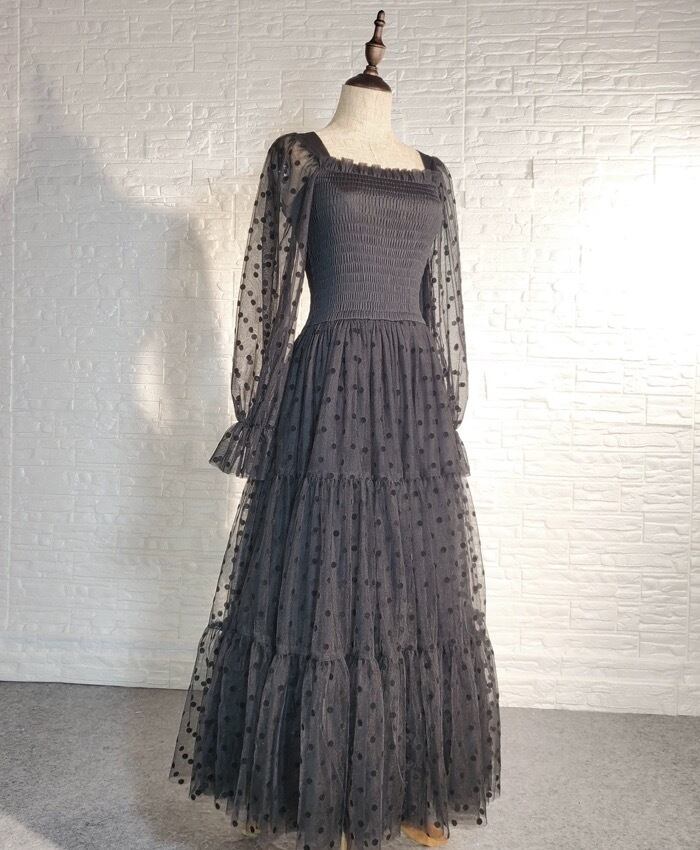 水玉 ドット 黒 ワンピース ブラウス マキシ