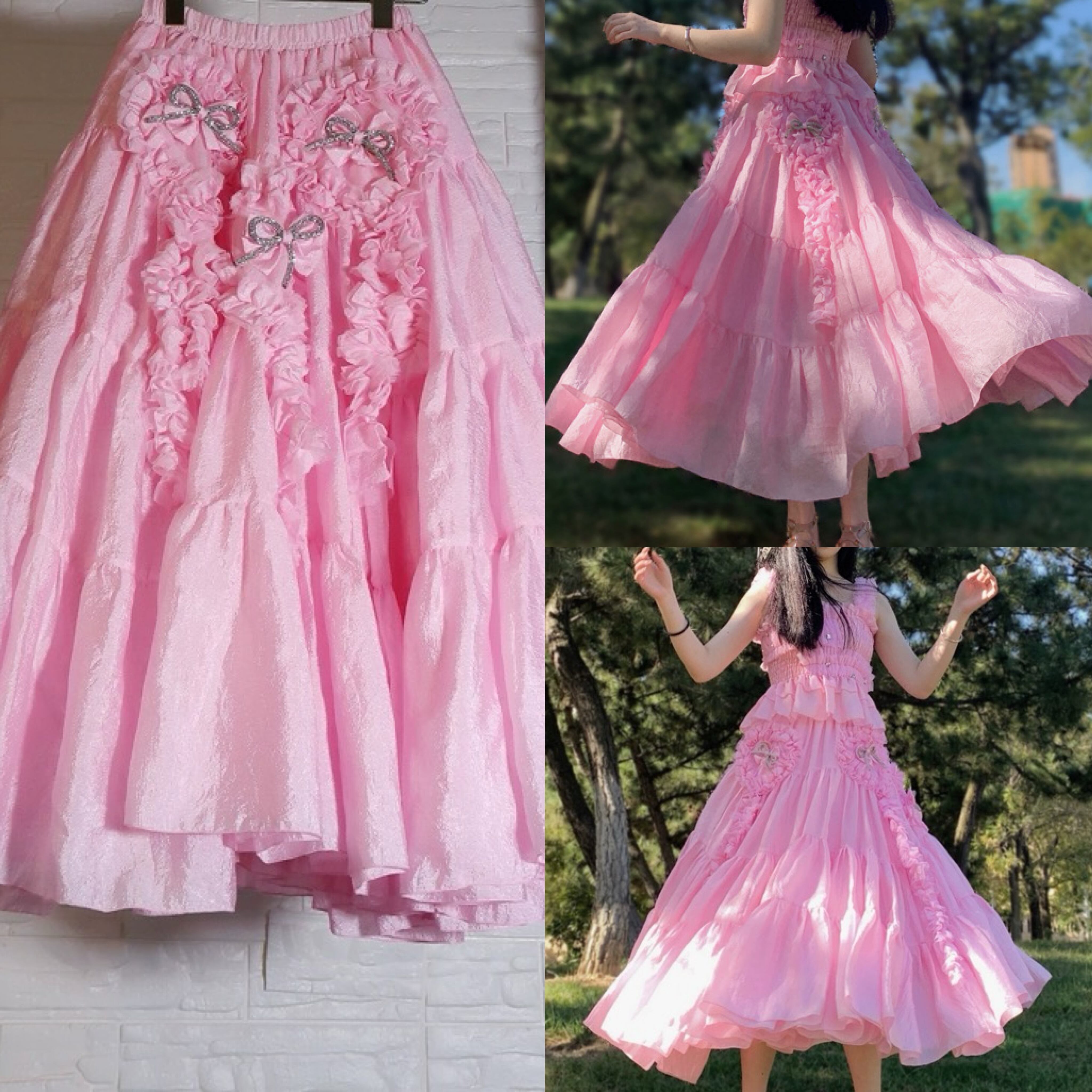 【スカート】ピンク ガーリー ボトムス 可愛い リボン