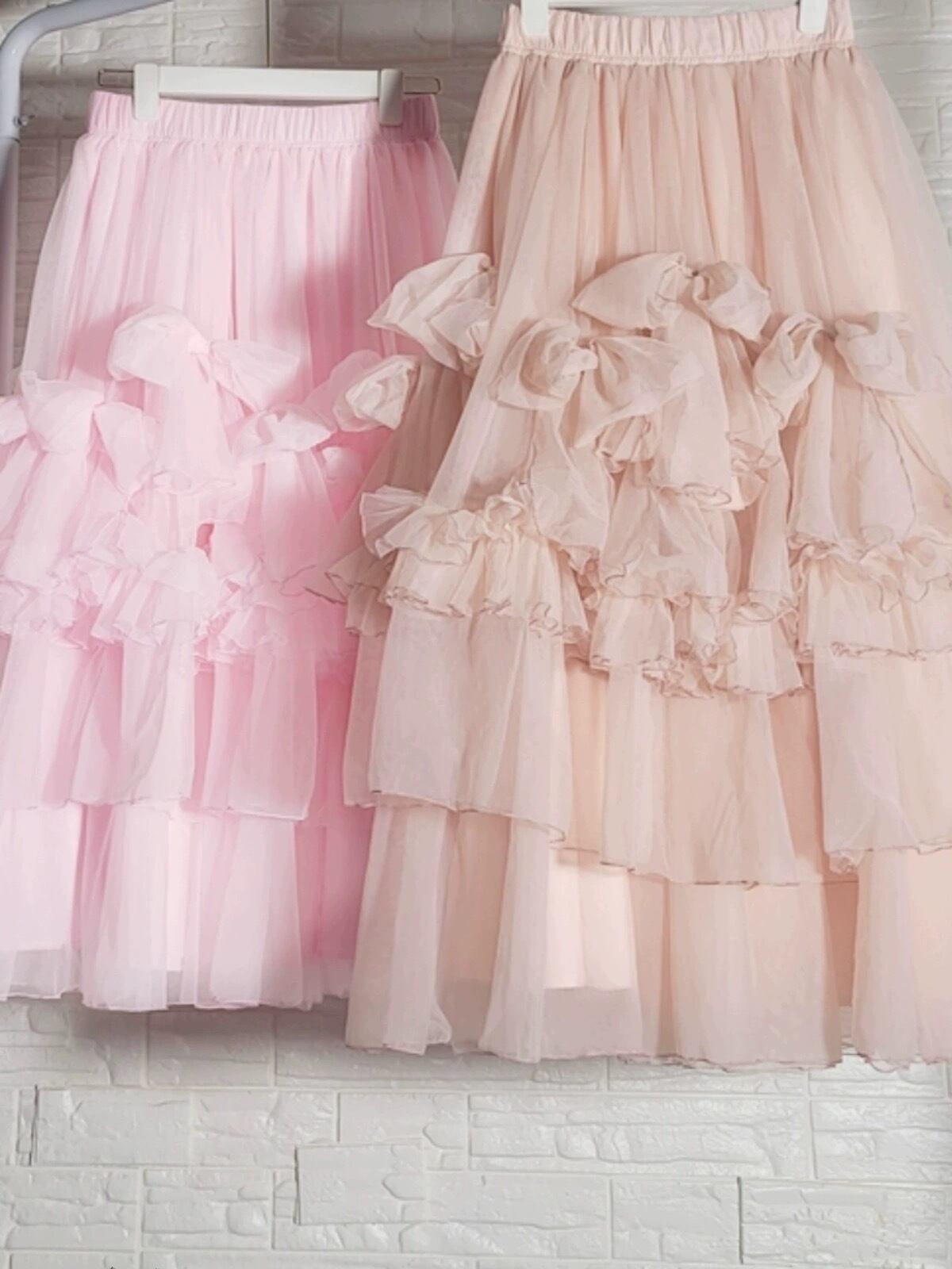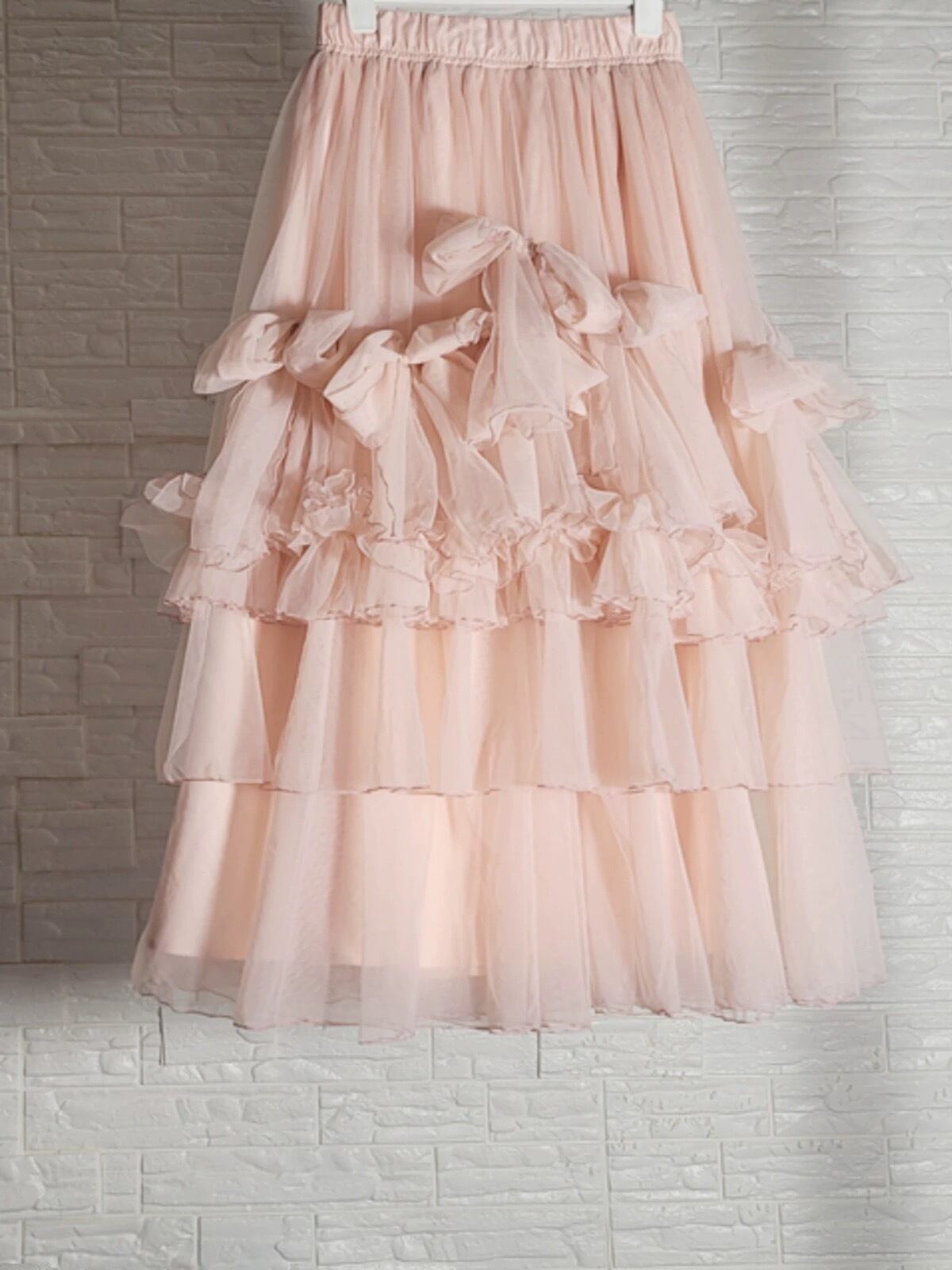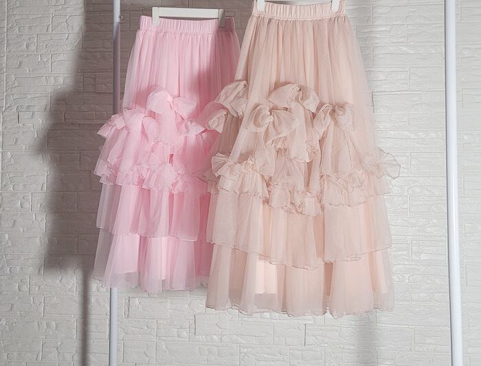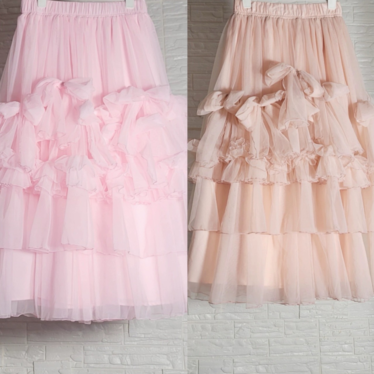 ピンク ベージュ リボン スカート ボトムス ガーリー