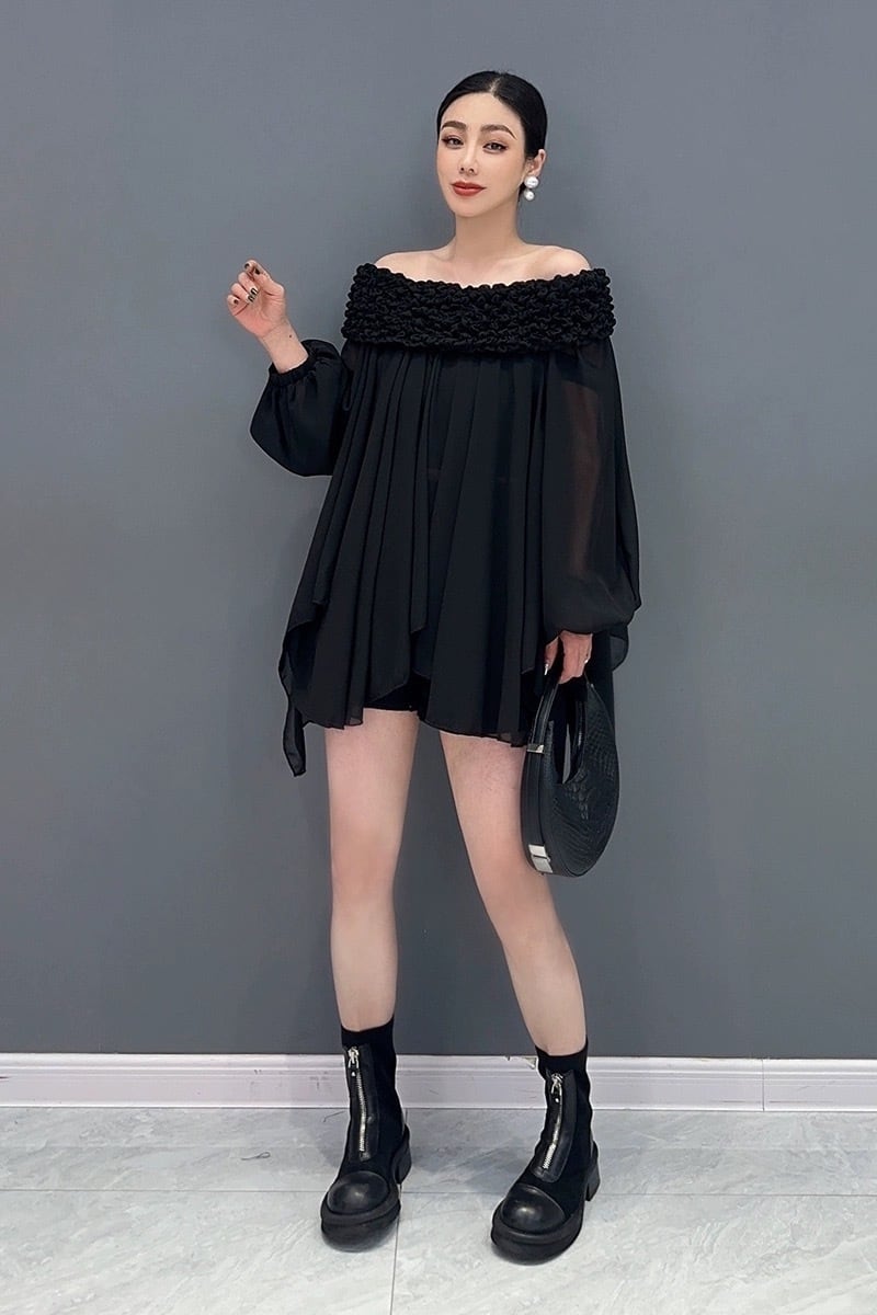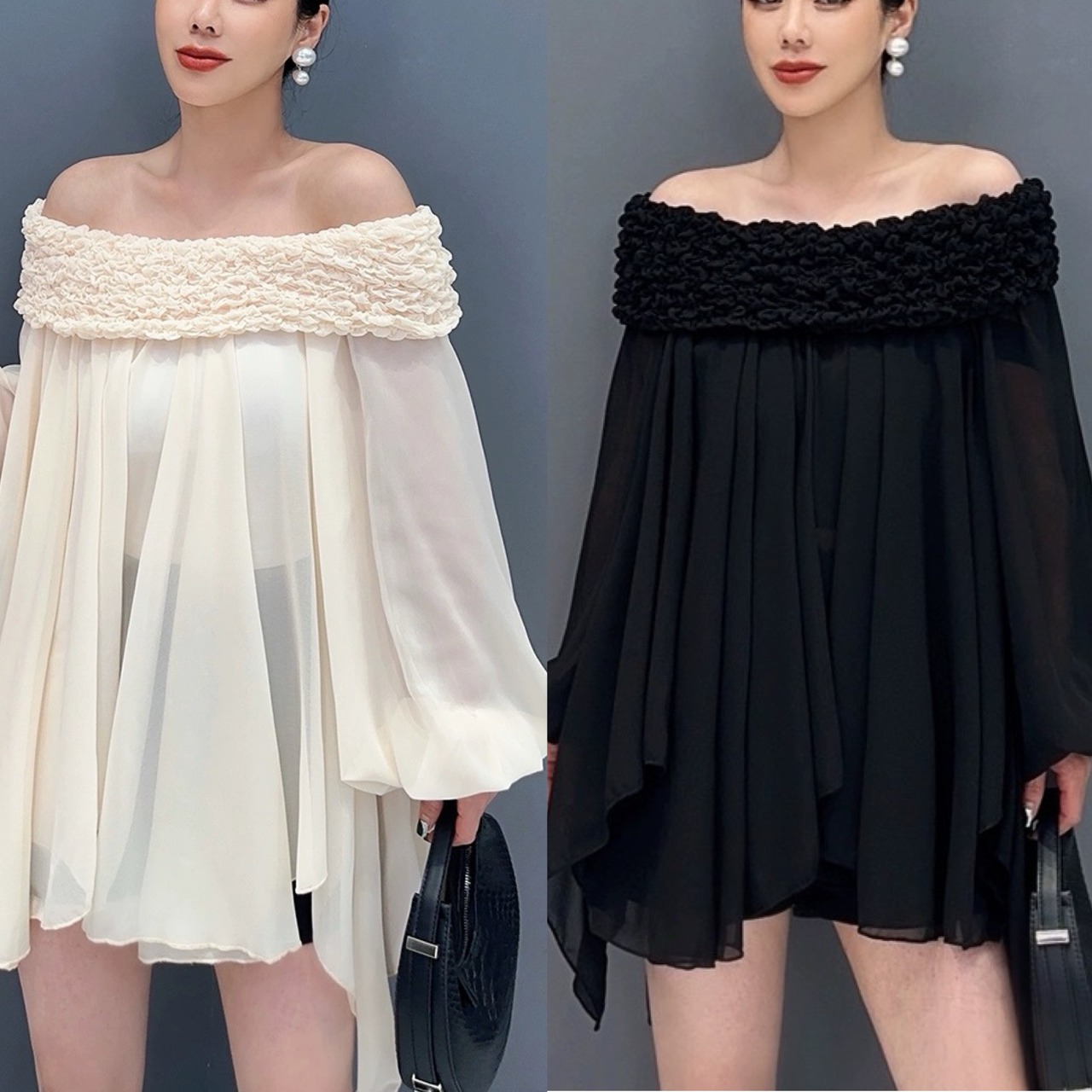 トップス オフショルダー 黒 ベージュ ブラウス トップス