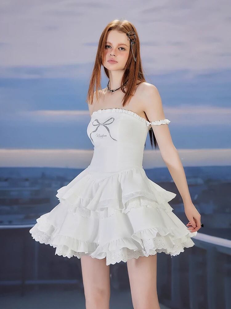 オフショルダー ガーリー 白 黒 ワンピース 可愛い