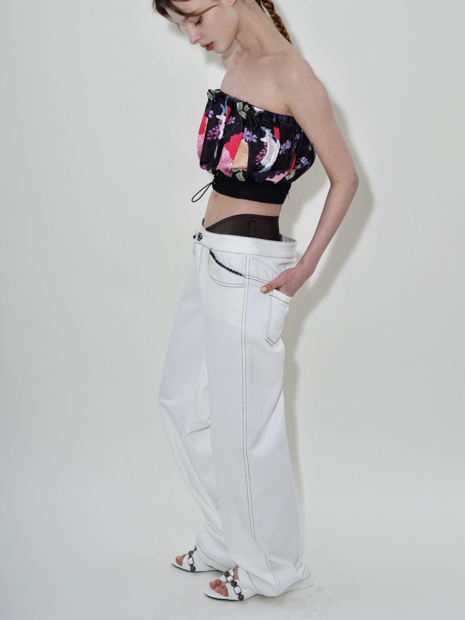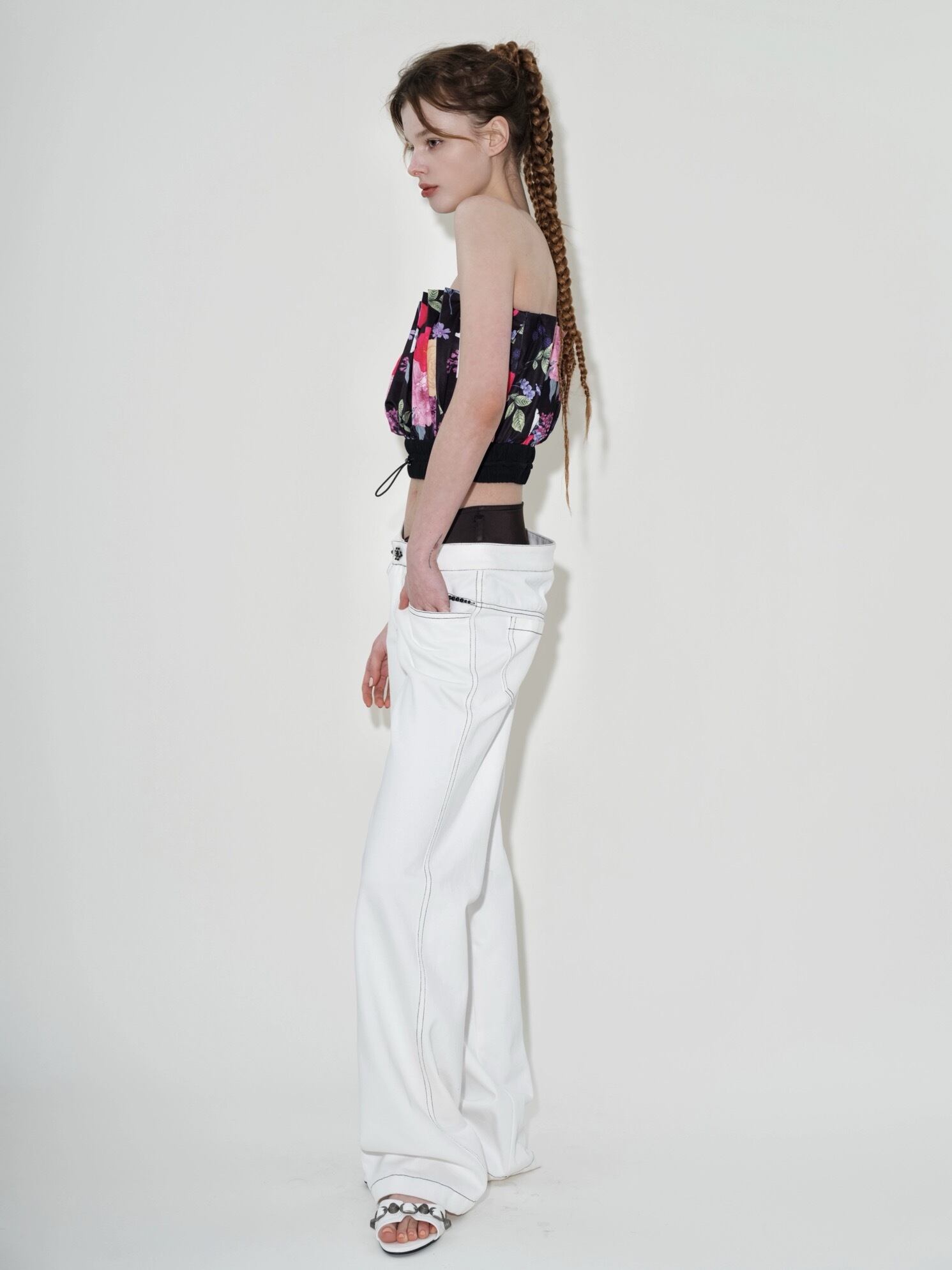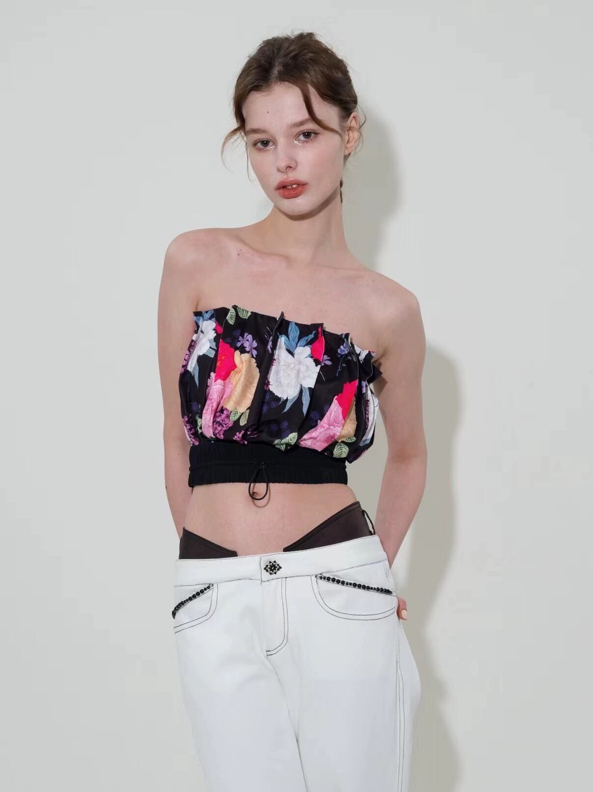 花柄 ベアトップ インナー キャミソール 黒 カラフル