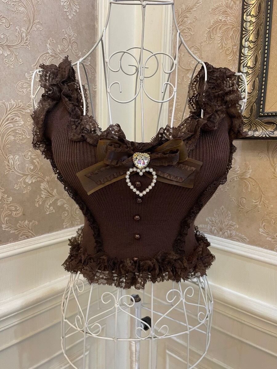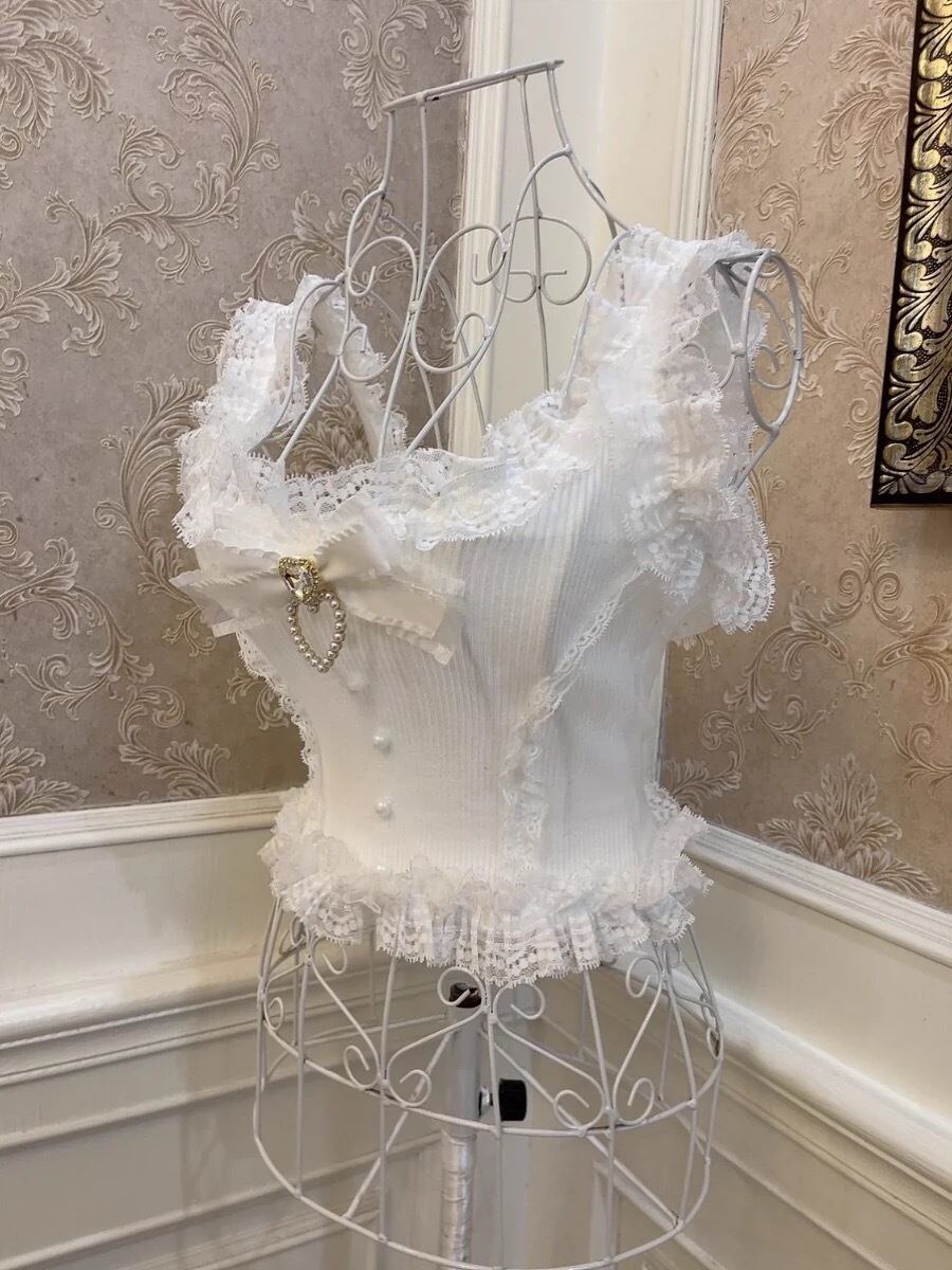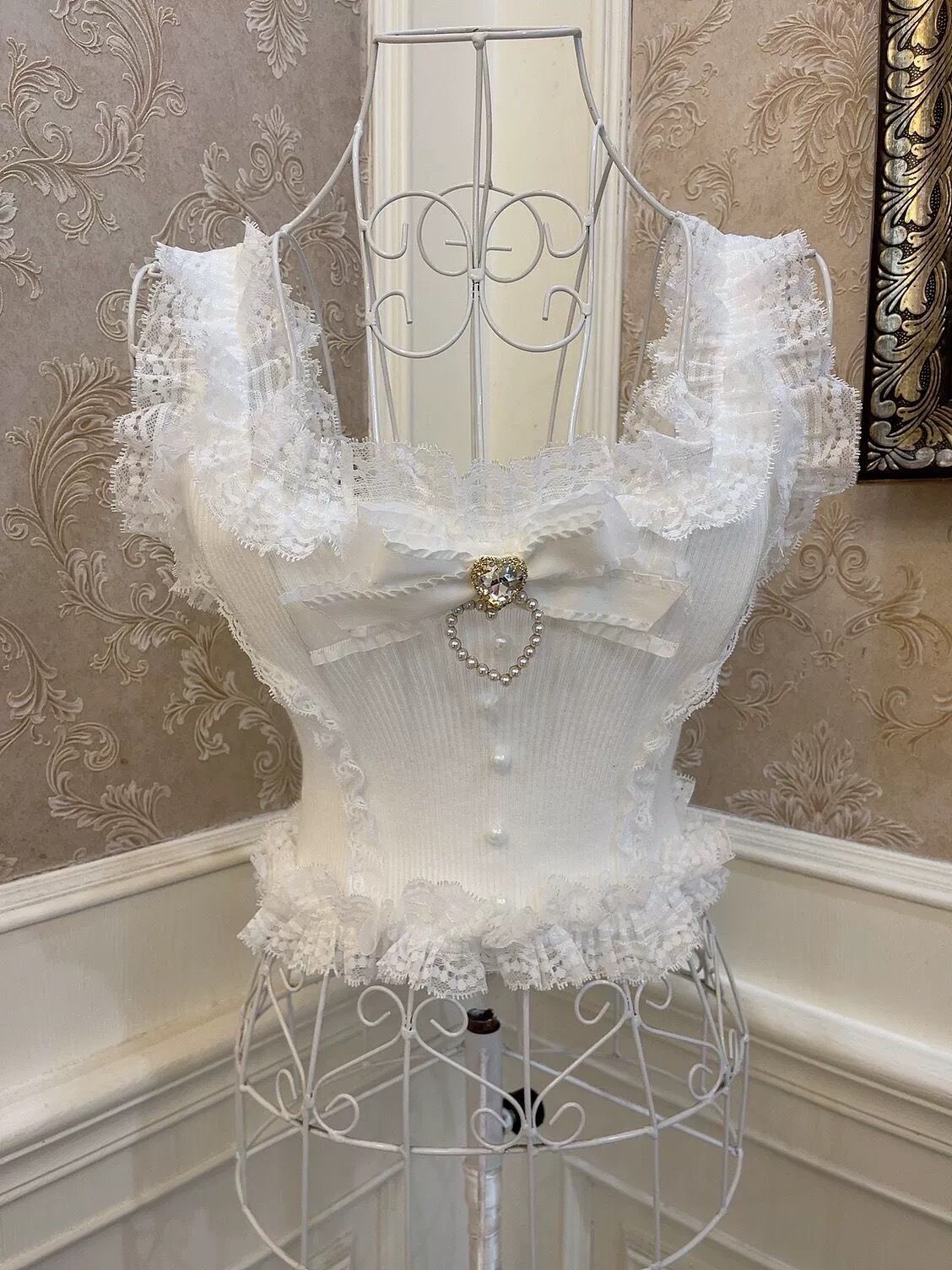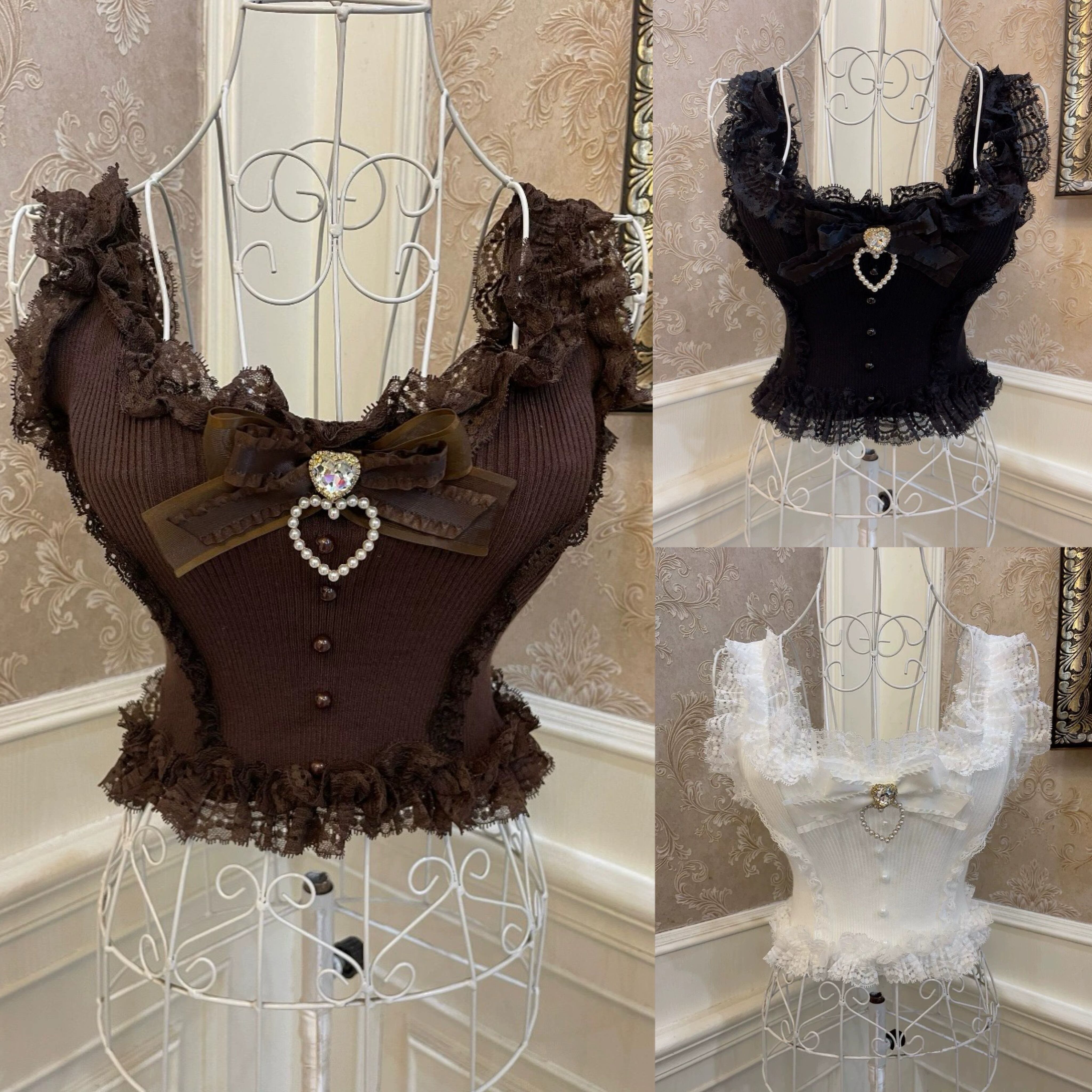 ガーリー 白 黒 茶色 キャミソール ブラウス ガーリー