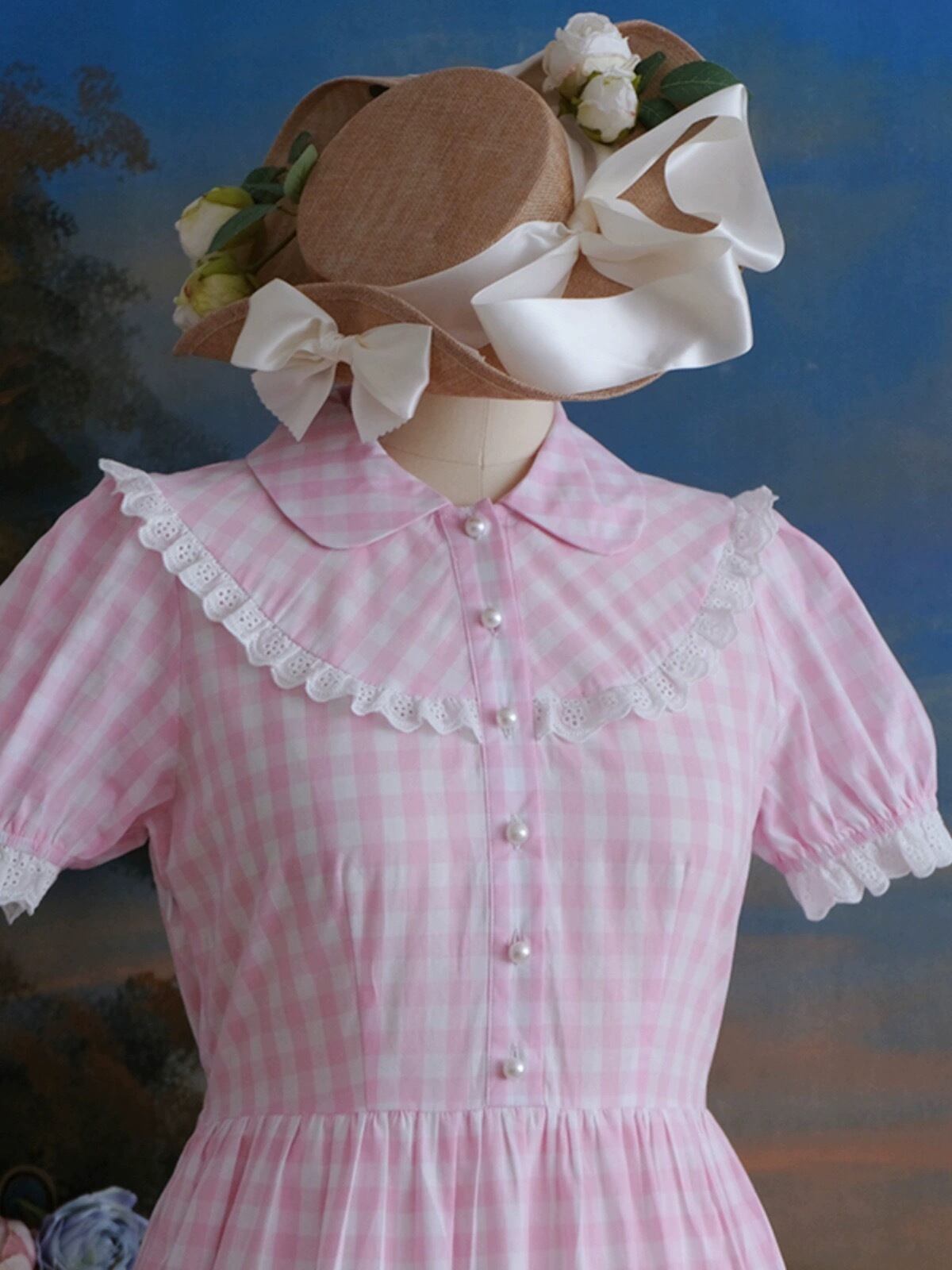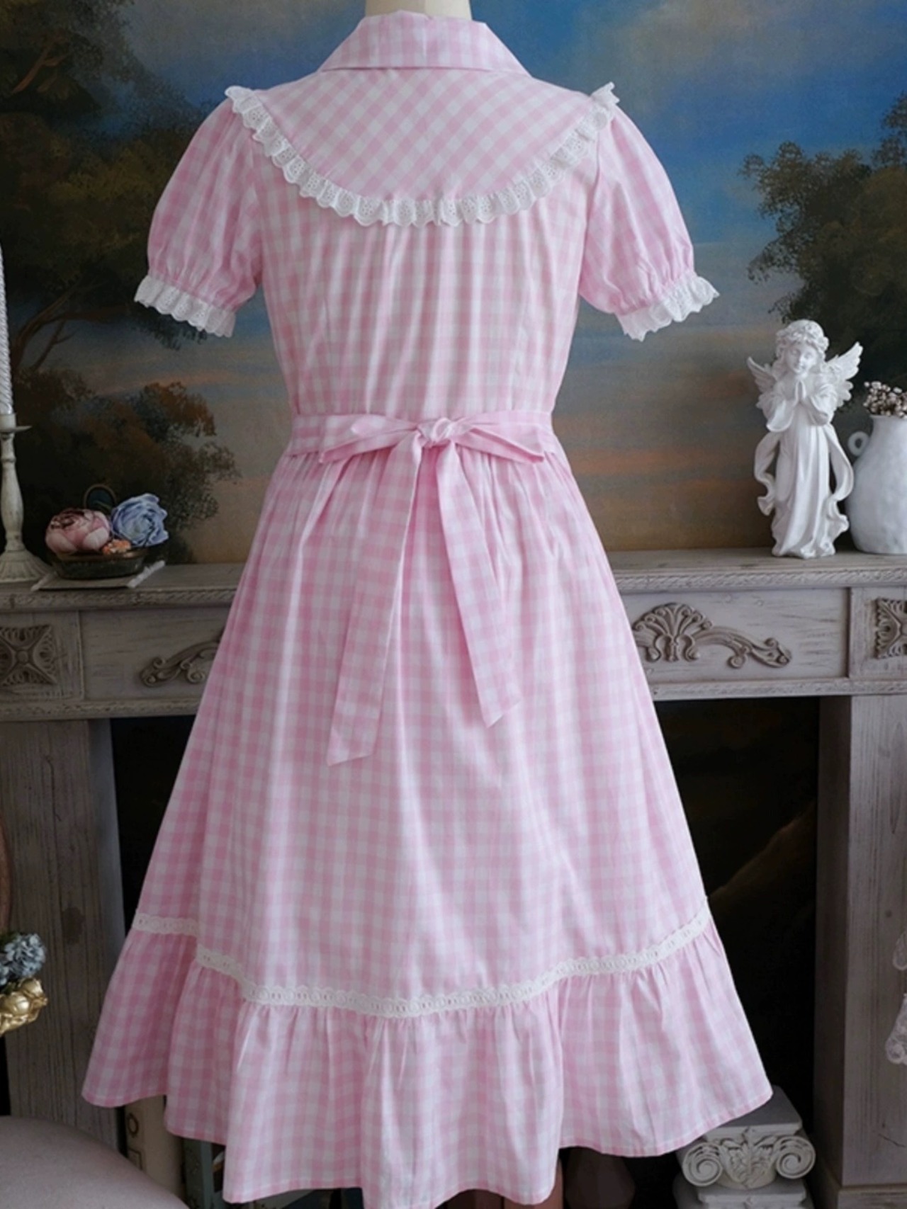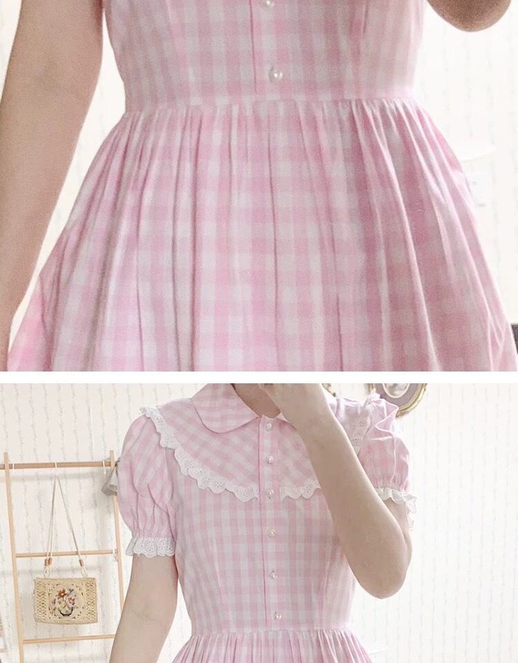 ピンク チェック リボン 緑 ブラウス ワンピース