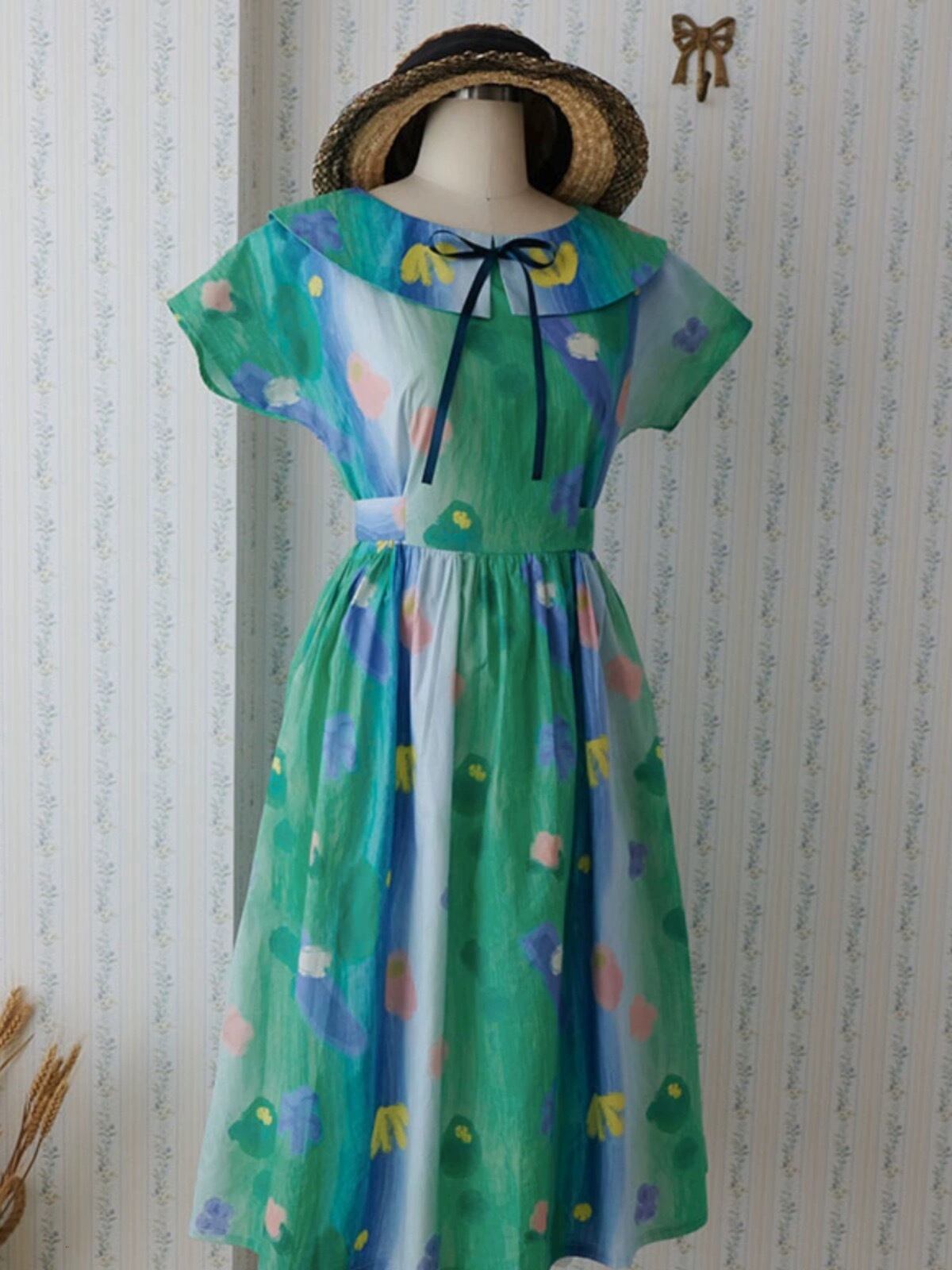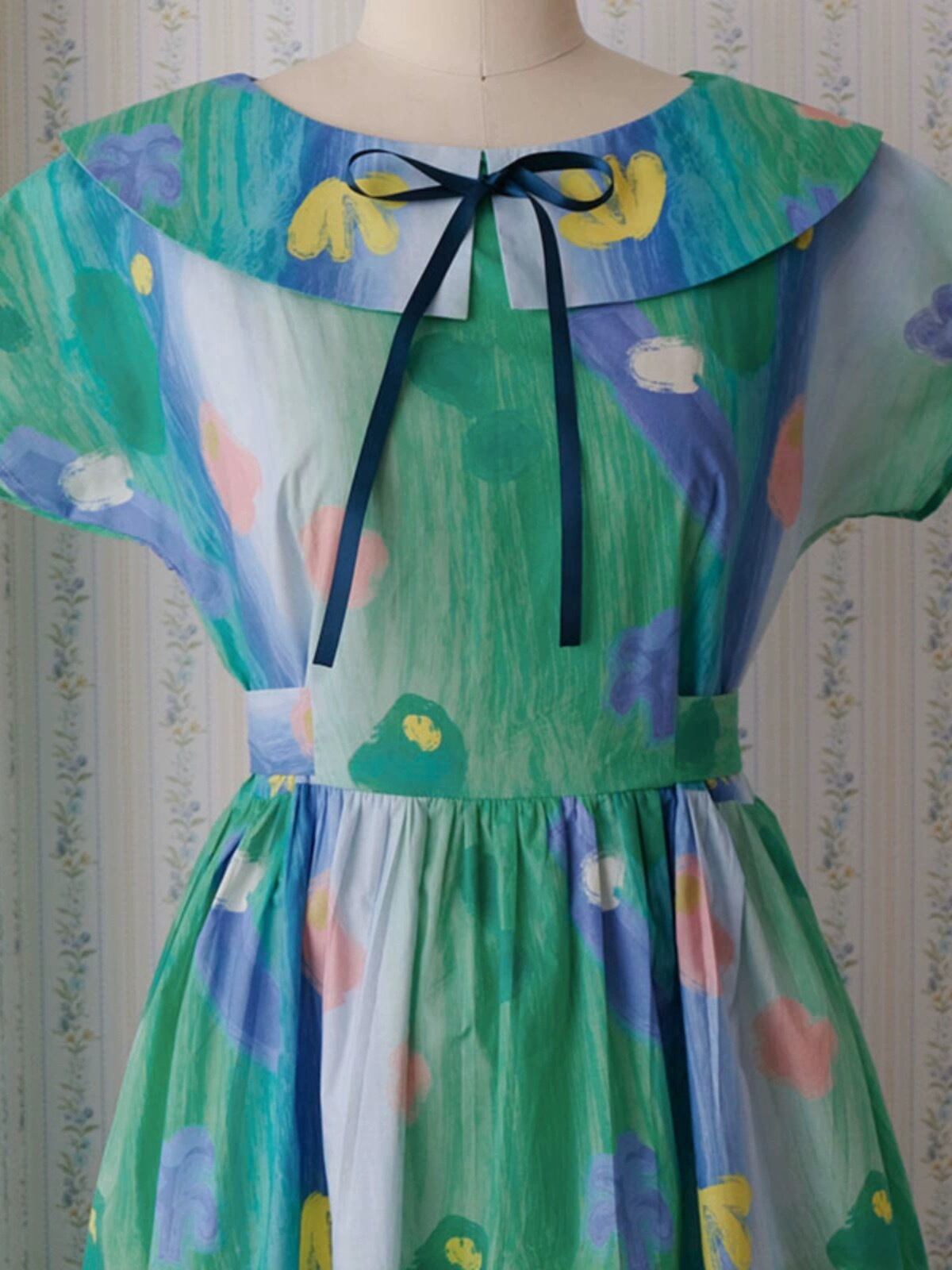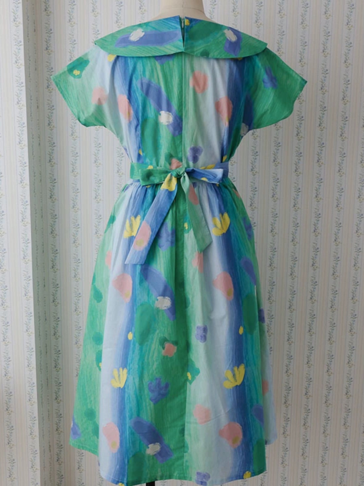 ピンク チェック リボン 緑 ブラウス ワンピース