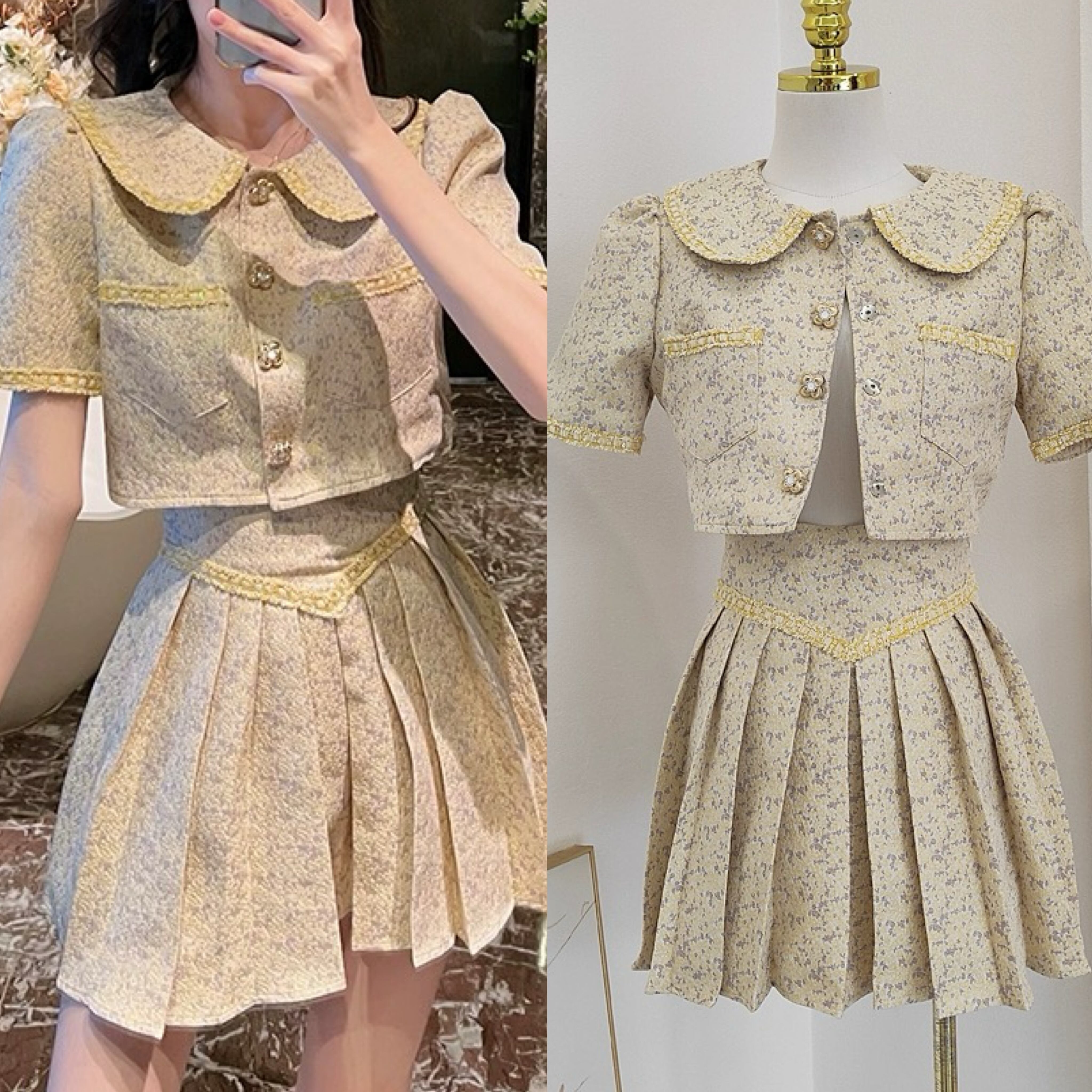 【黄色】セットアップ ジャケット ミニスカート ガーリー
