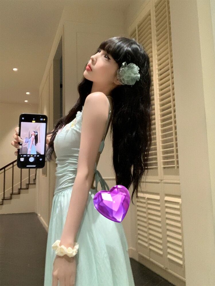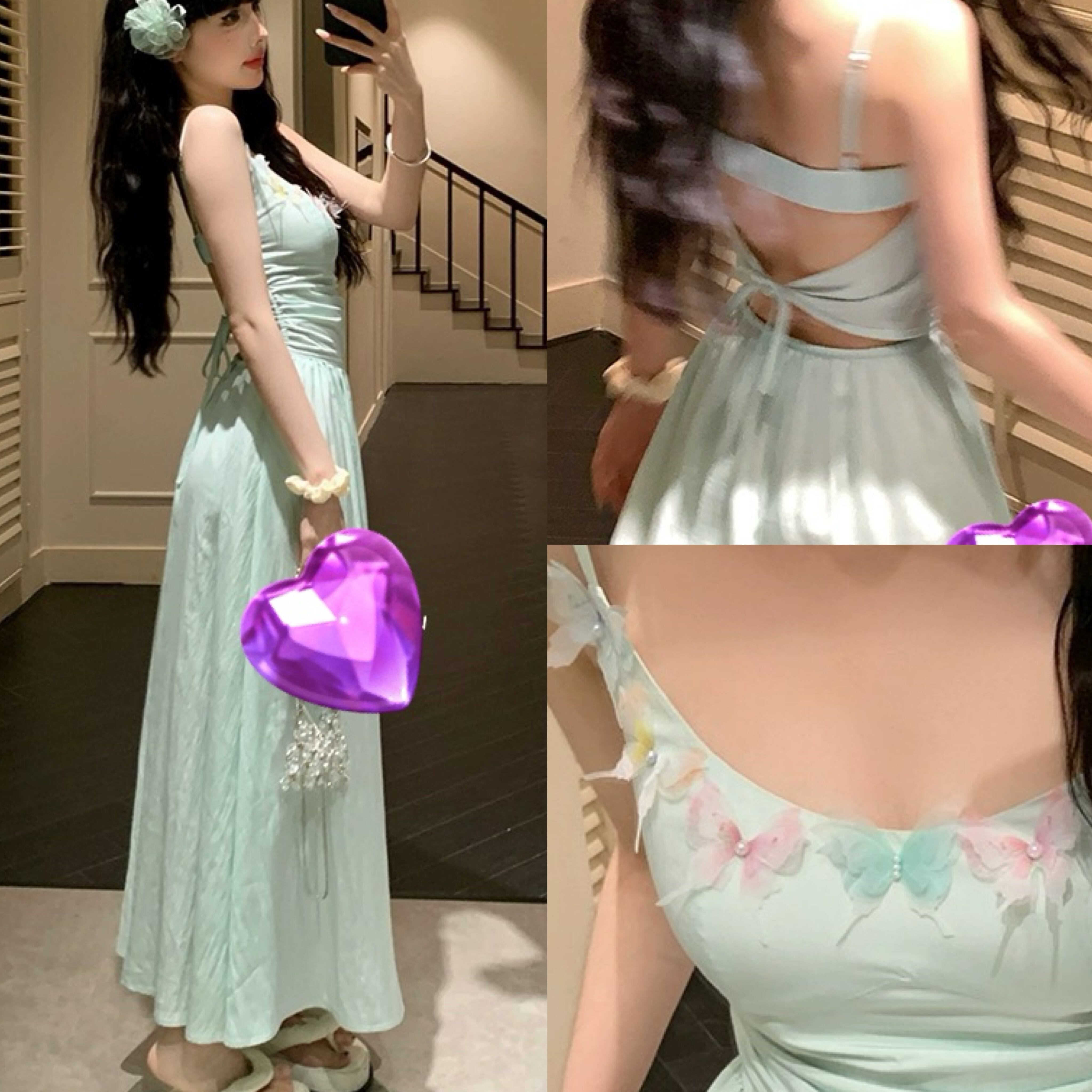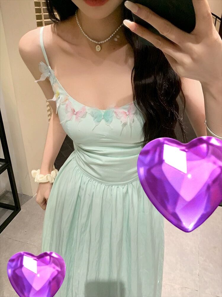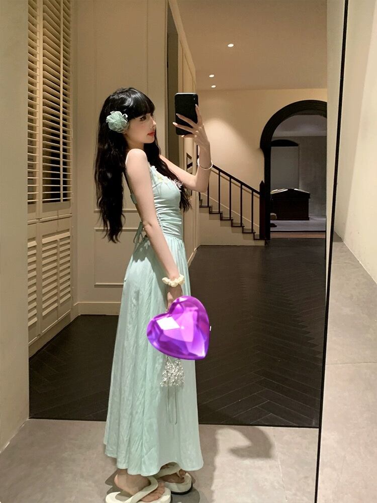 水色 緑 フラワー キャミソール ワンピース XL ガーリー