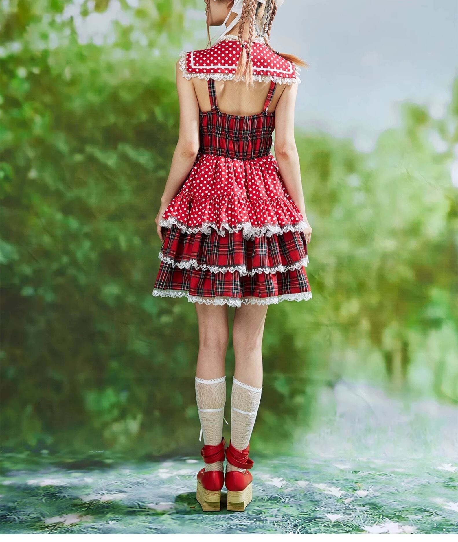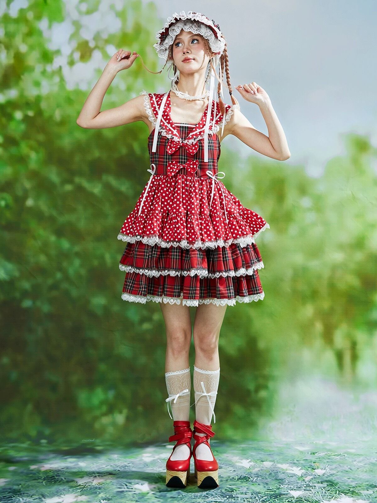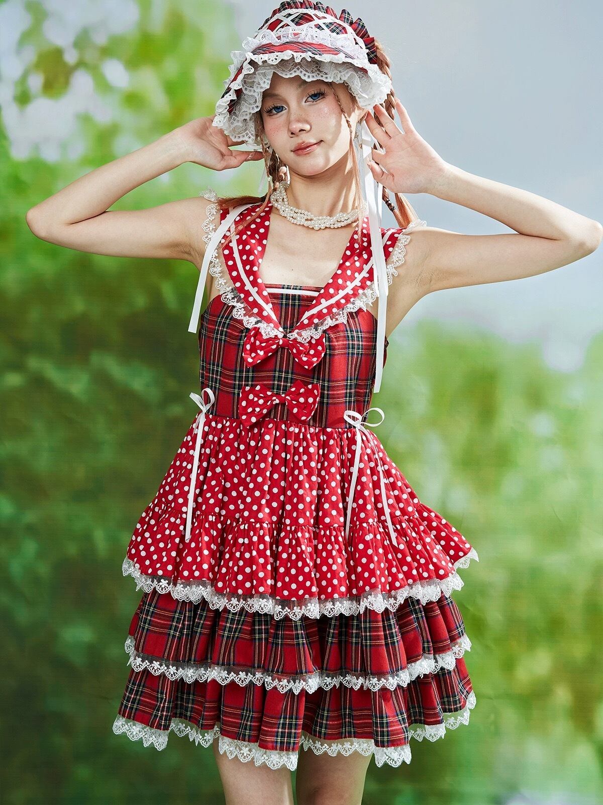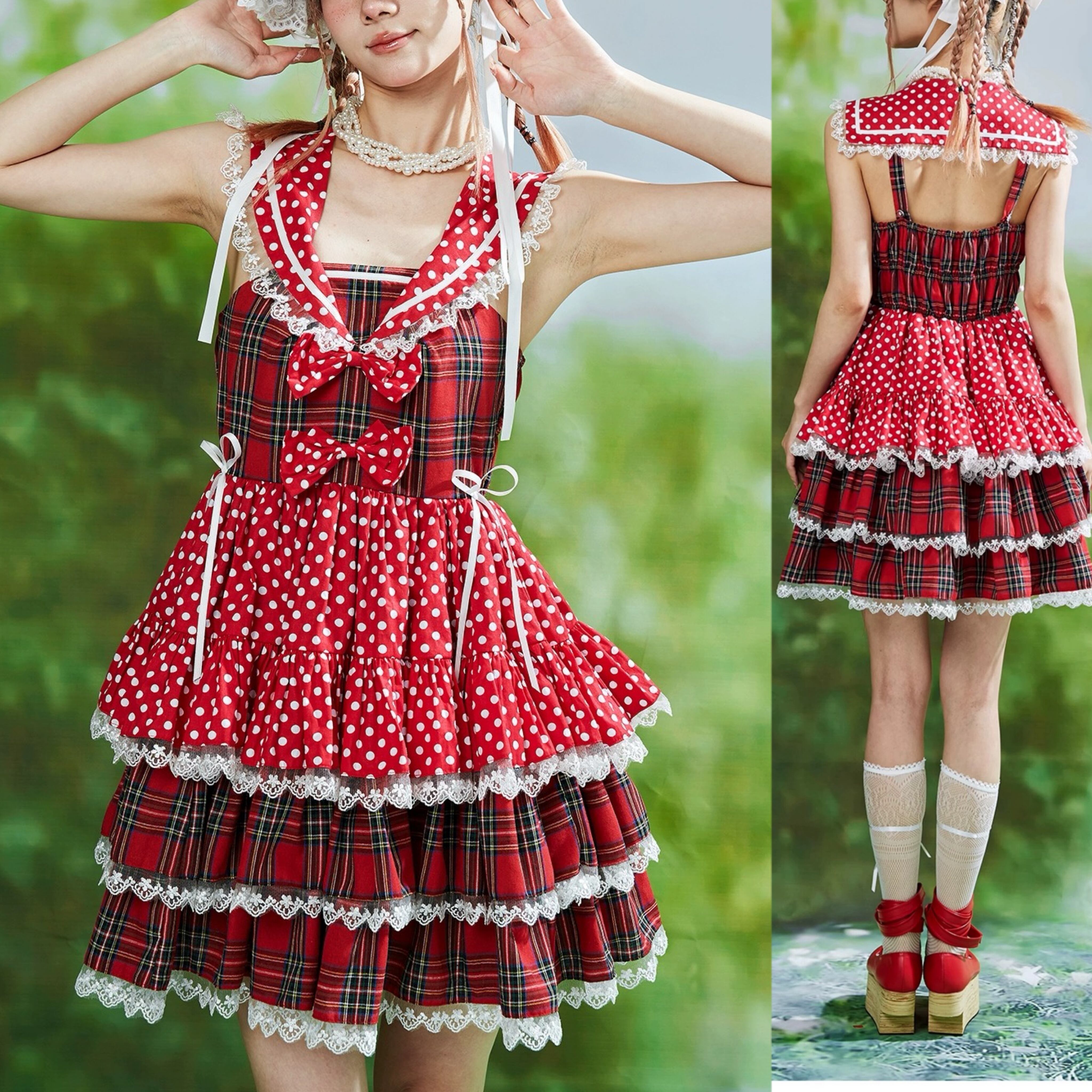赤 水玉 ドット ガーリー フリル 可愛い ブラウス スカート