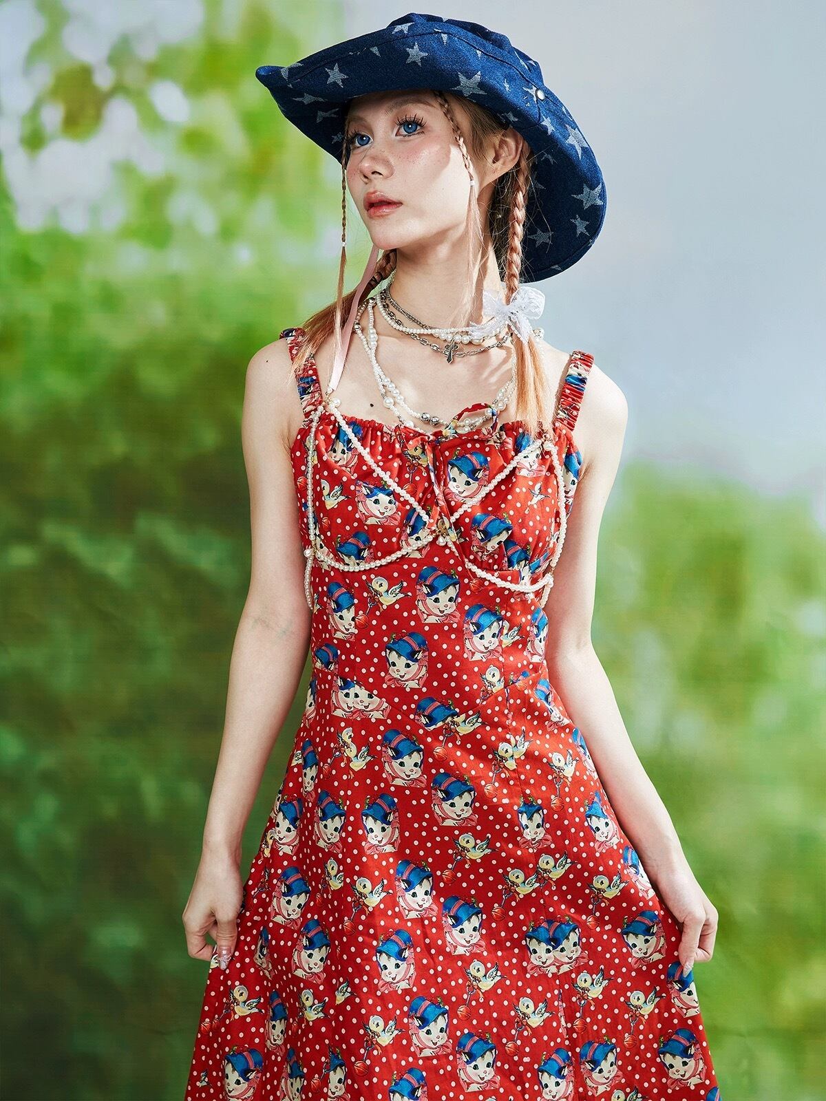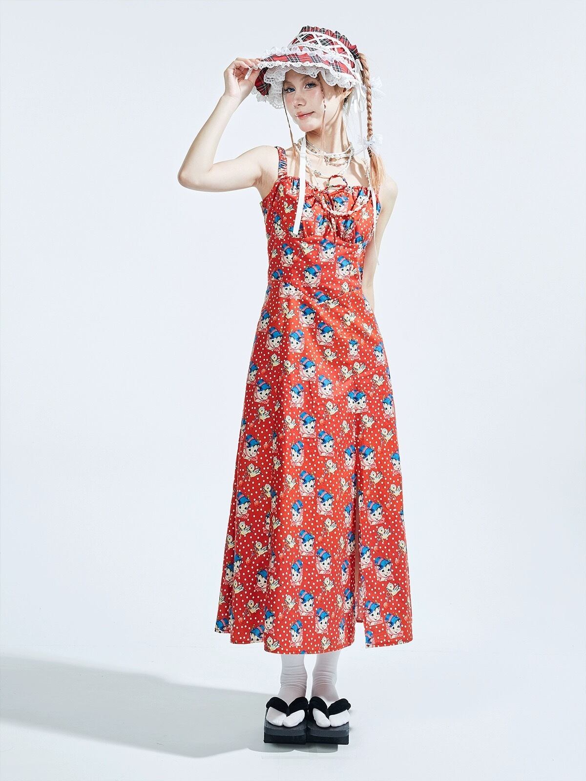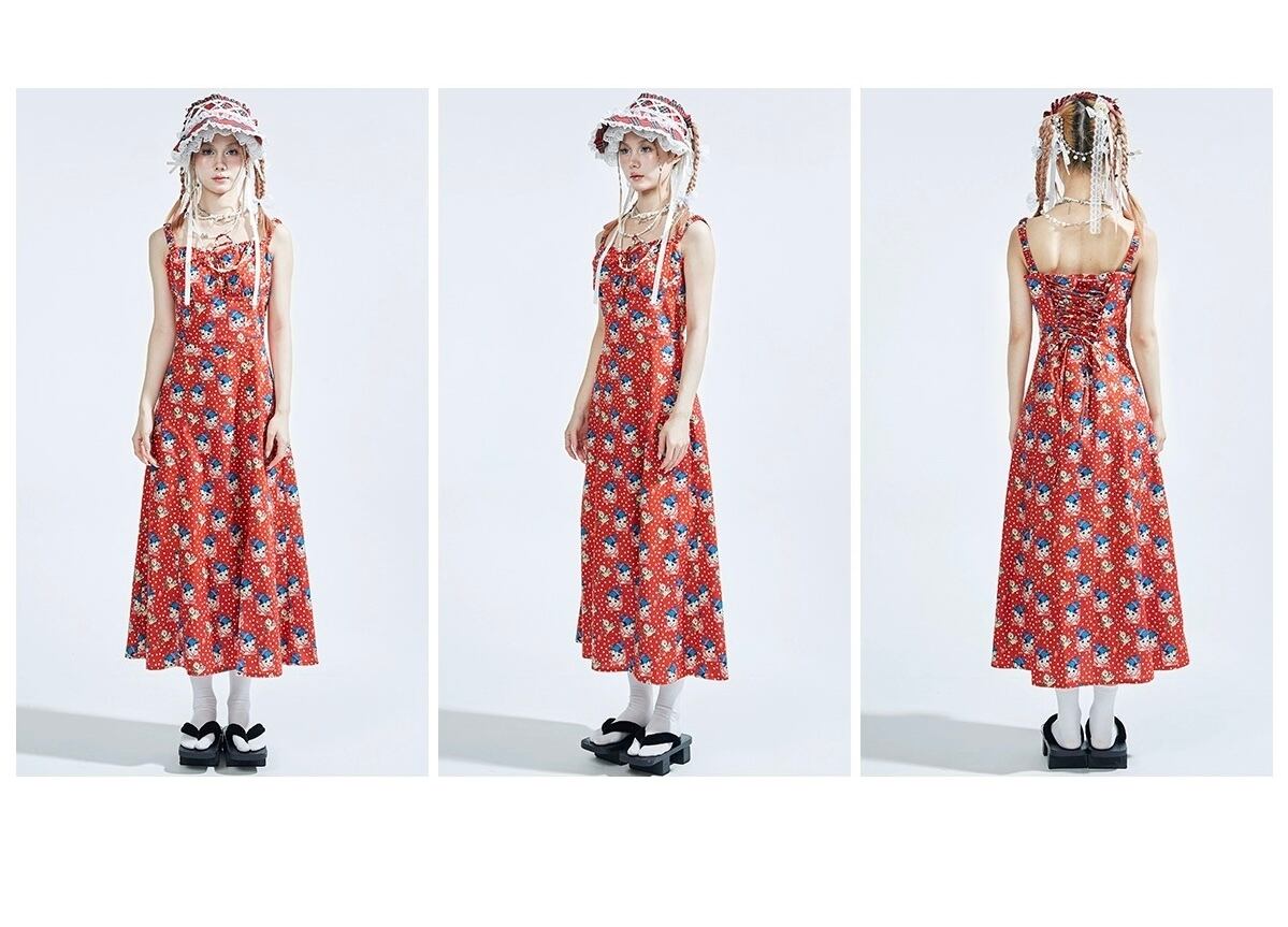 赤 水玉 ドット キャミソール ワンピース ガーリー