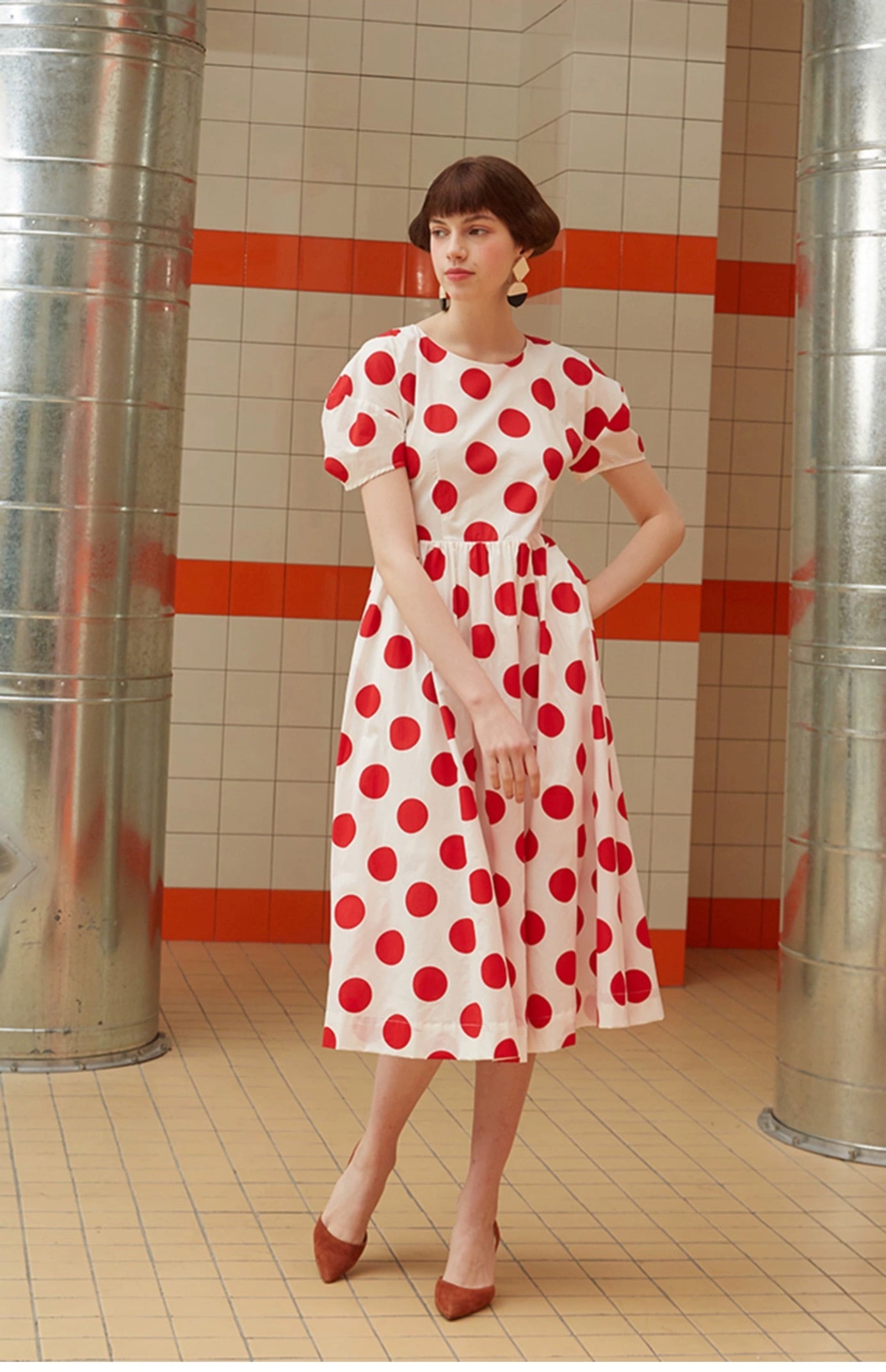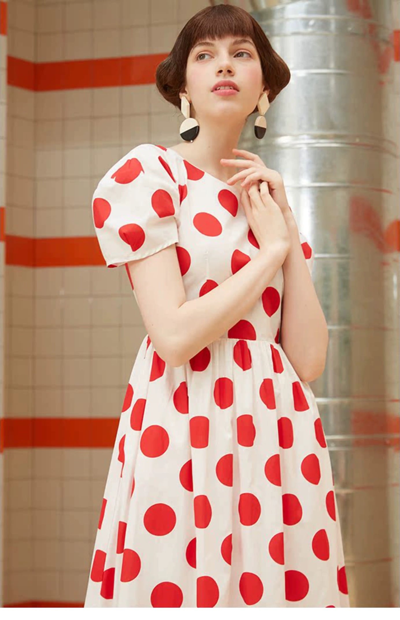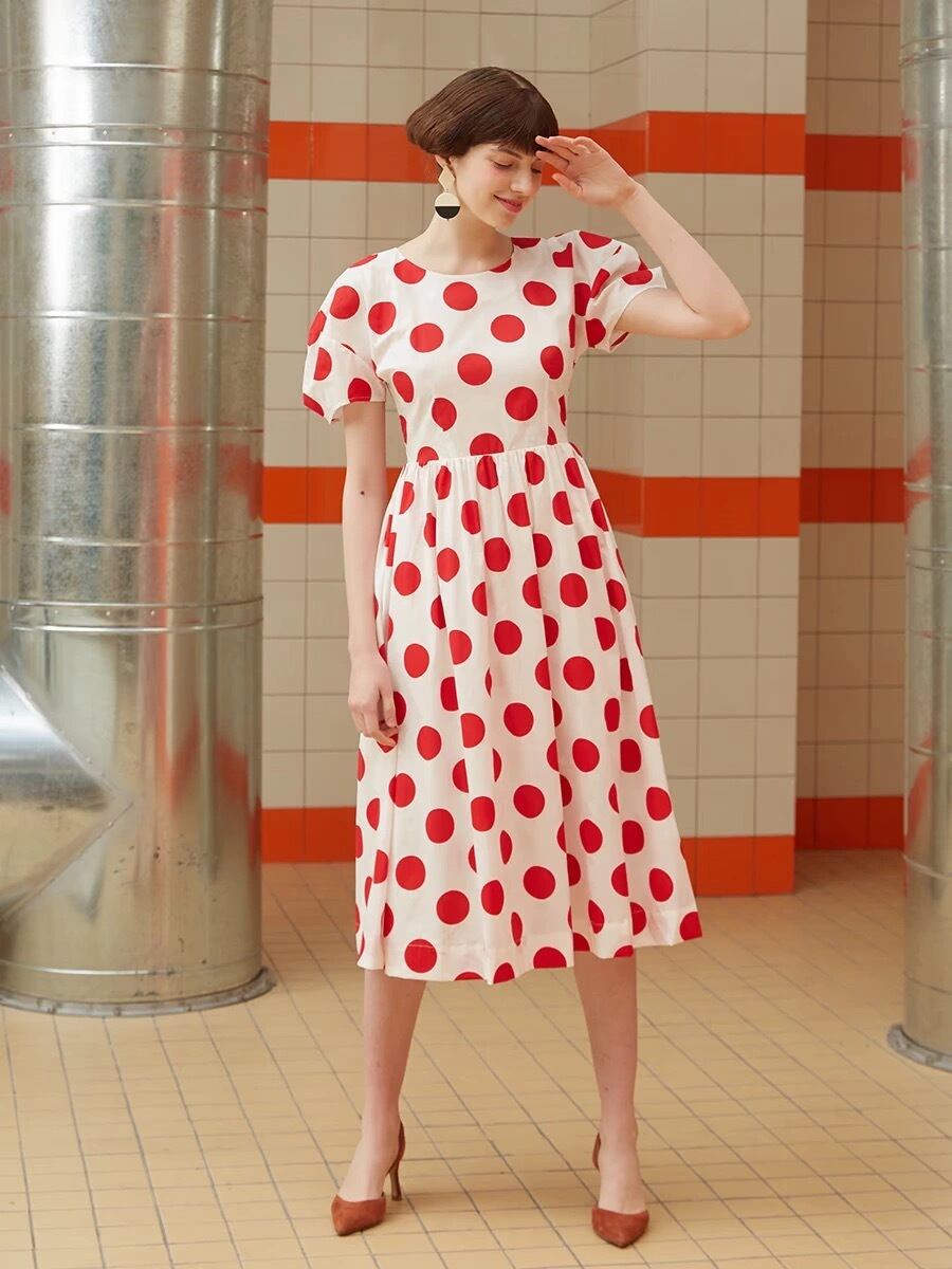 赤 水玉 ドット ワンピース ガーリー 茶色