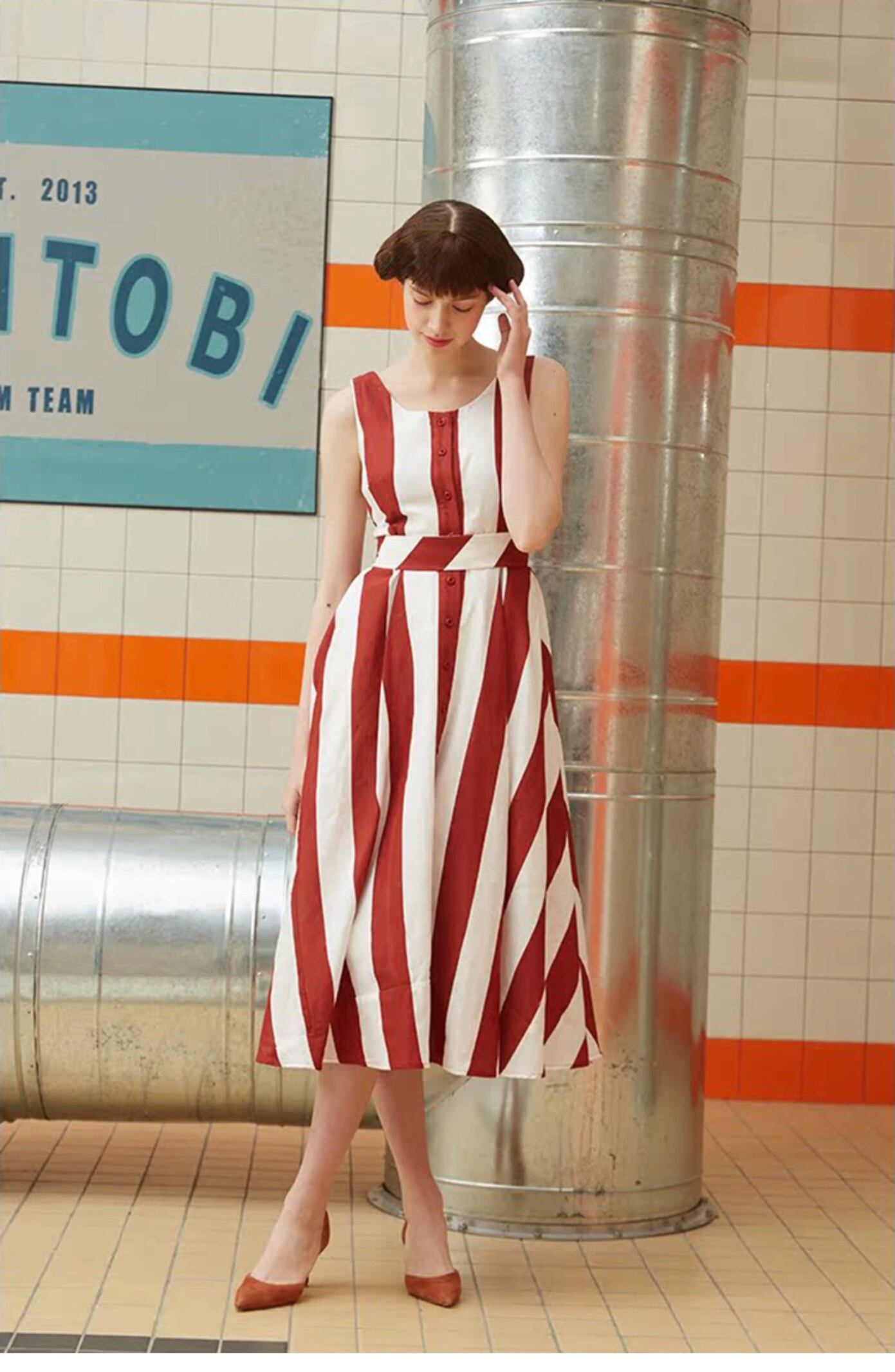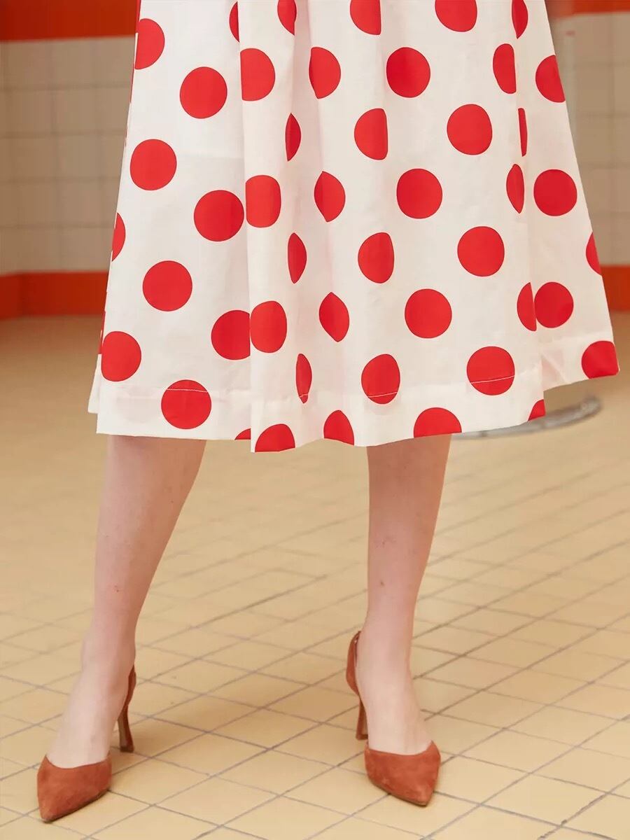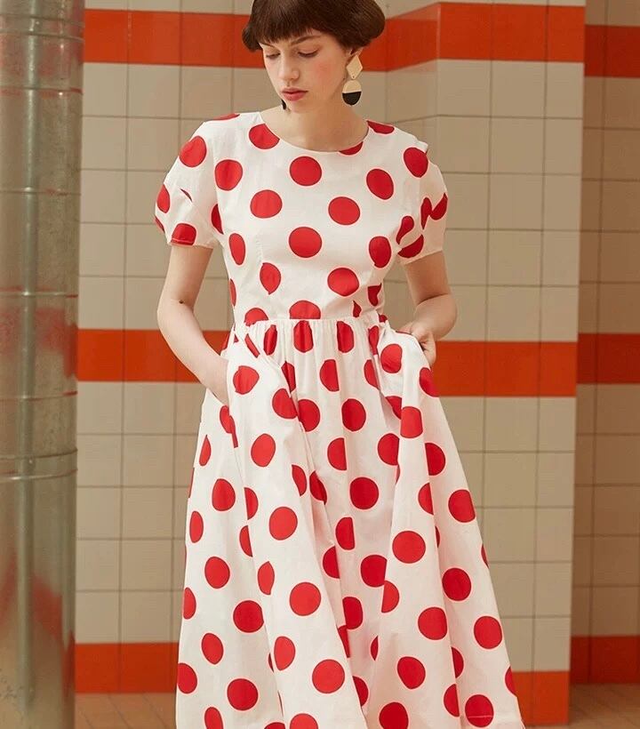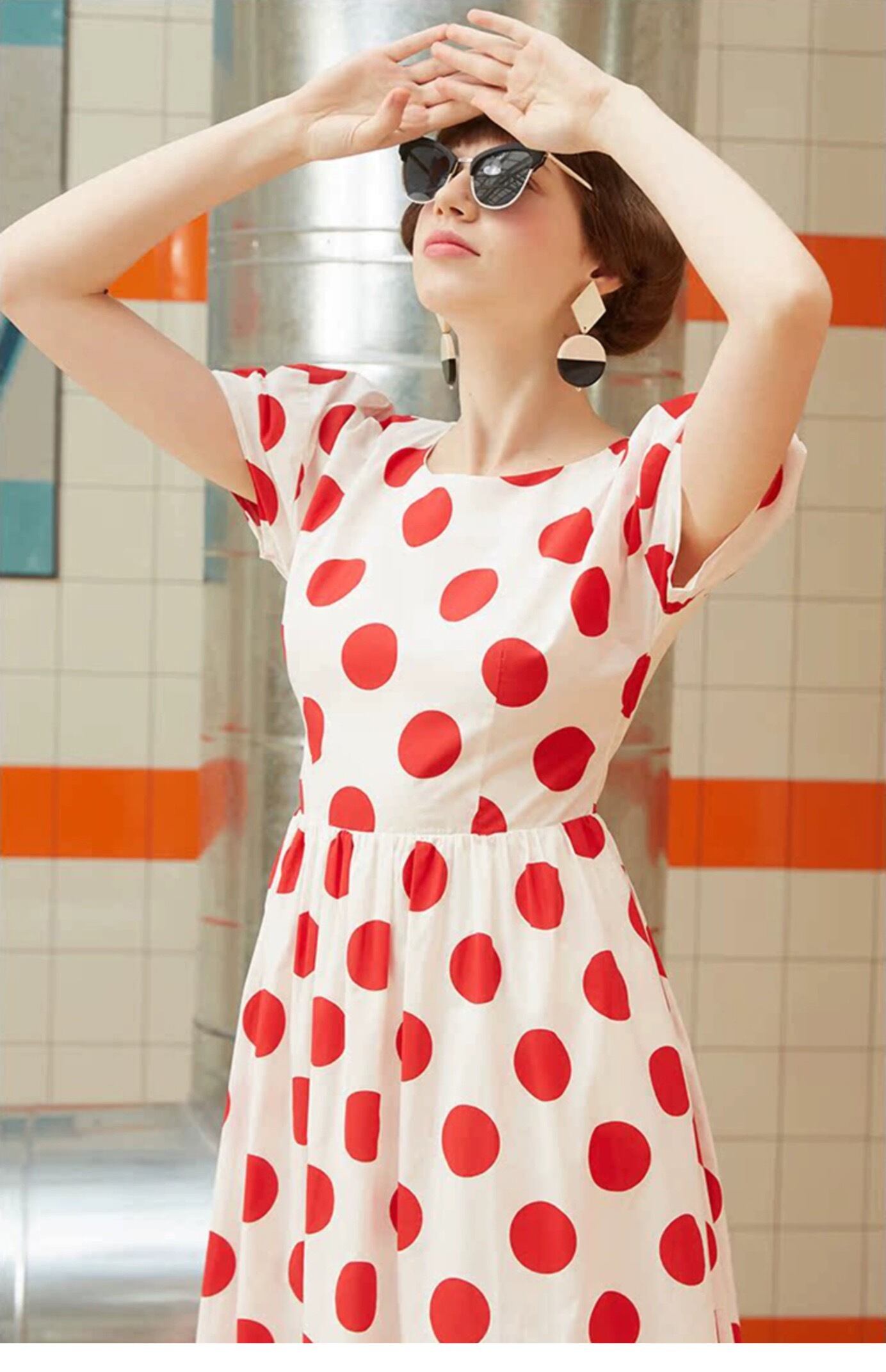 赤 水玉 ドット ワンピース ガーリー 茶色