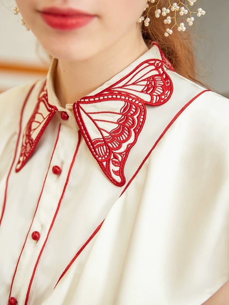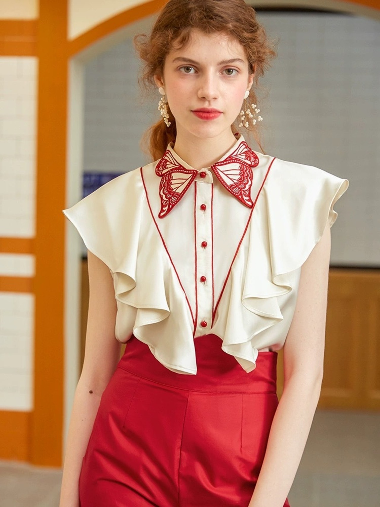 ブラウス 花柄 赤 トップス ガーリー シャツ