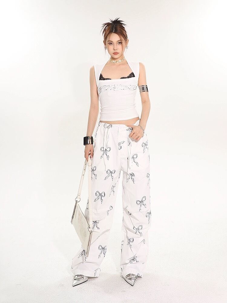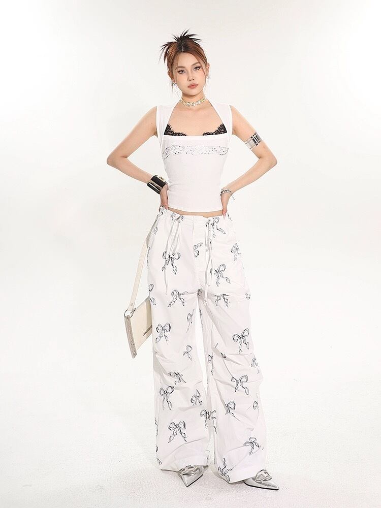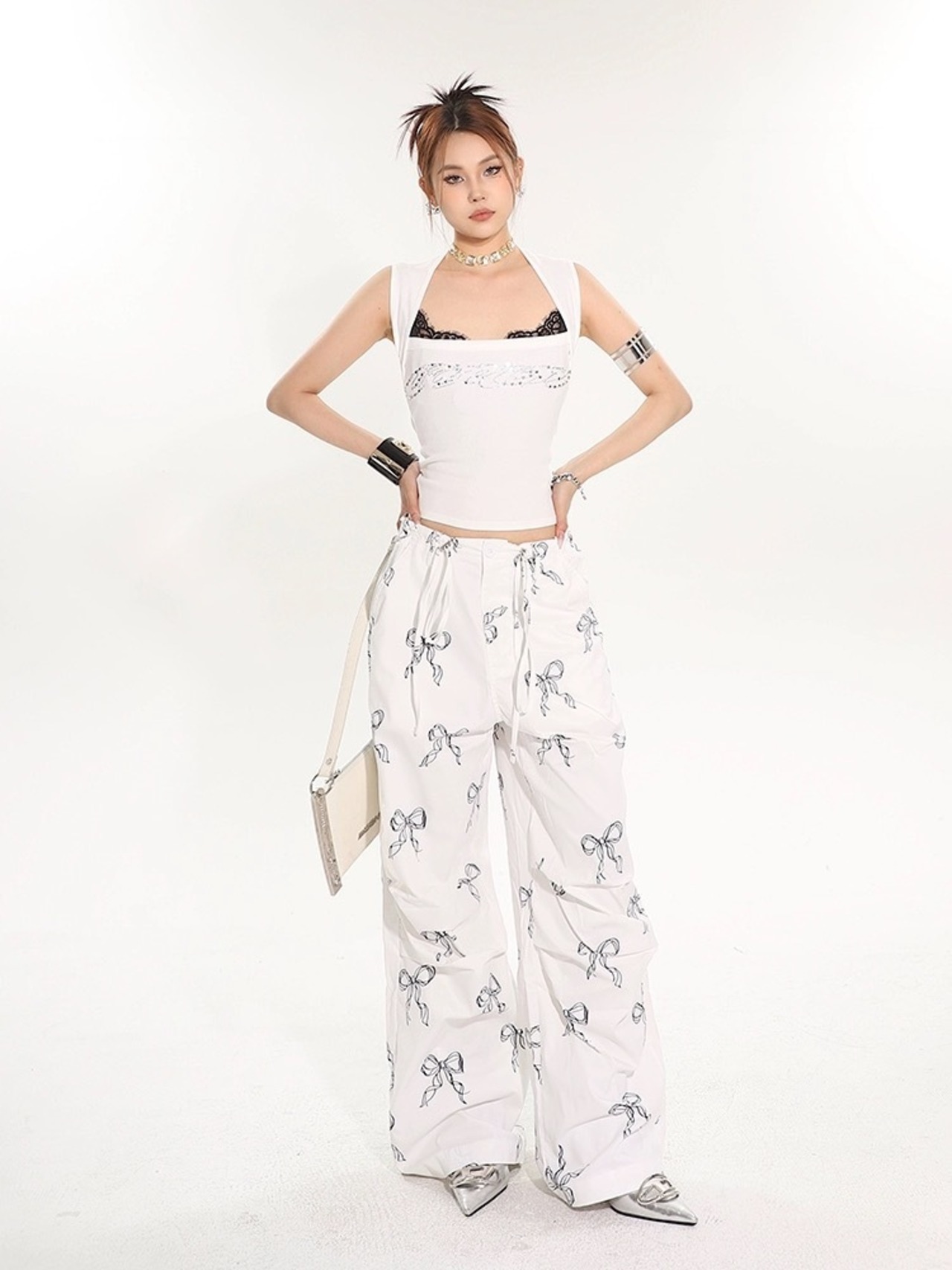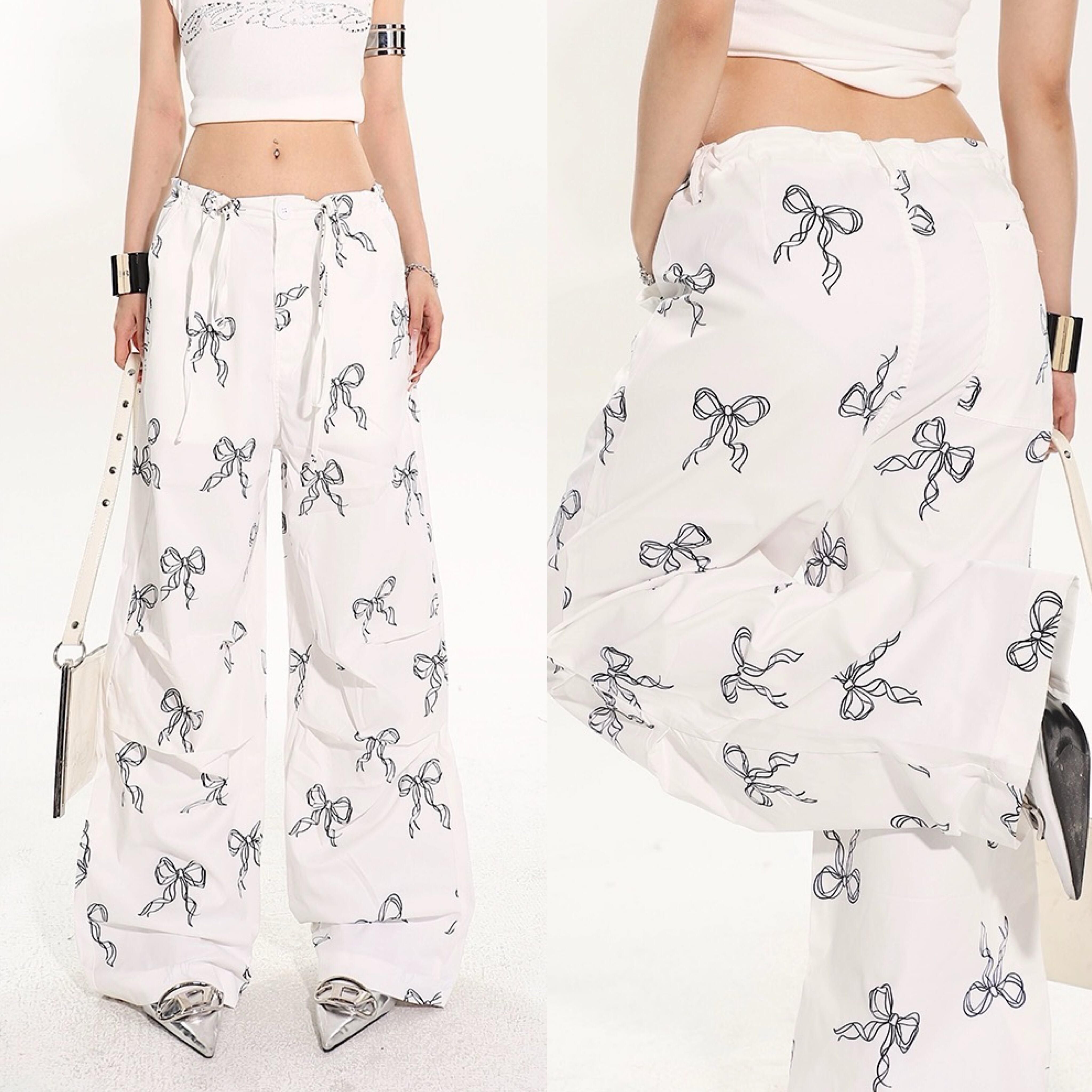 パンツ 白 スウェット リボン カジュアル ガーリー