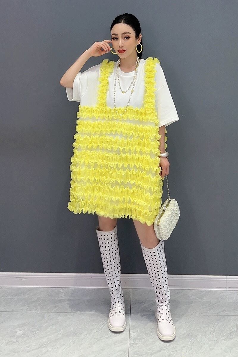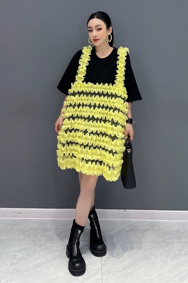 黄色 黒 白 ワンピース 可愛い ゆったり