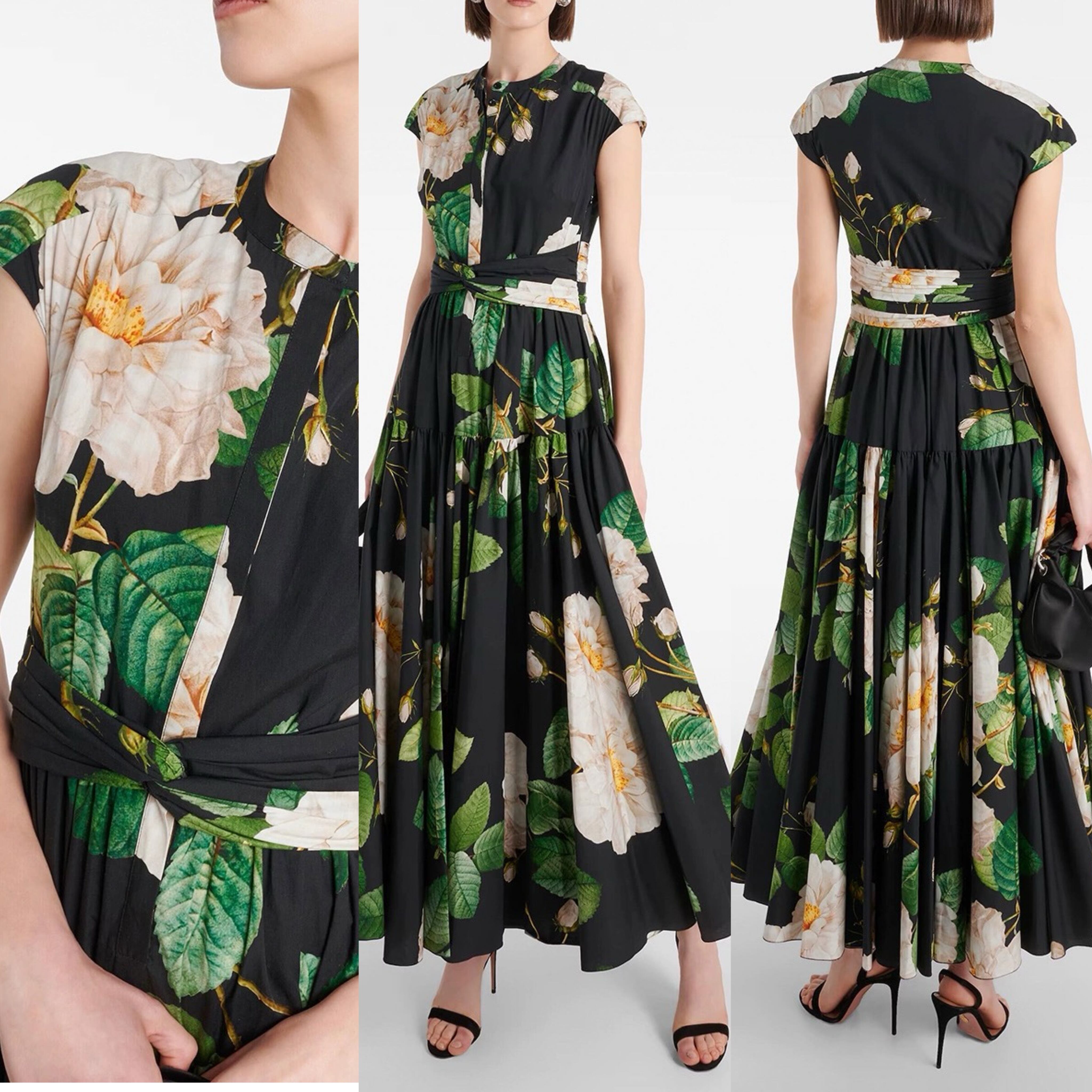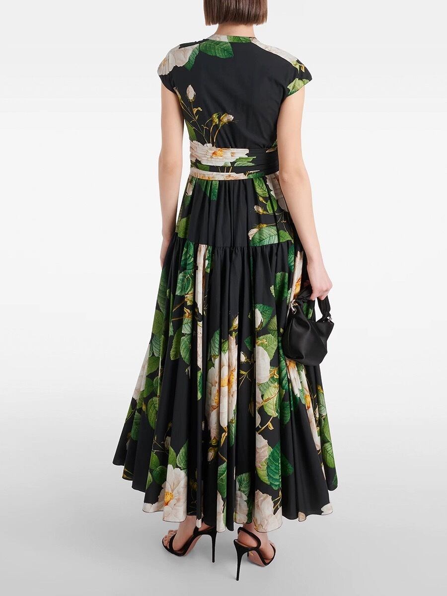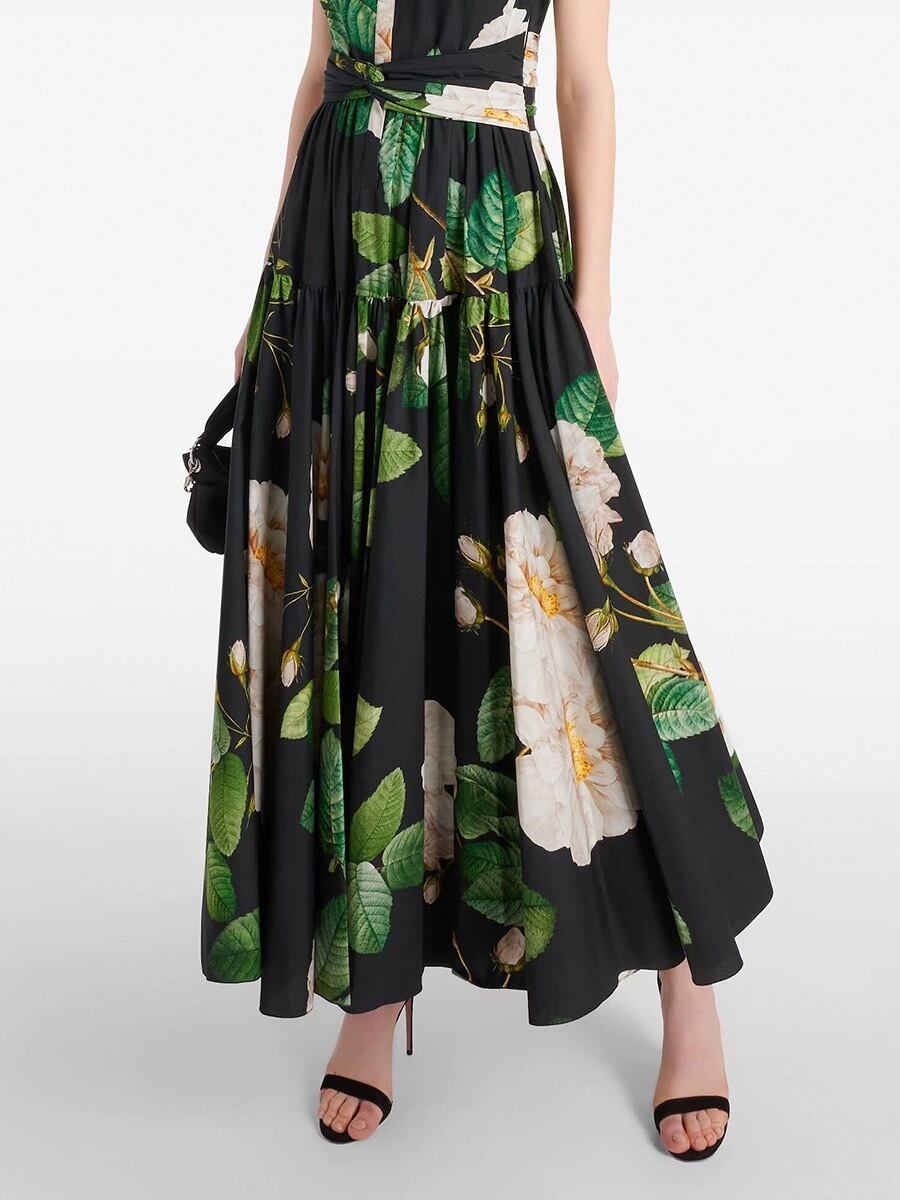 黒 花柄 フラワー マキシ ワンピース エレガント