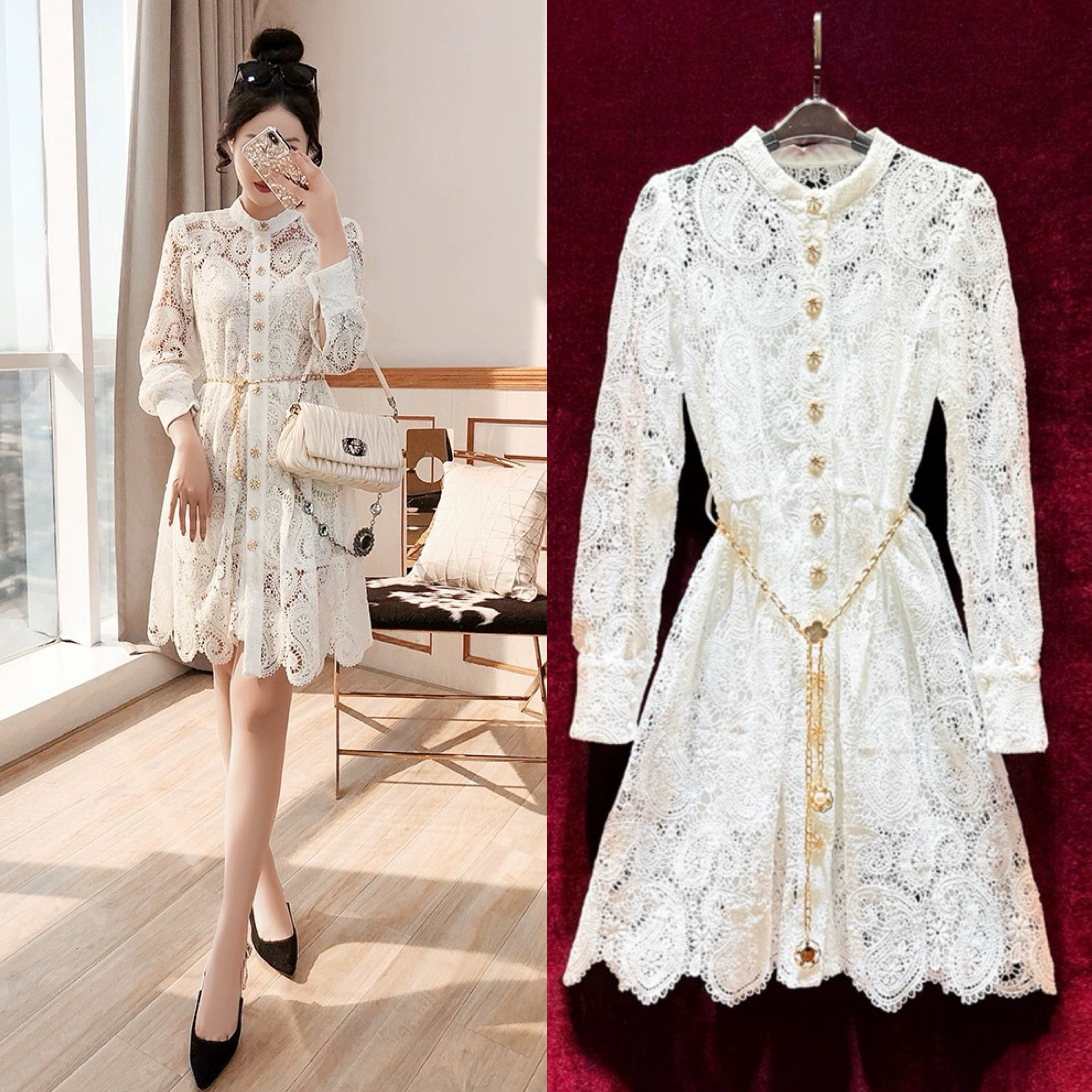 白 ホワイト レース ガーリー 可愛い XL ワンピース