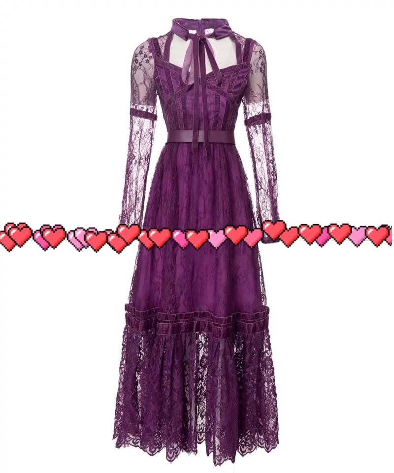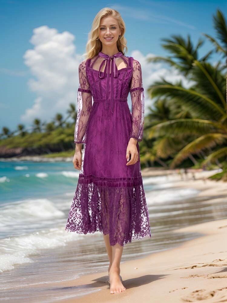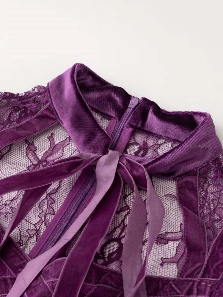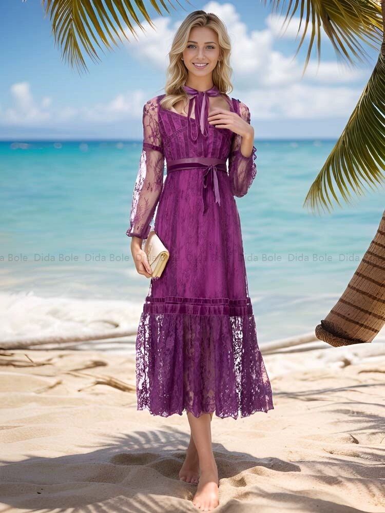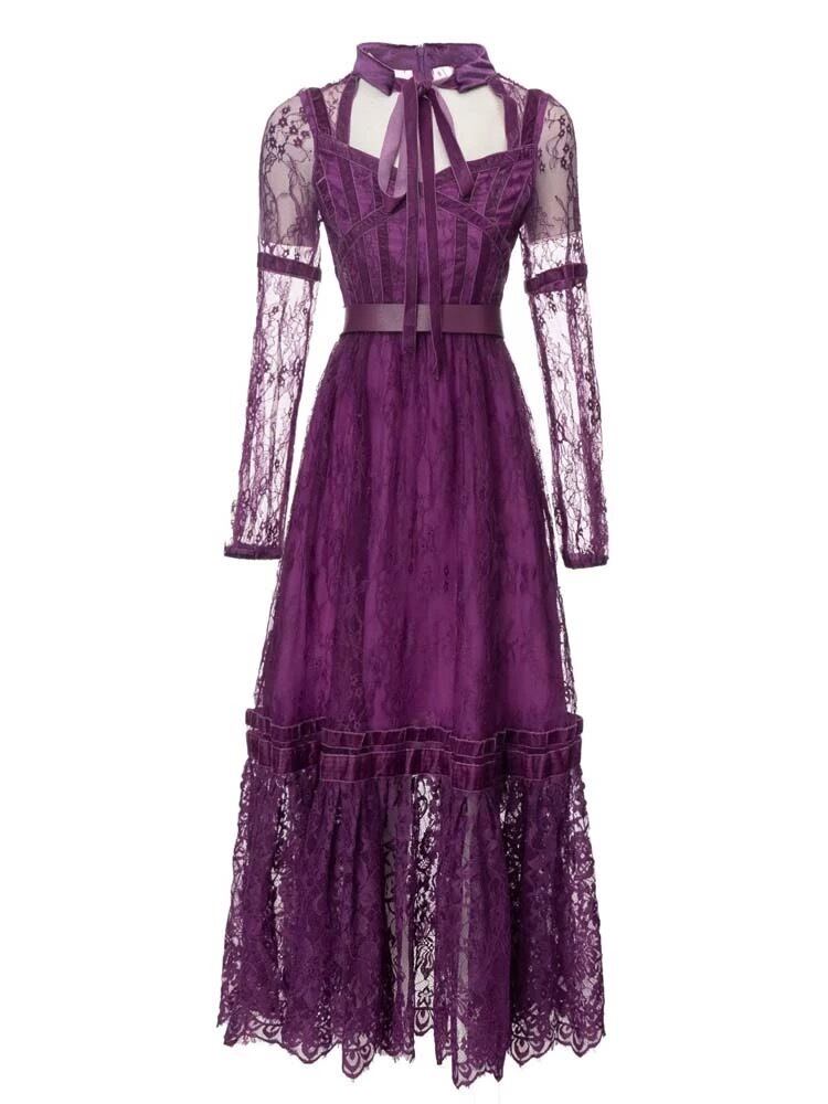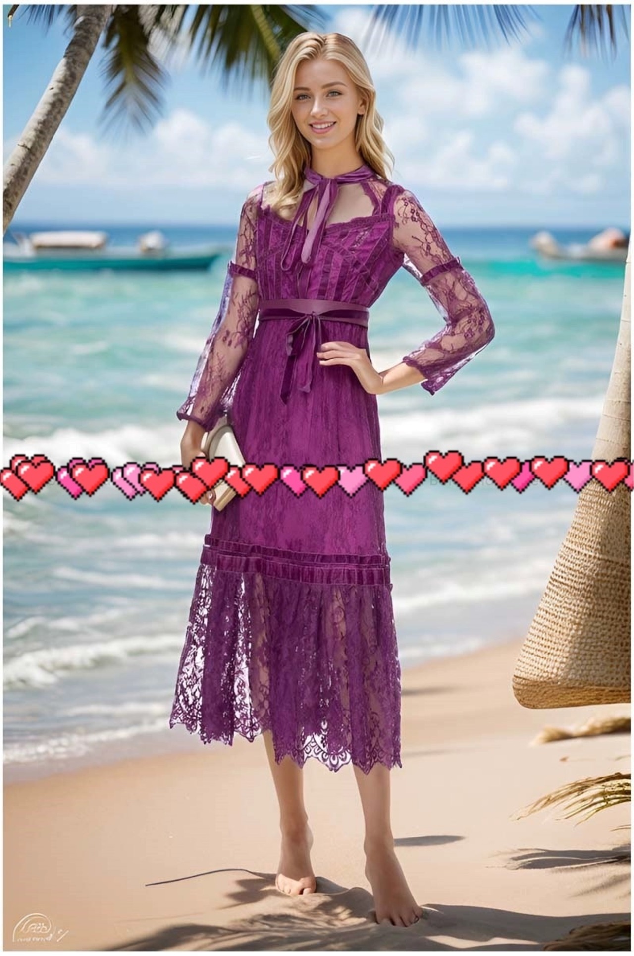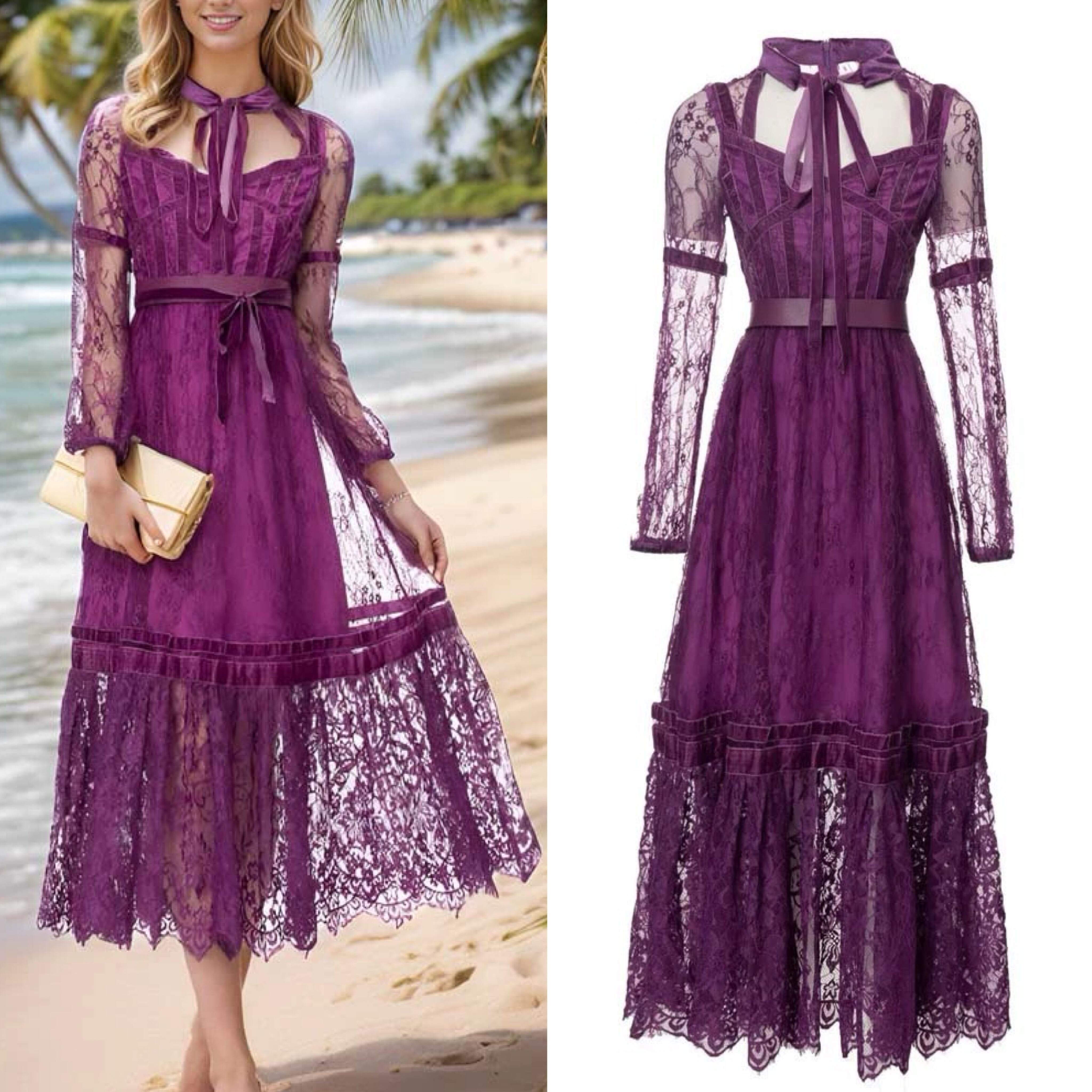 紫 レース ワンピース XL エレガント 花柄 フラワー