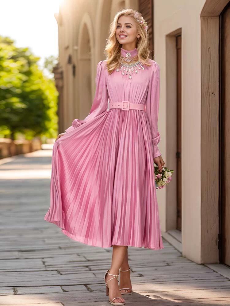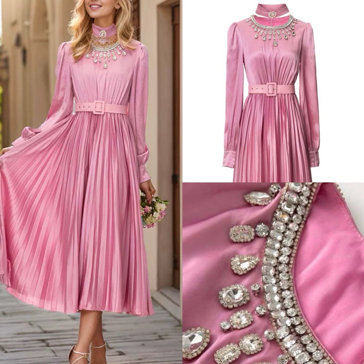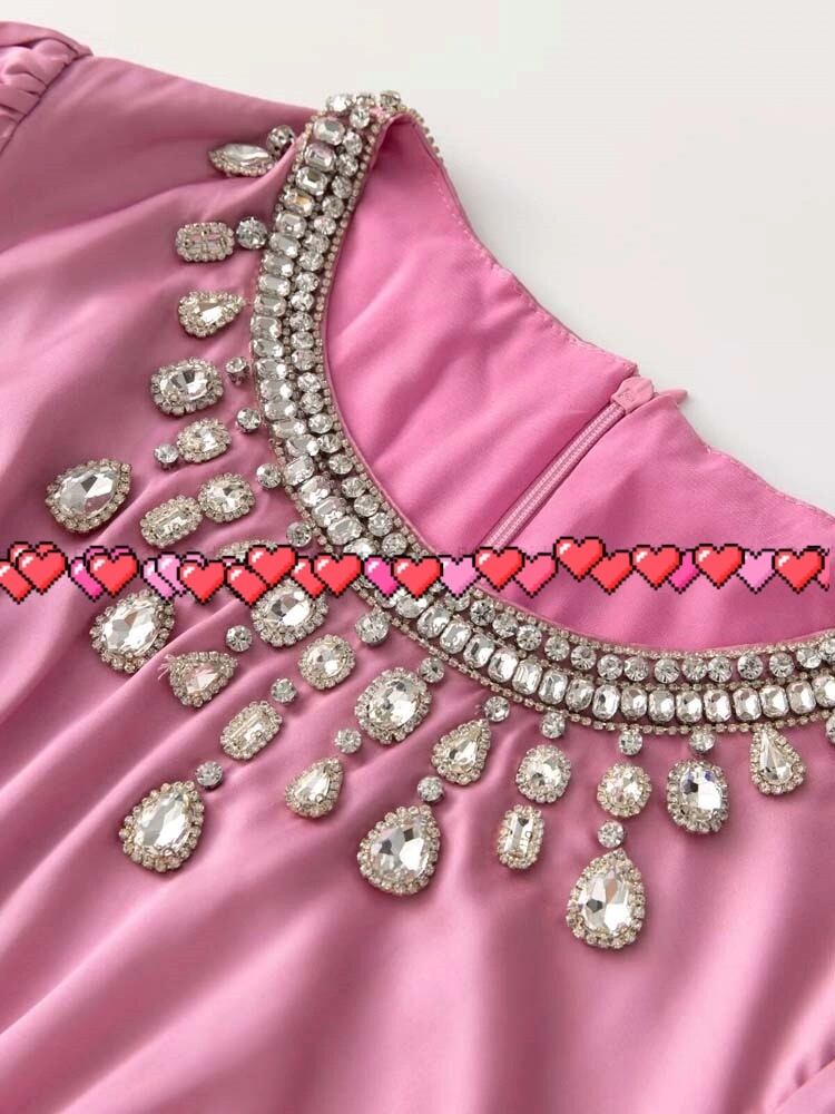 ラインストーン キラキラ ブラウス プリーツスカート ワンピース XL