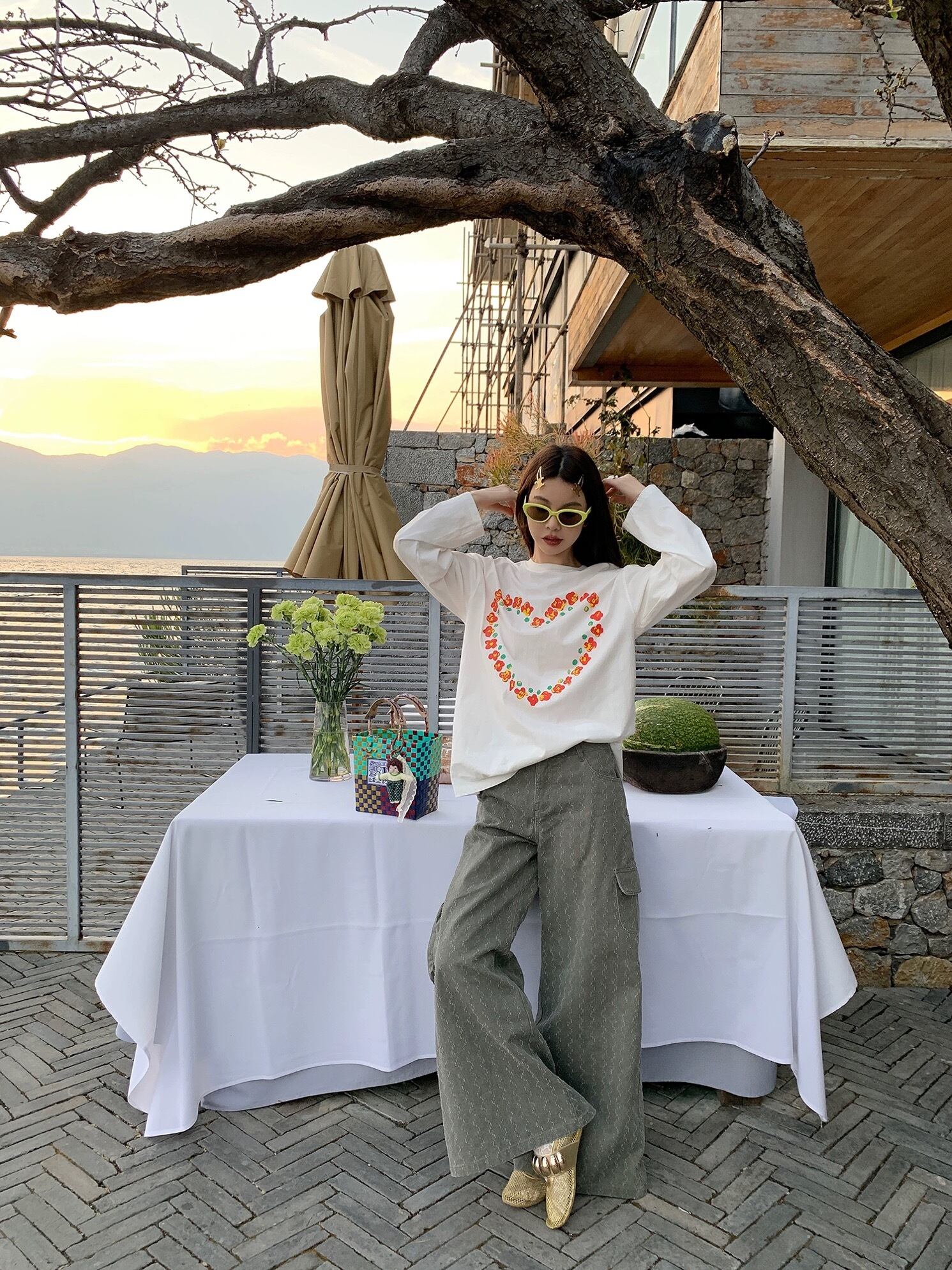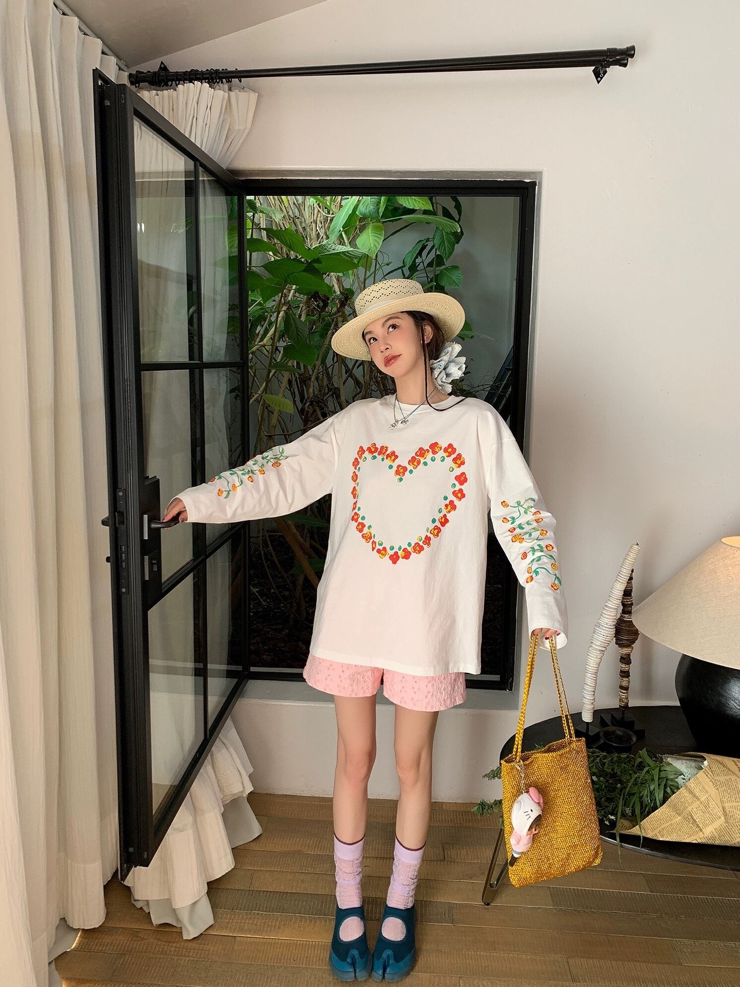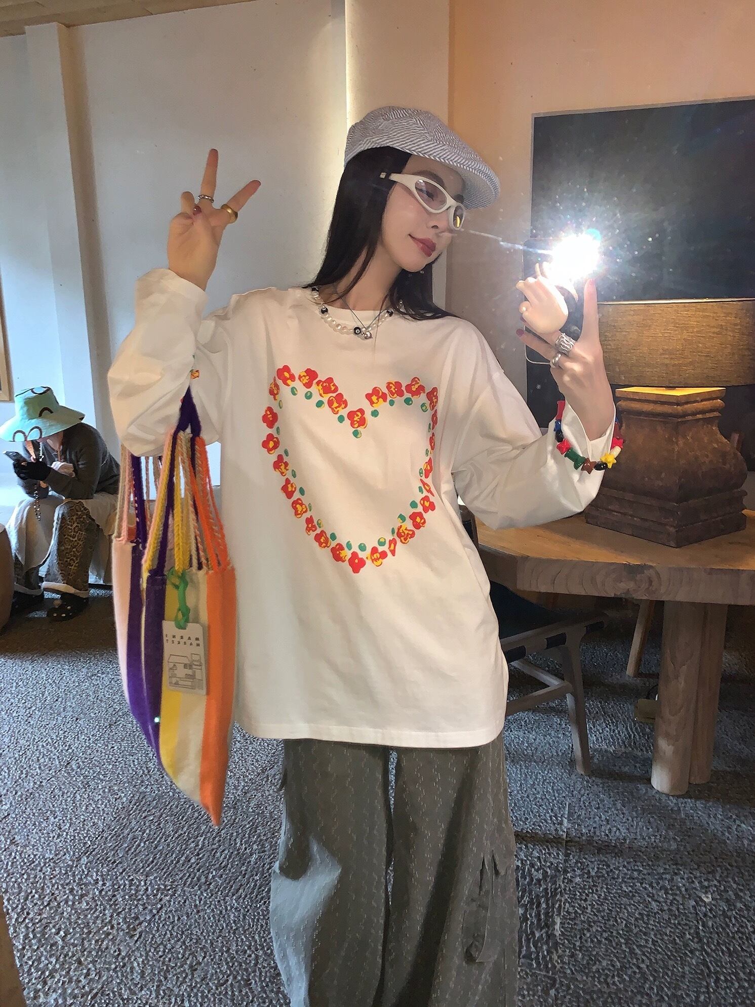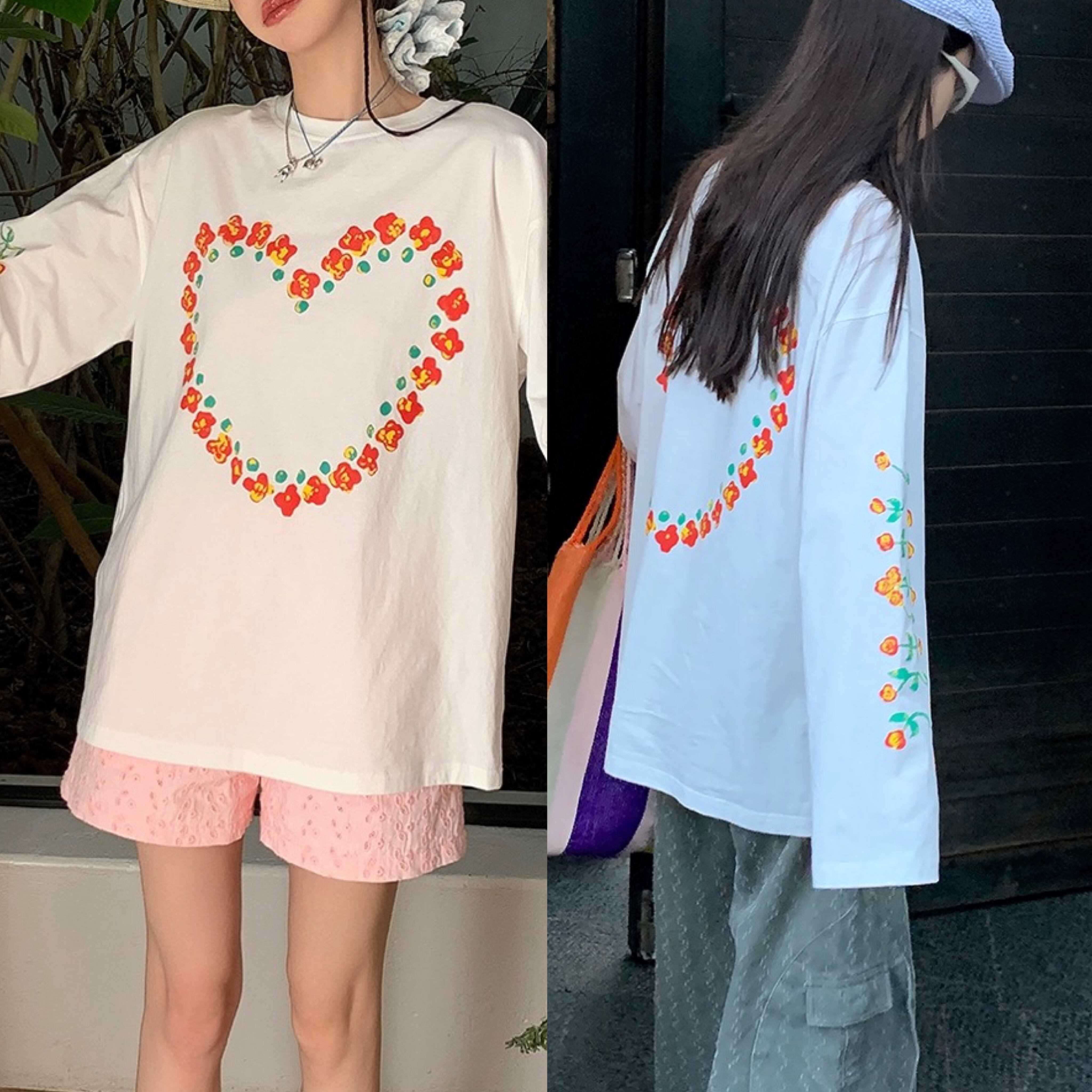 ハート カジュアル Tシャツ ブラウス トップス オレンジ