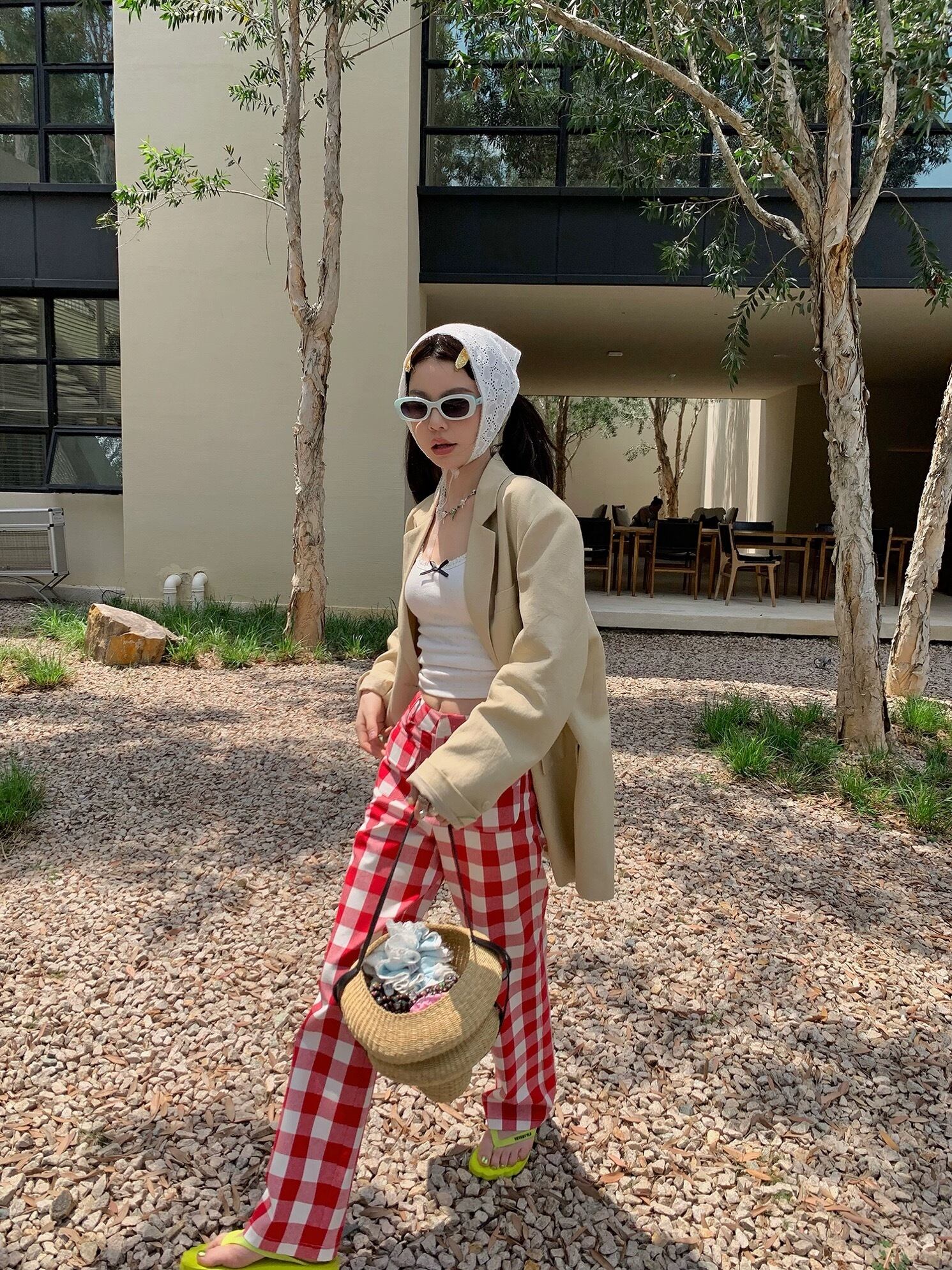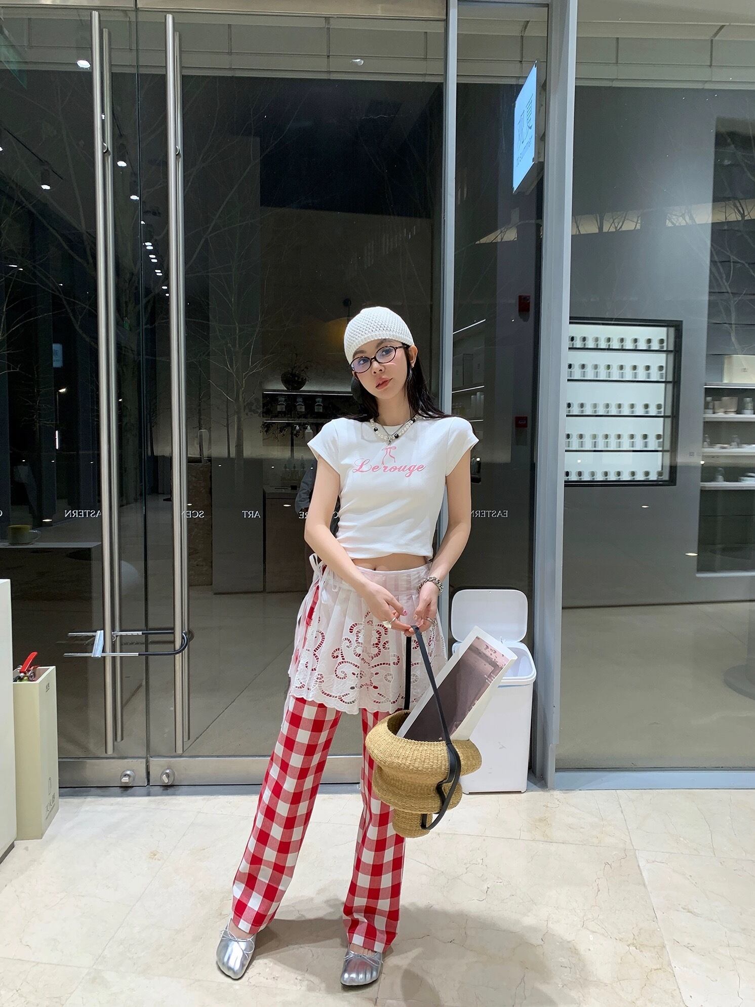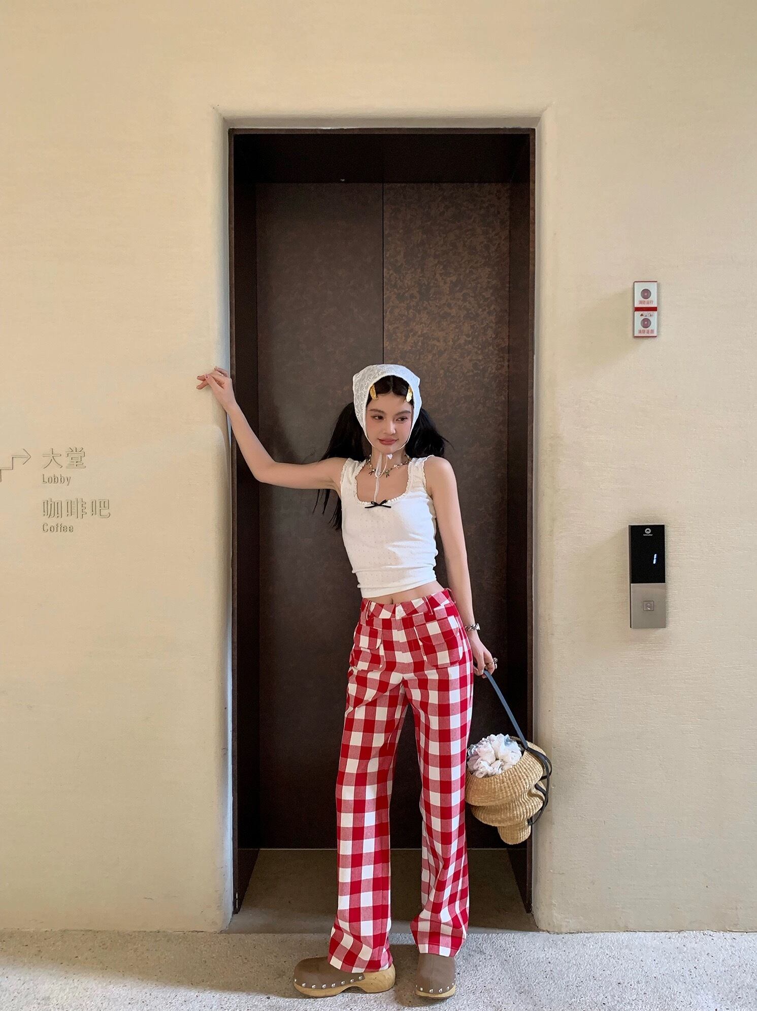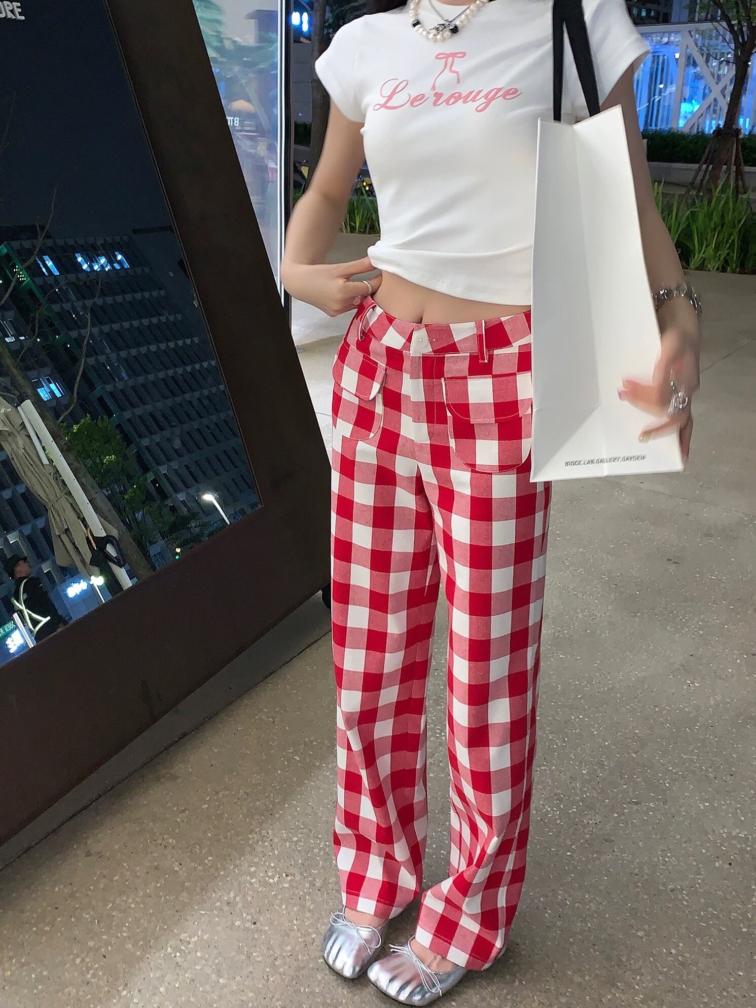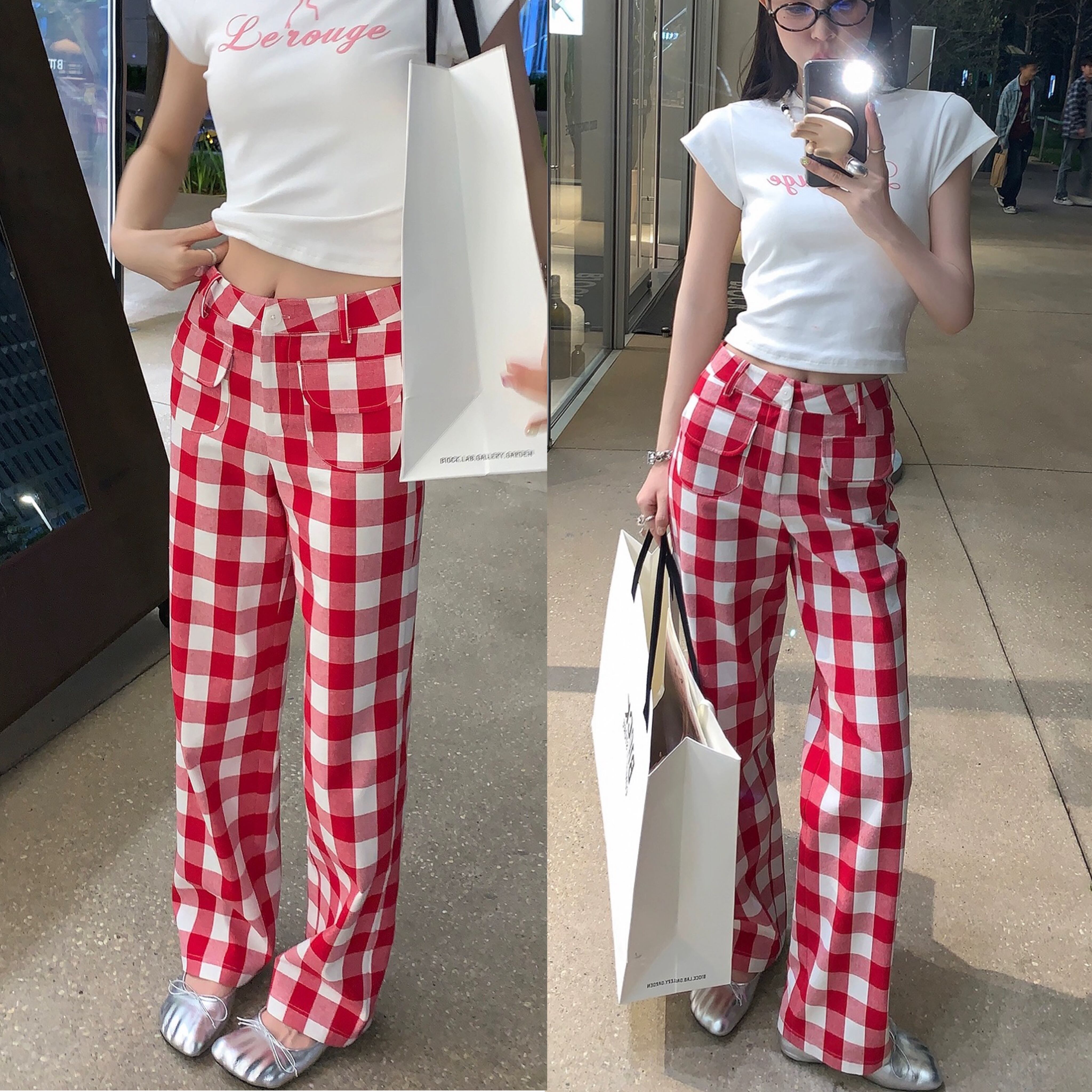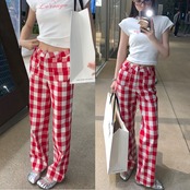 赤 チェック パンツ ボトムス ガーリー 可愛い