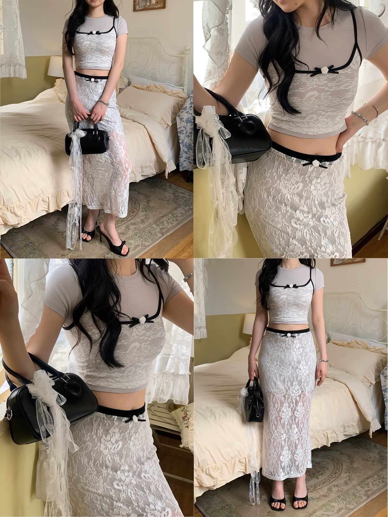 【トップス】グレー キャミソール ガーリー ブラウス