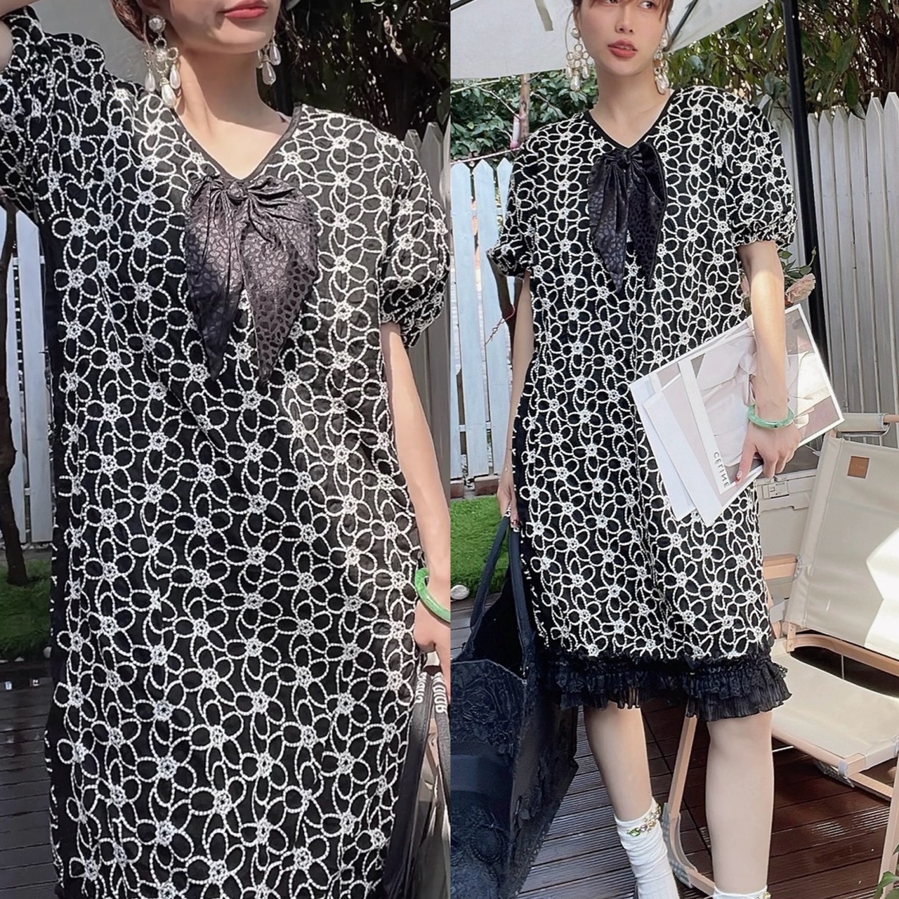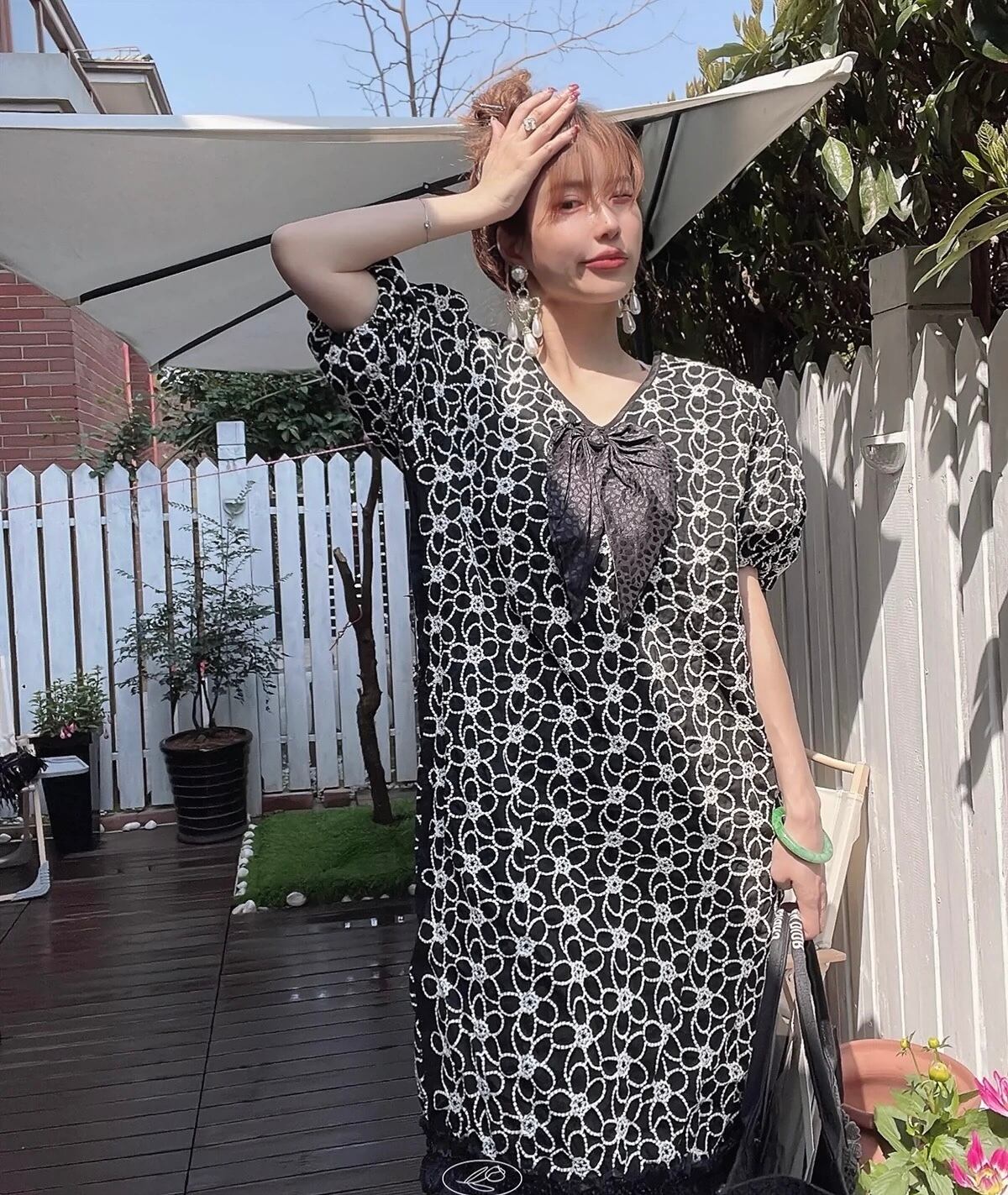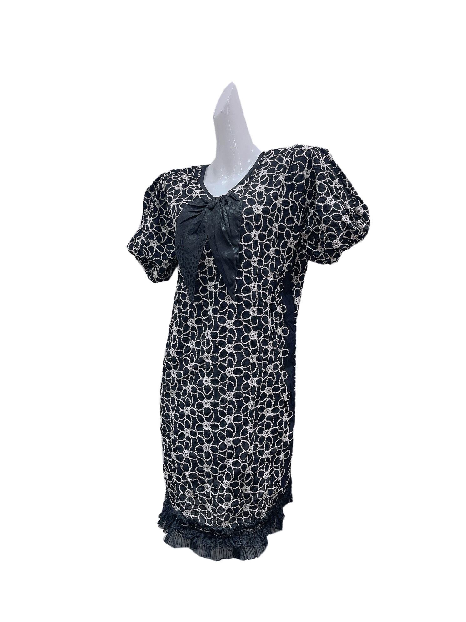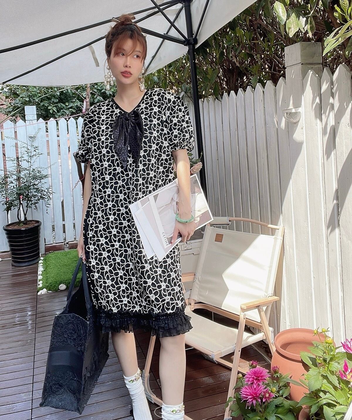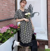 黒 花柄 フラワー ワンピース ゆったり フリル