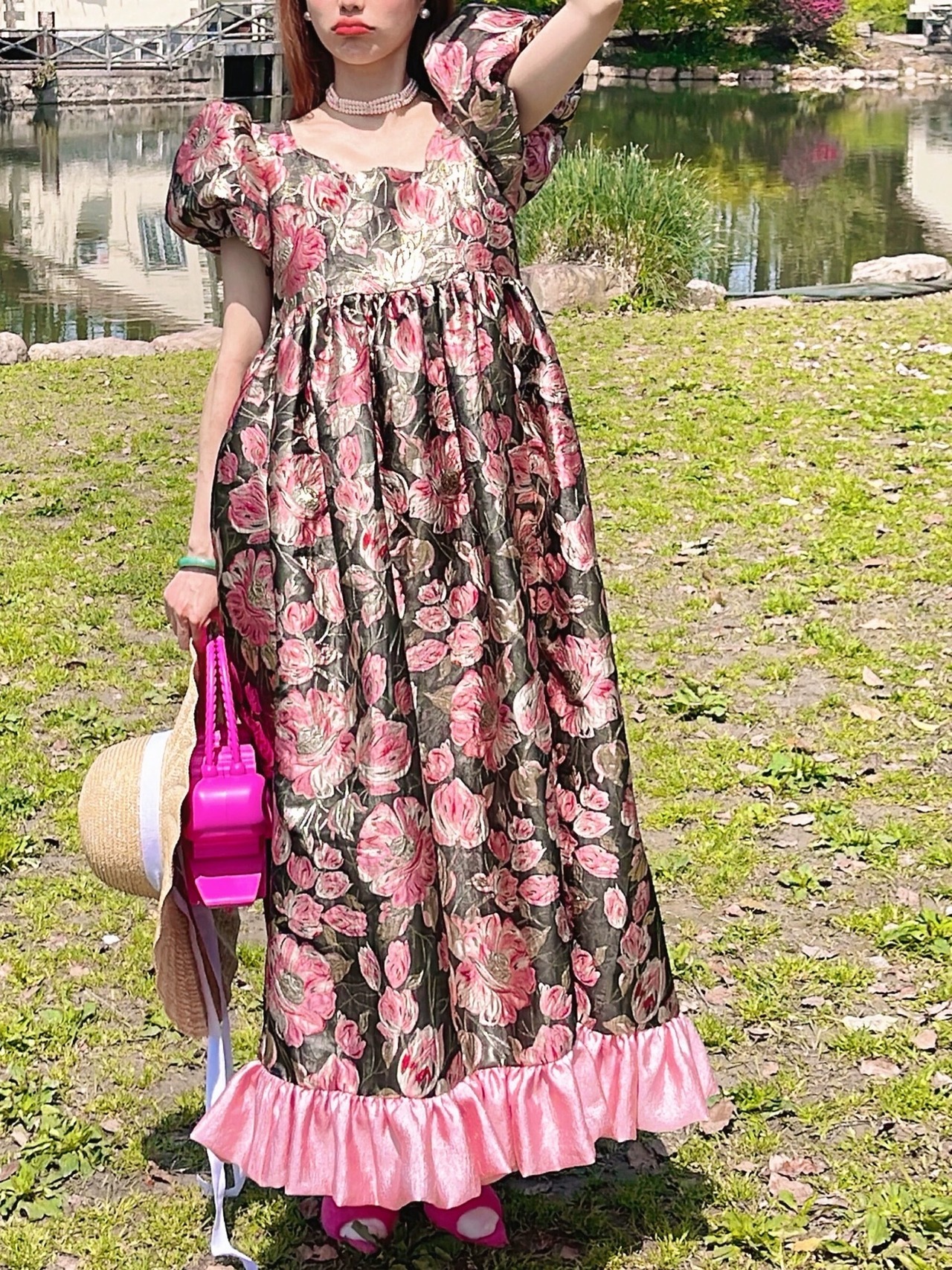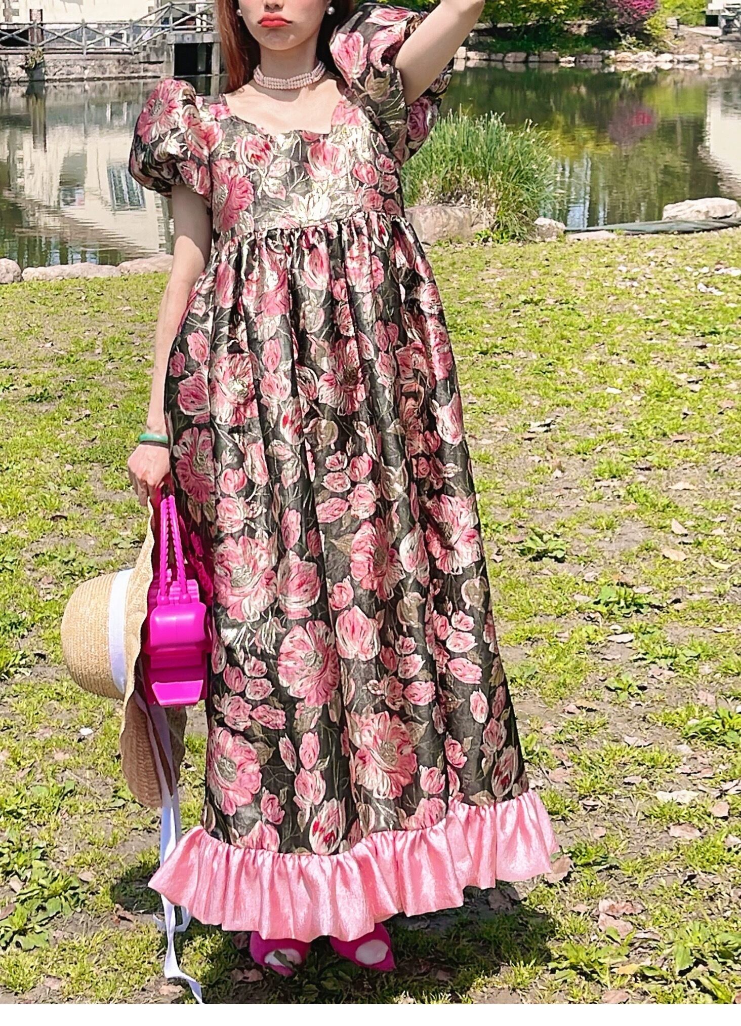 花柄 フラワー ワンピース ガーリー マキシ ゆったり