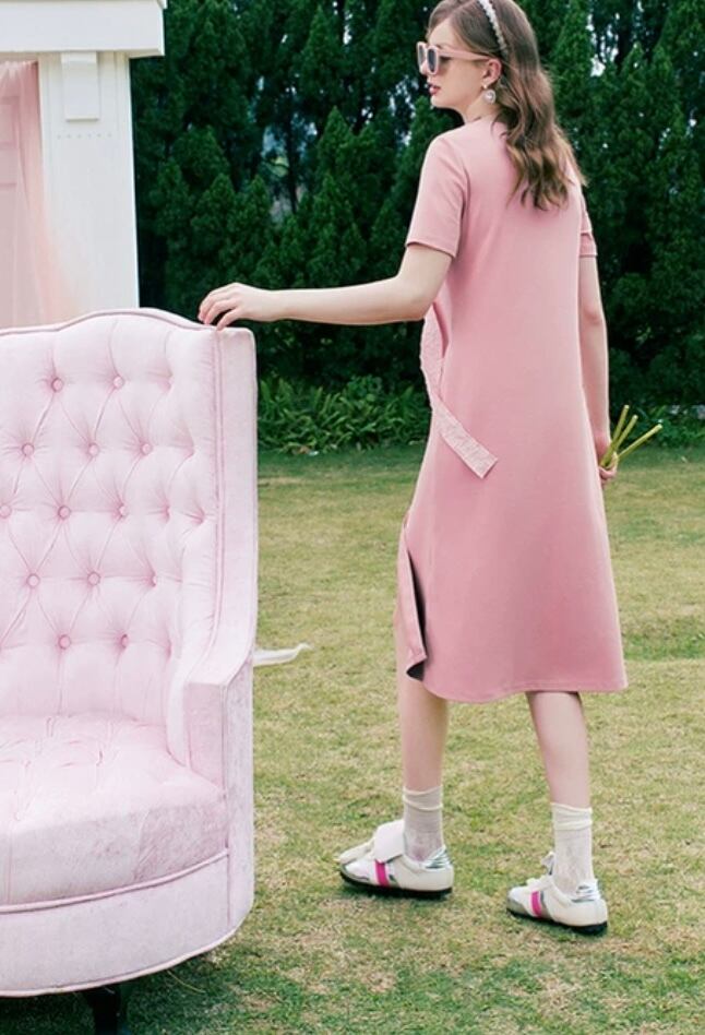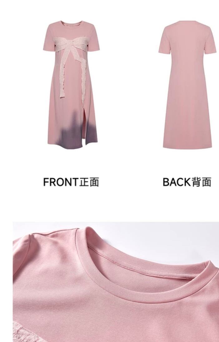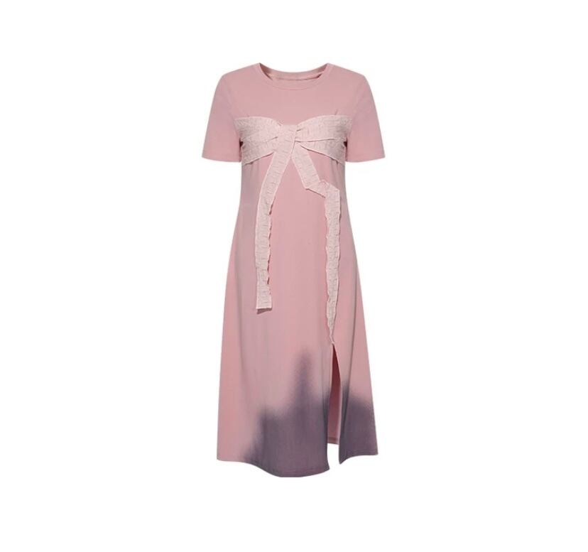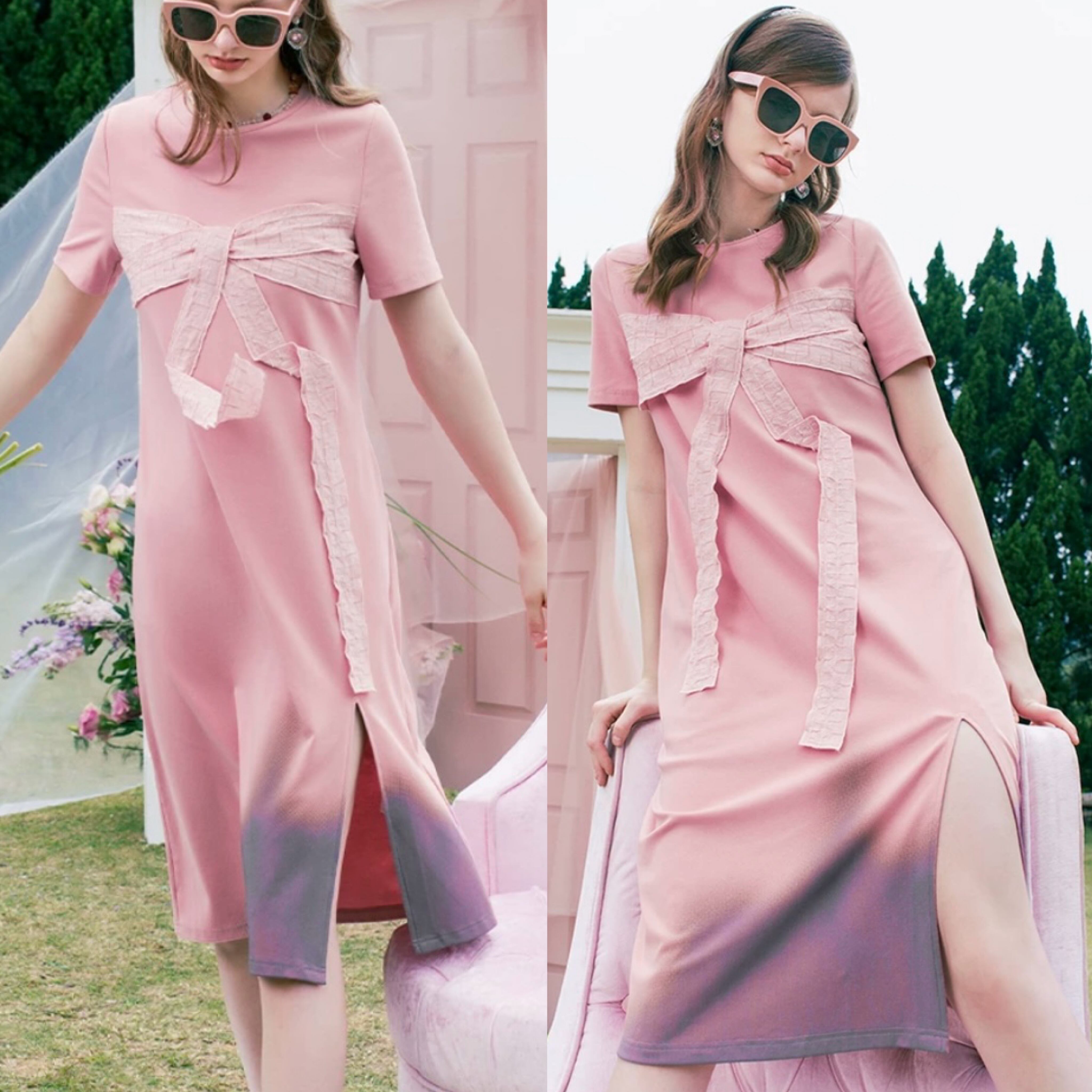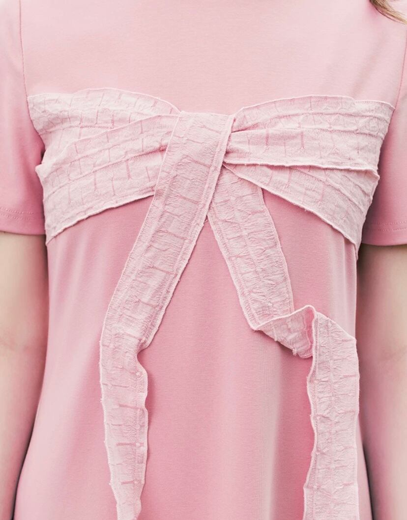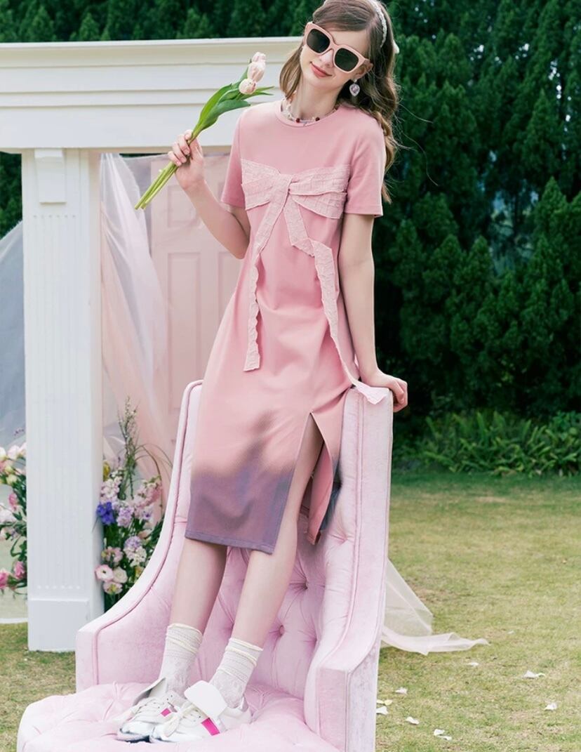 ピンク カジュアル リボン ガーリー ワンピース スウェット