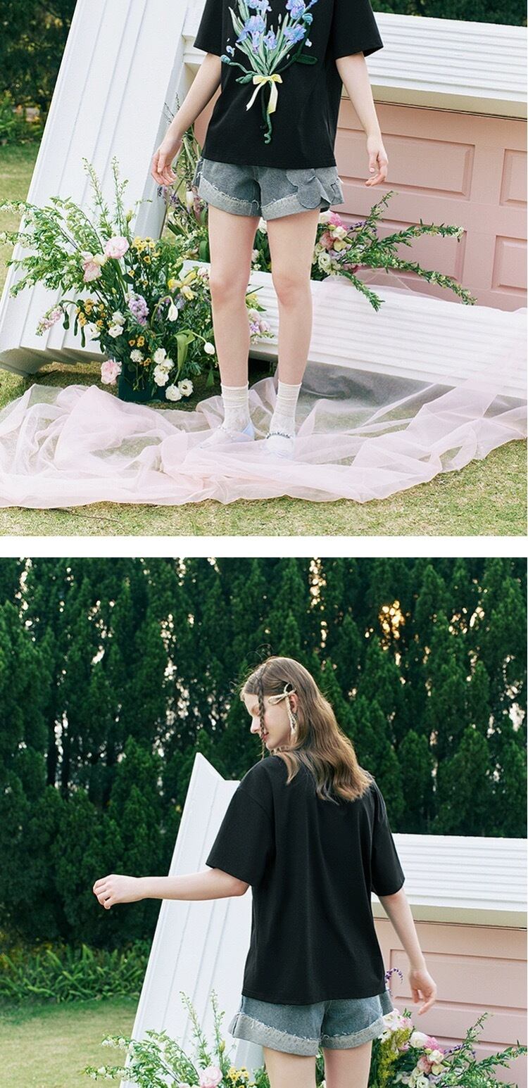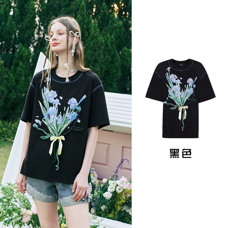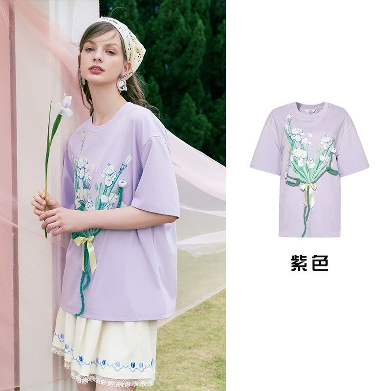 紫 花柄 黒 カジュアル スウェット トップス 花束 フラワー
