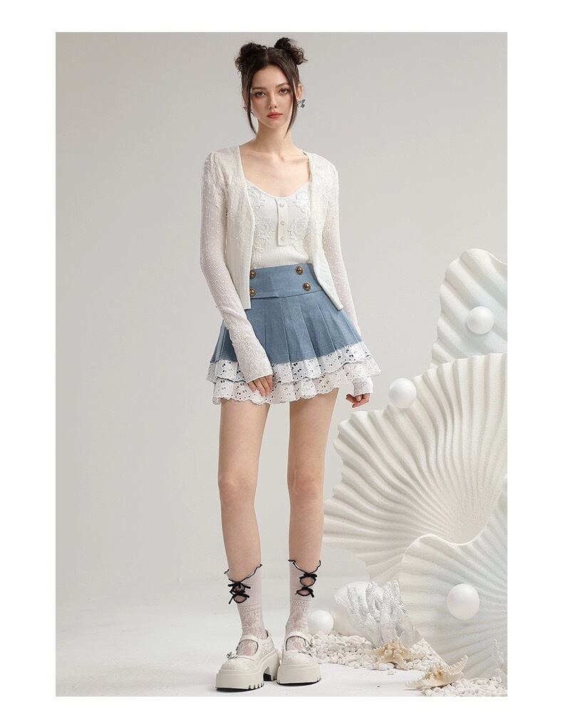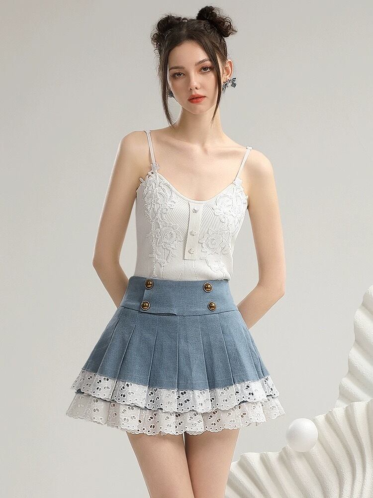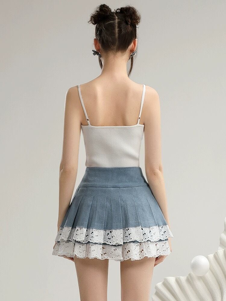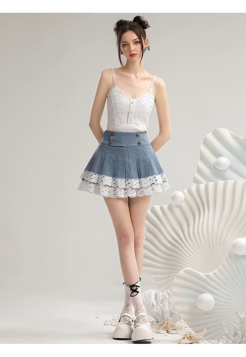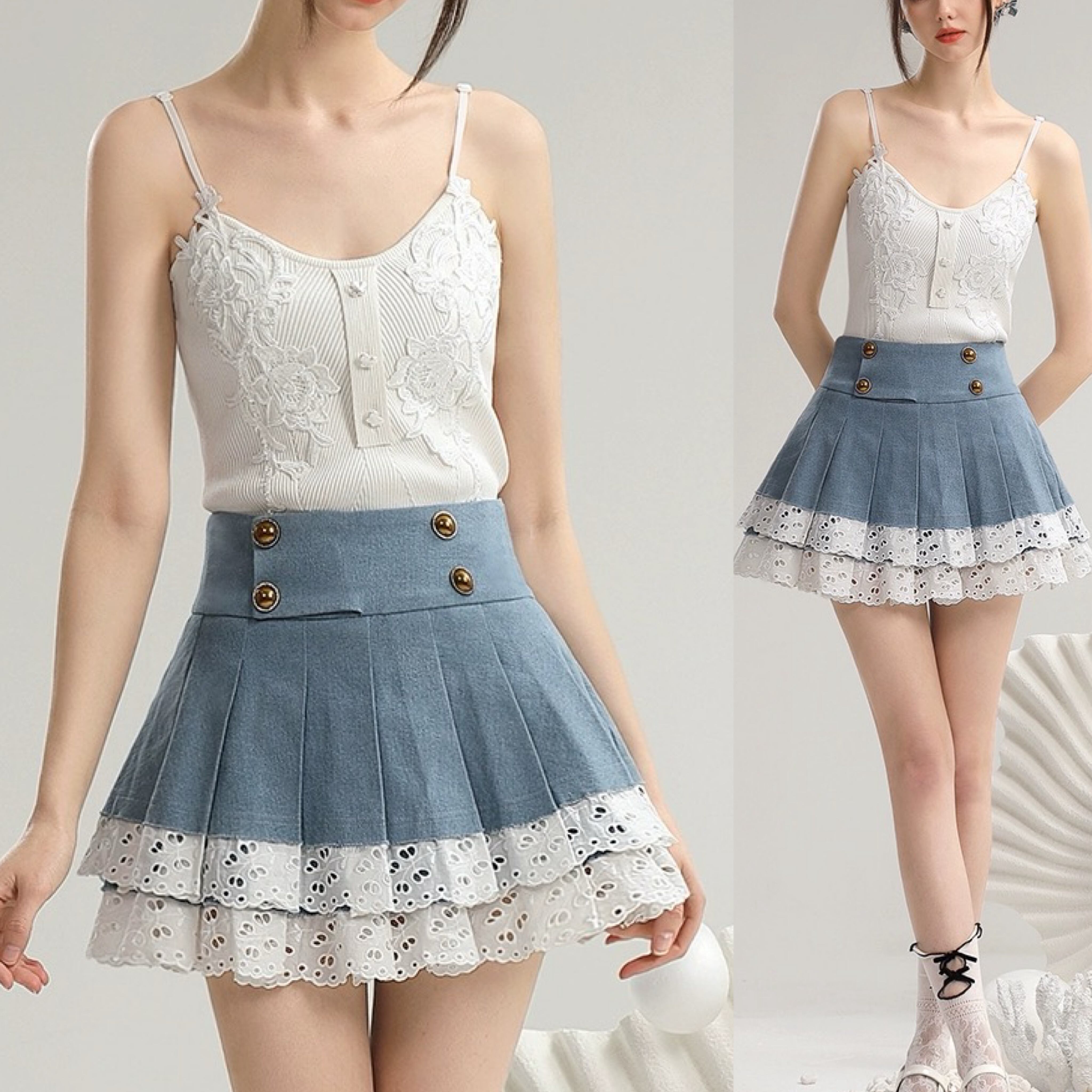 デニム スカート ガーリー 可愛い 姫 プリーツ