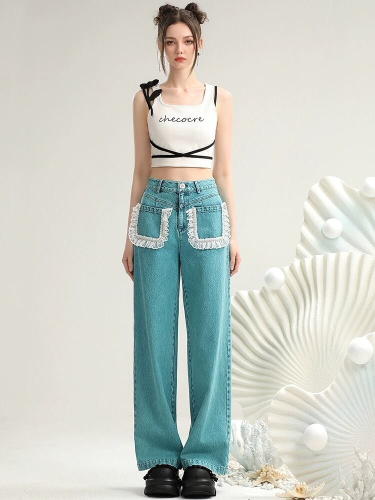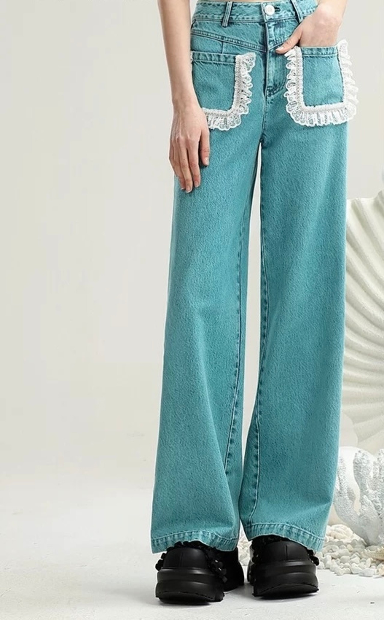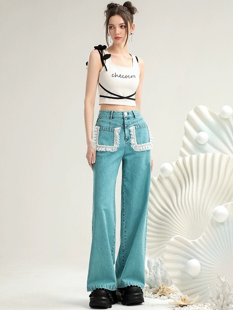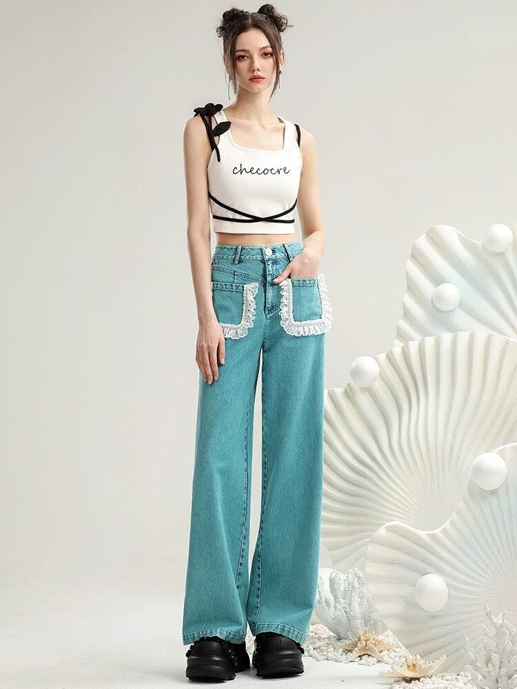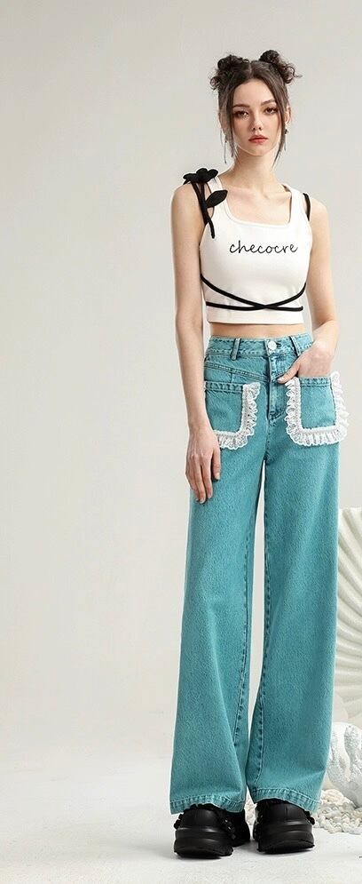 緑 ブルー 水色 ポケット ガーリー フリル パンツ ボトムス