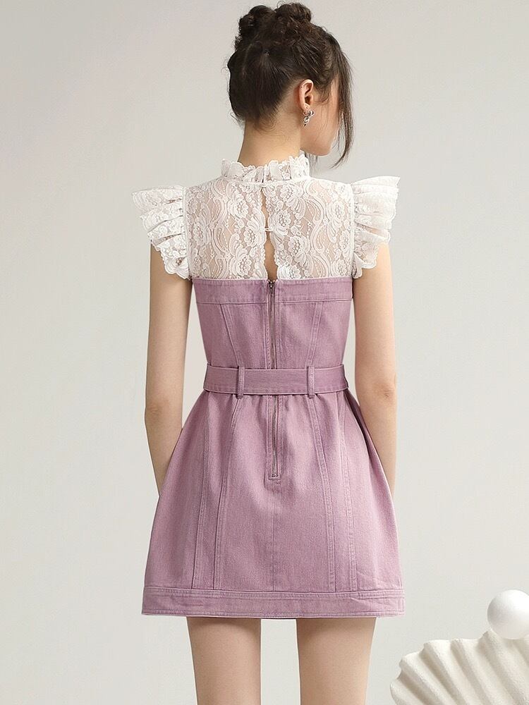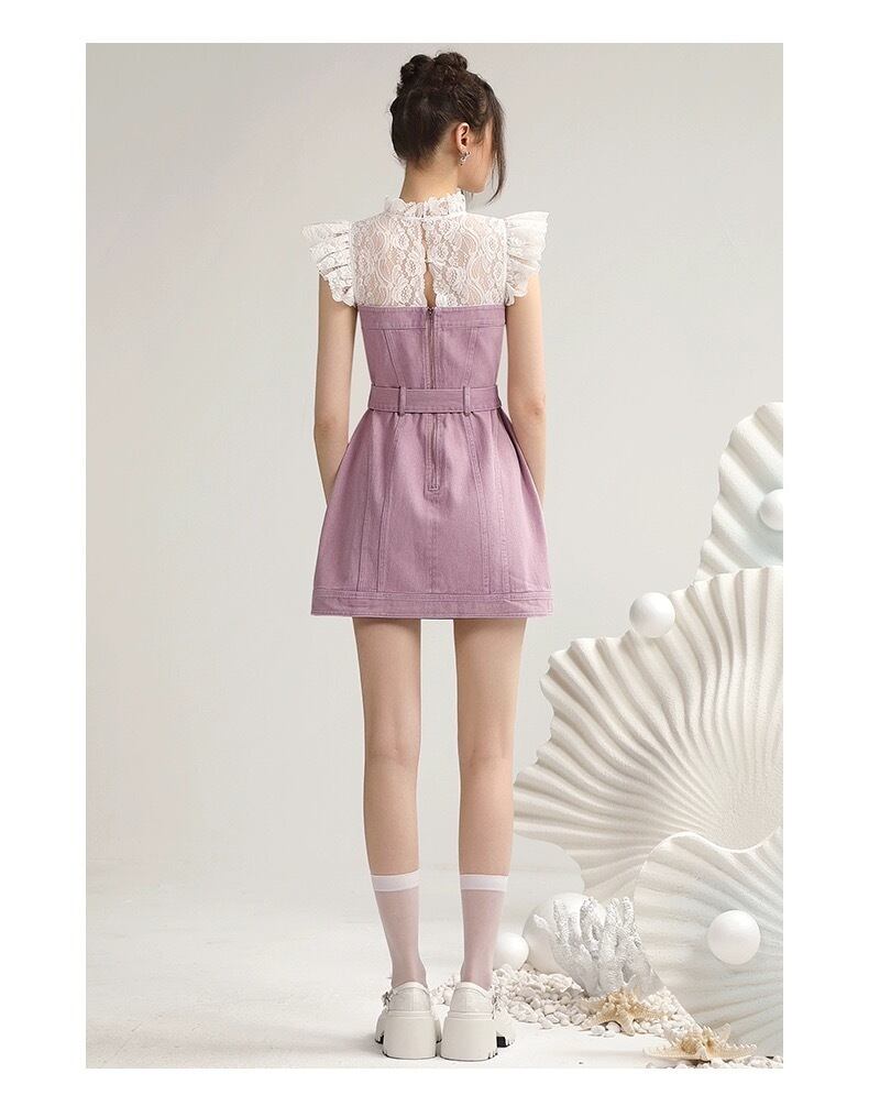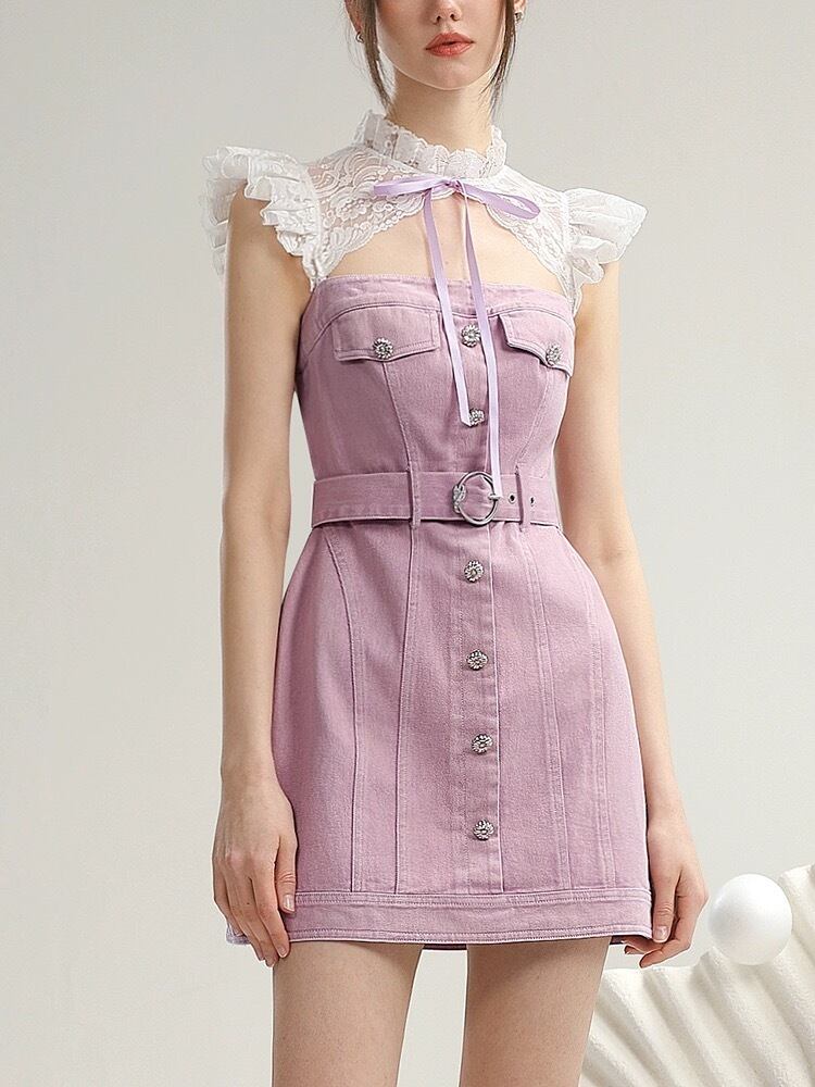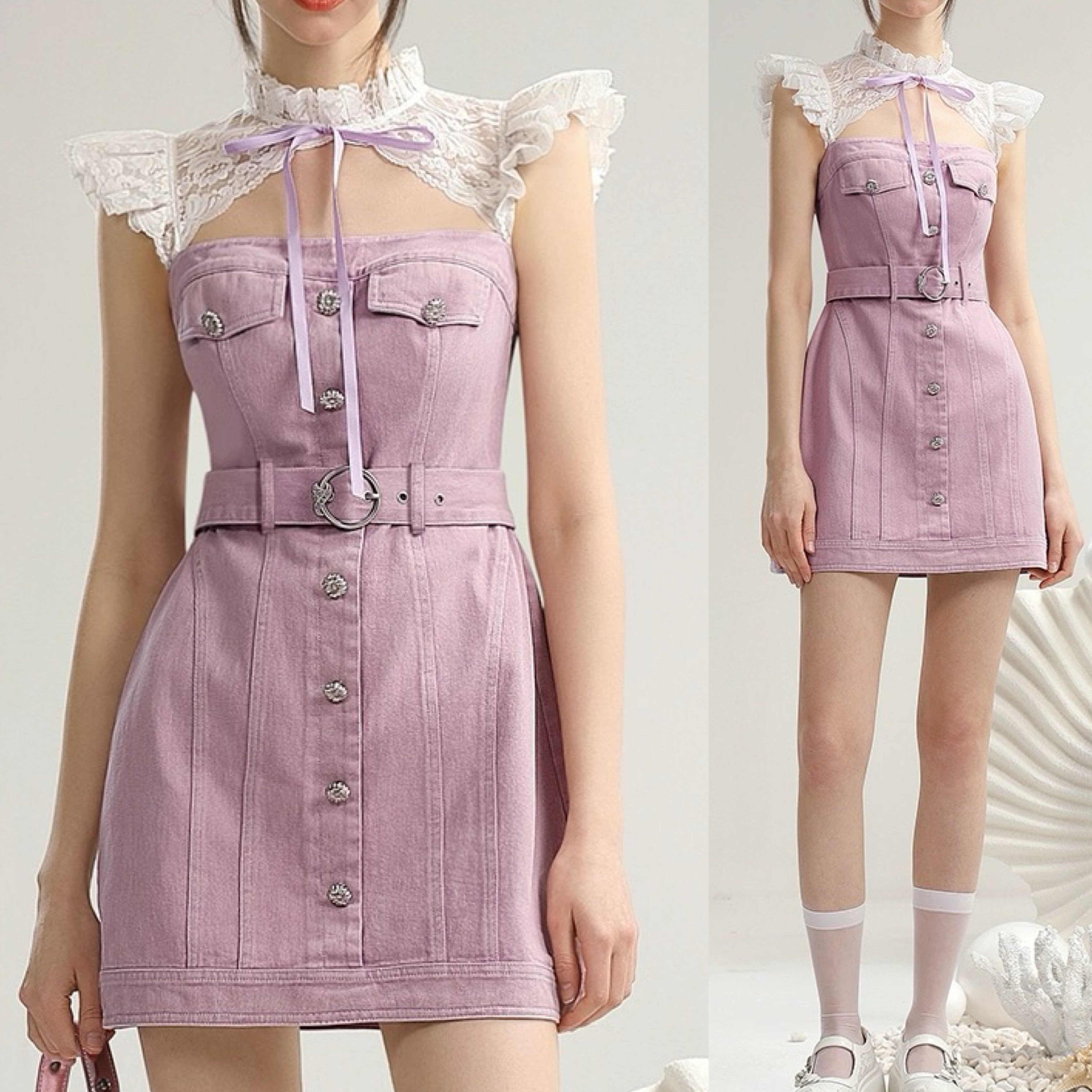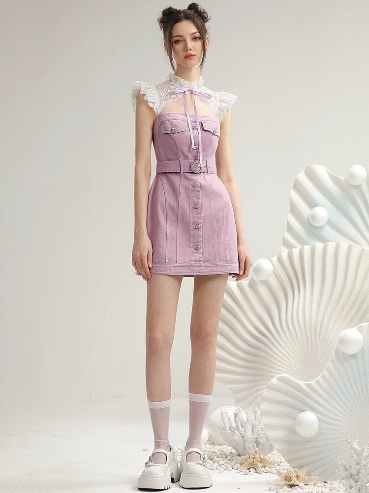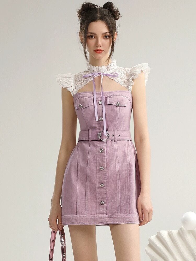 紫 ワンピース カーリ 可愛い デニム リボン ブラウス