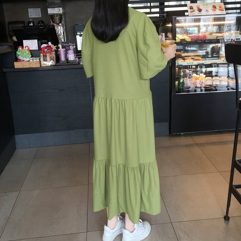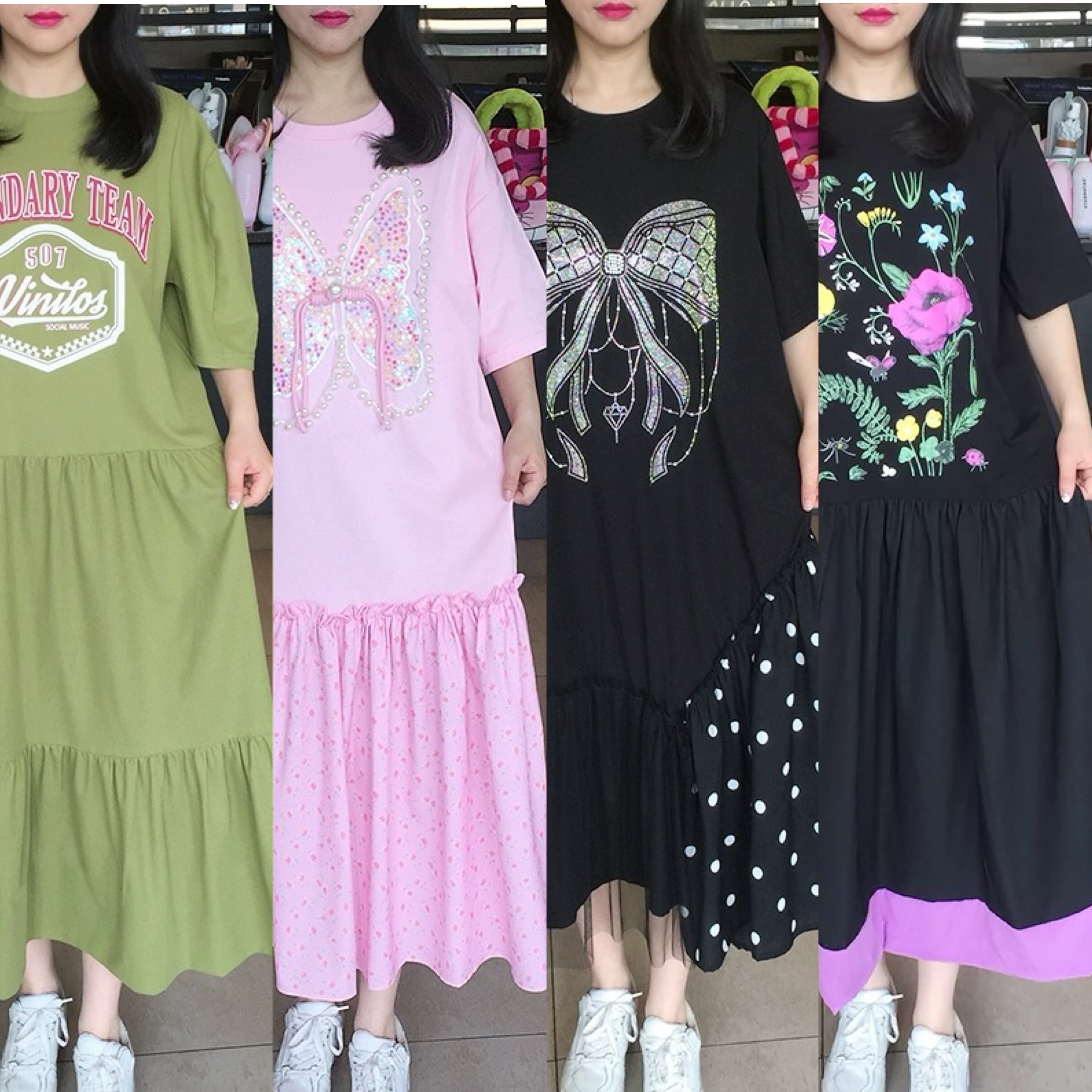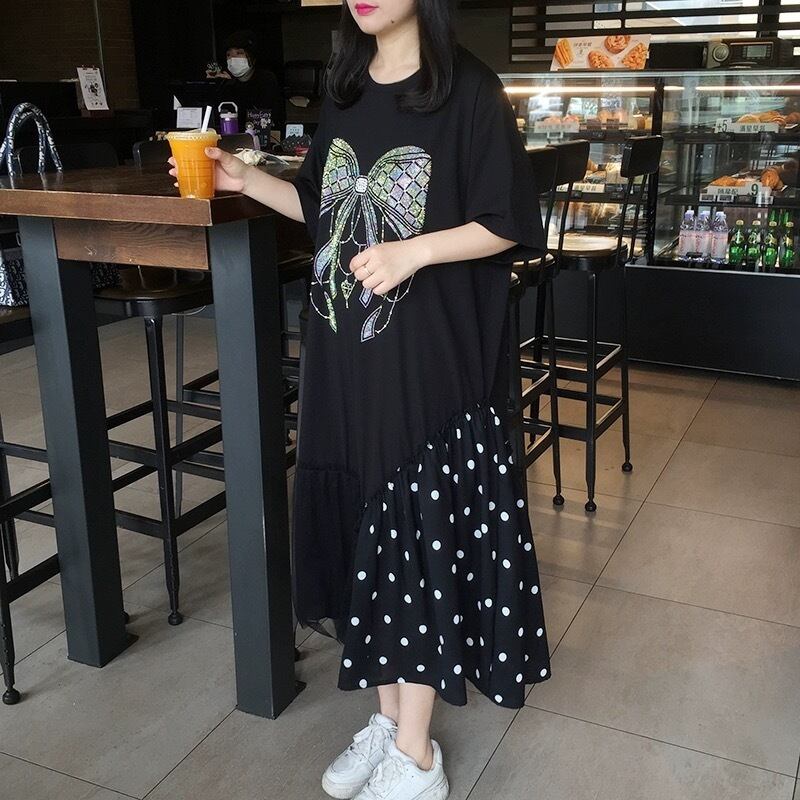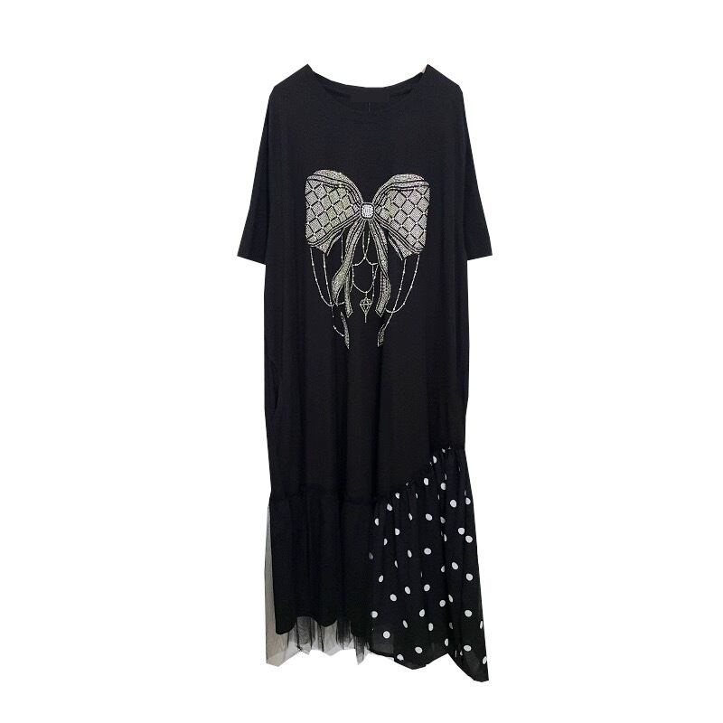 緑 黒 リボン バタフライ カジュアル スウェット ワンピース