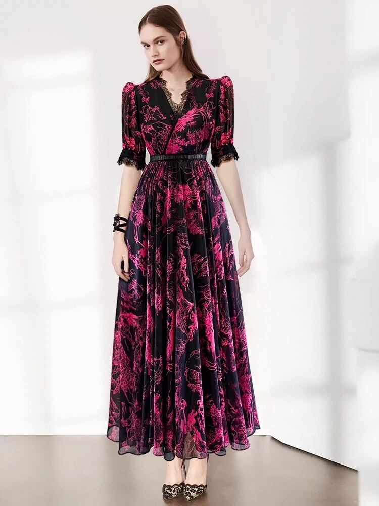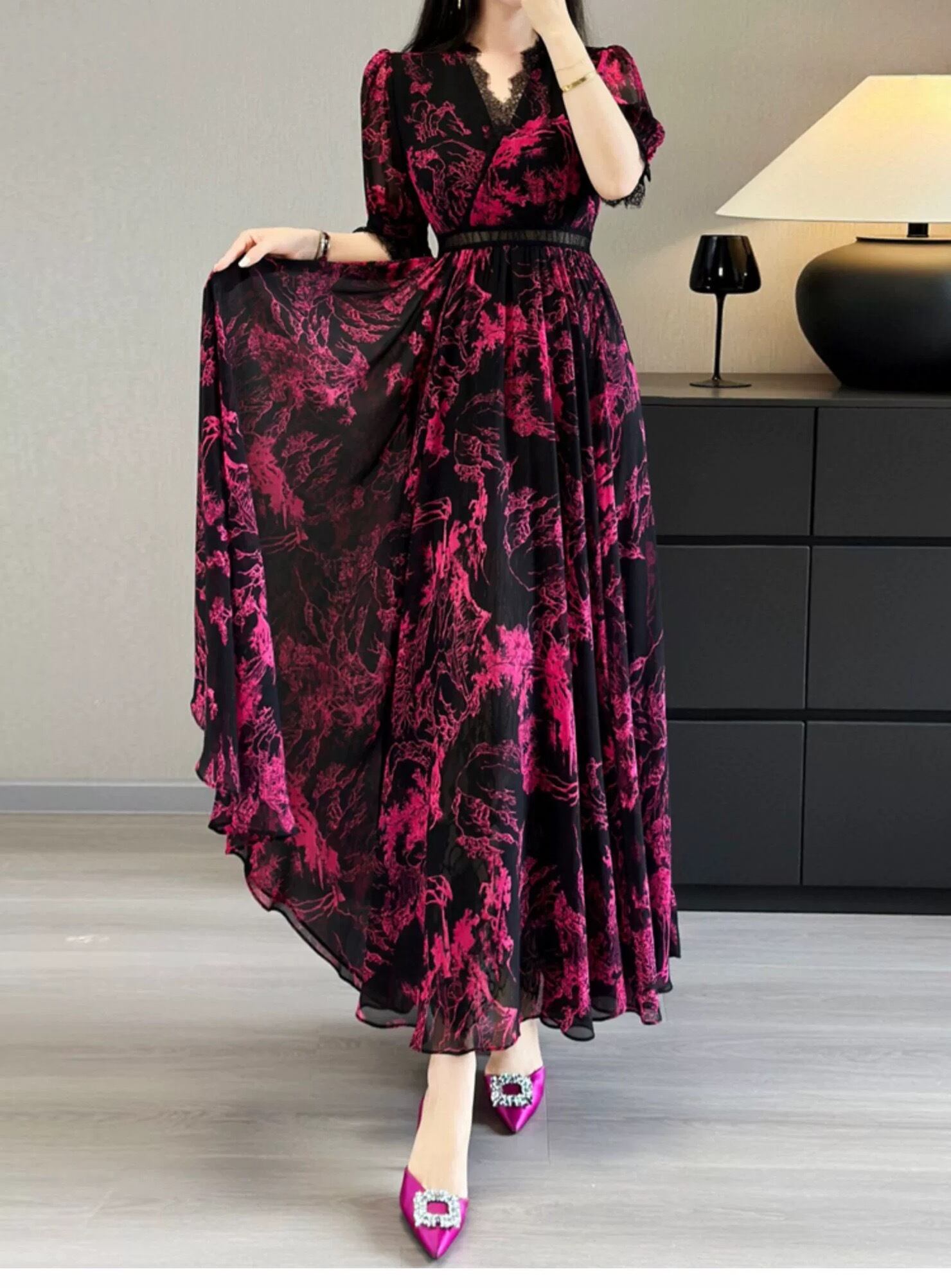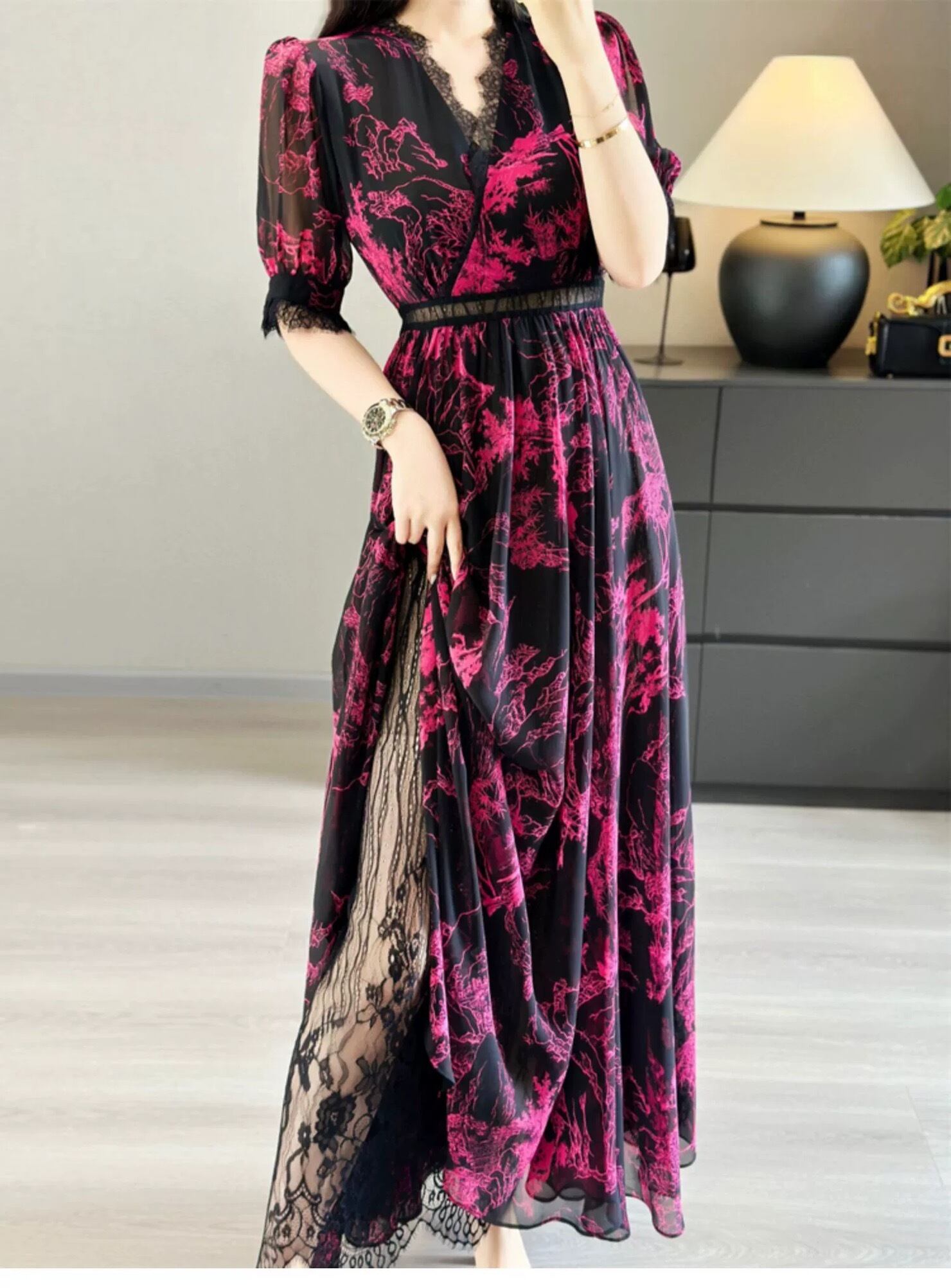 ピンク 緑 黒 エレガント ワンピース XL グラデーション