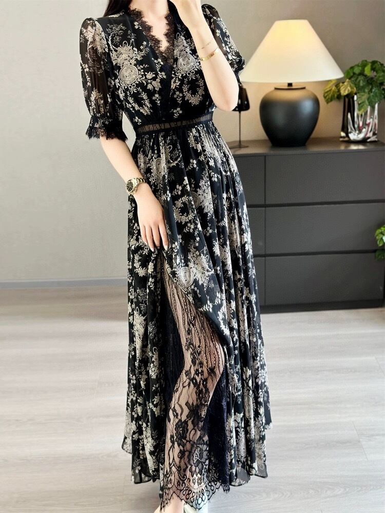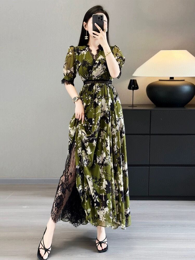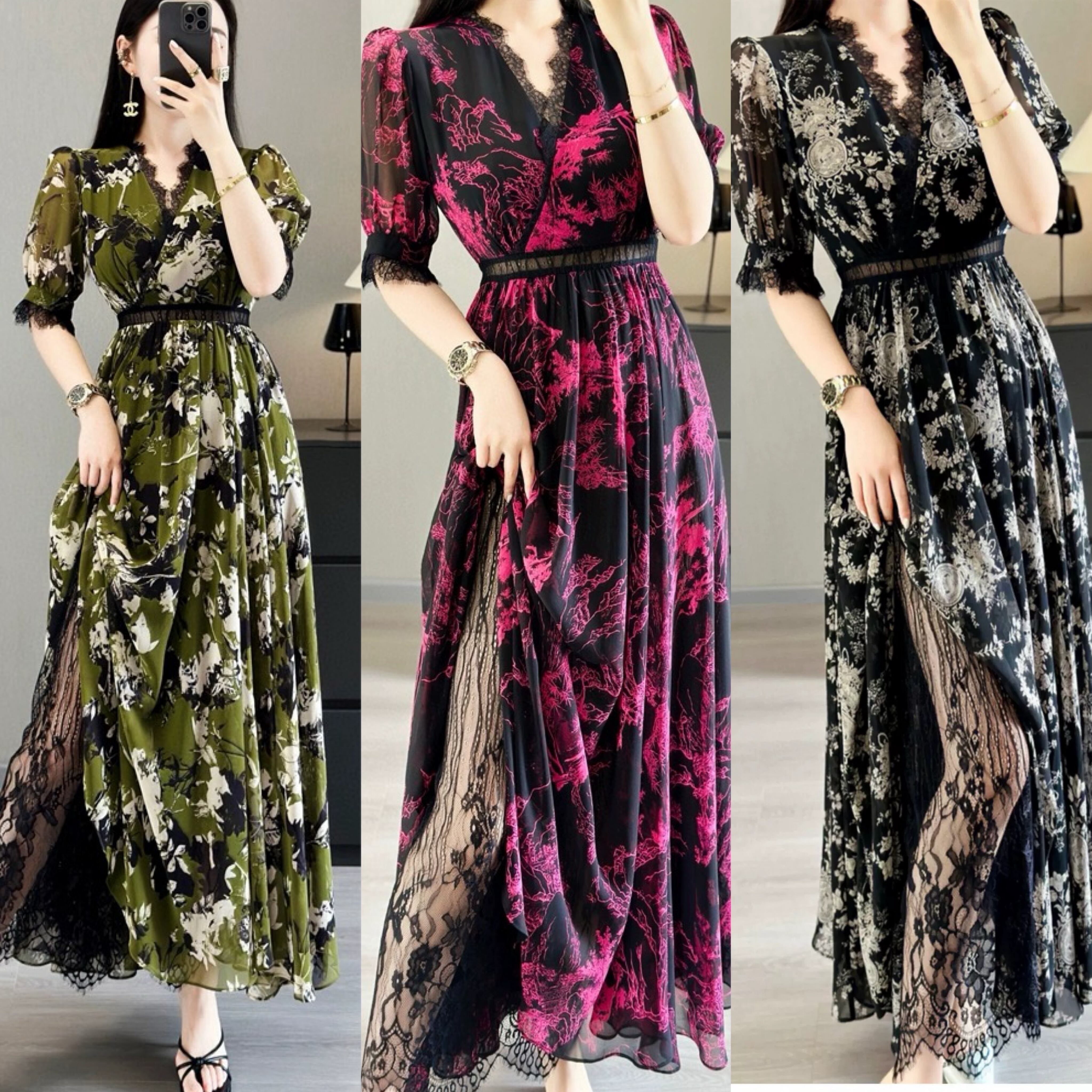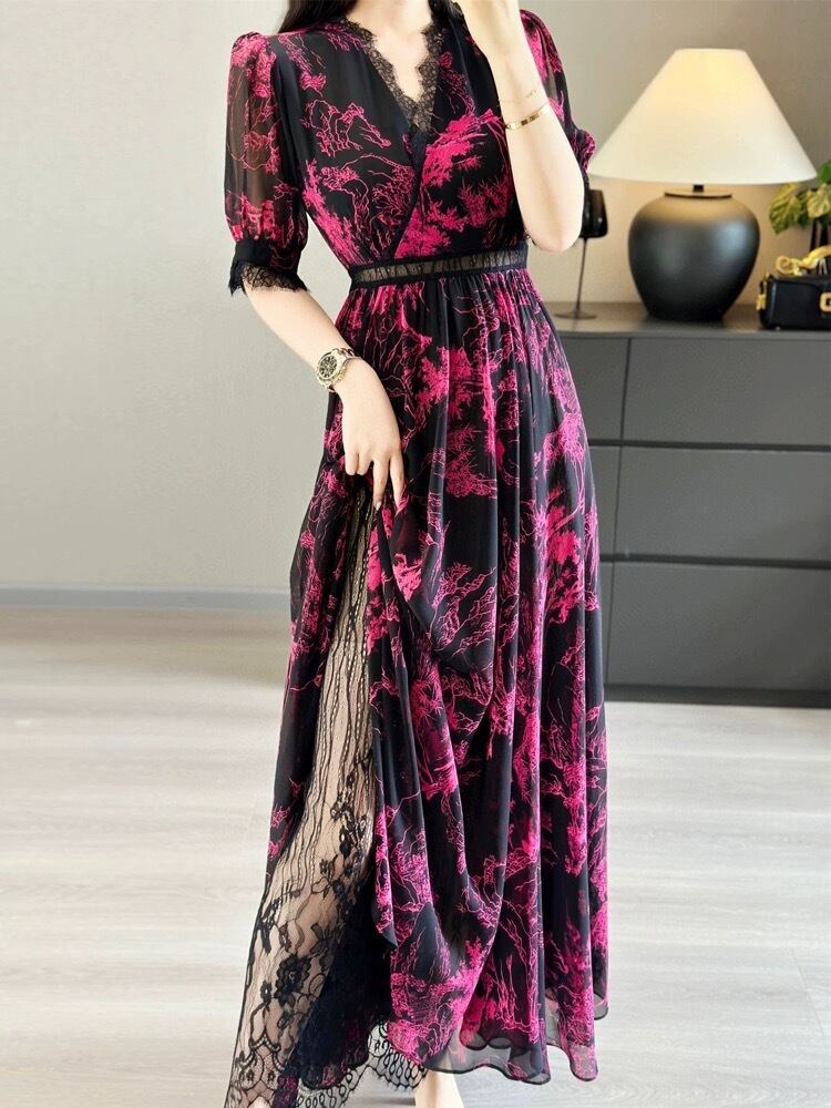 ピンク 緑 黒 エレガント ワンピース XL グラデーション