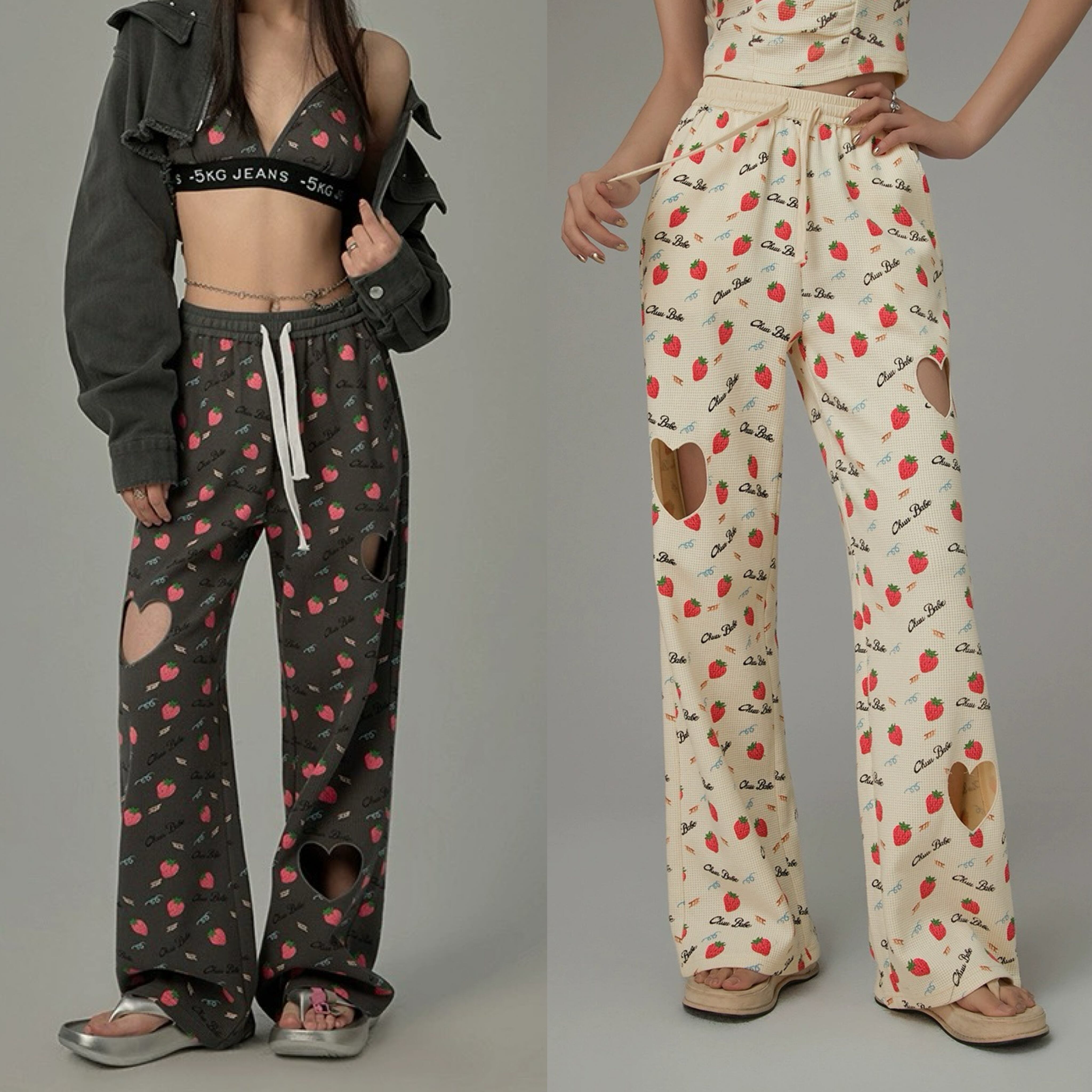 白 黒 ハート スウェット パンツ 赤 ガーリー ボトムス