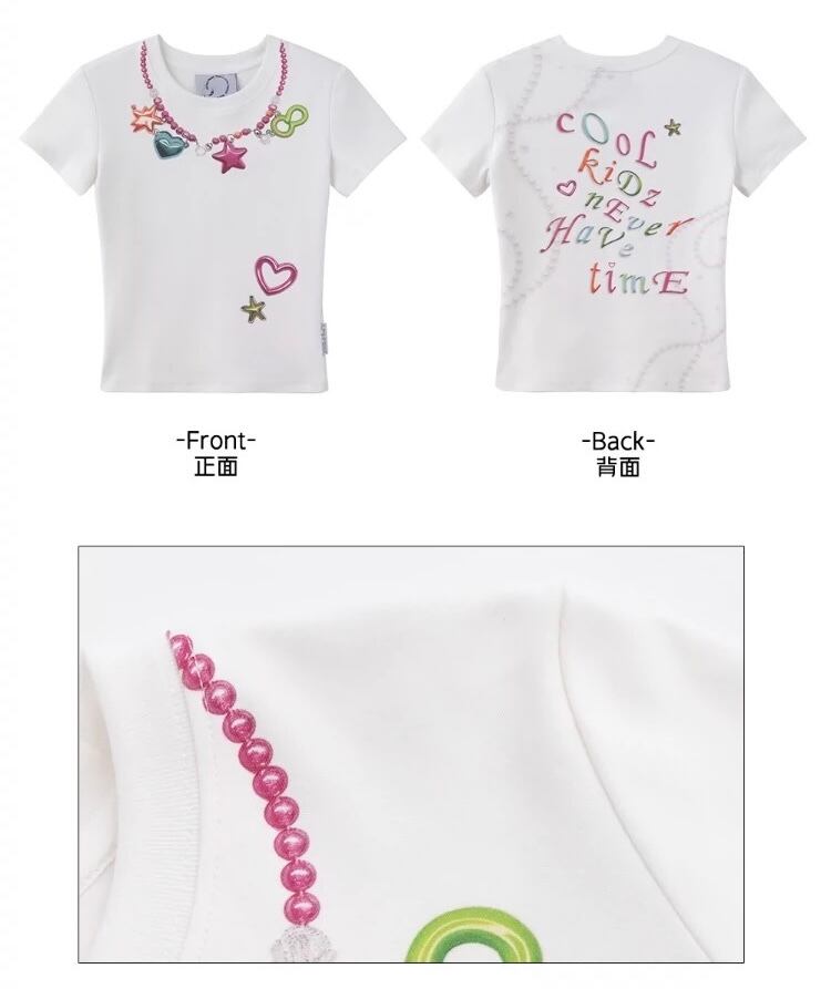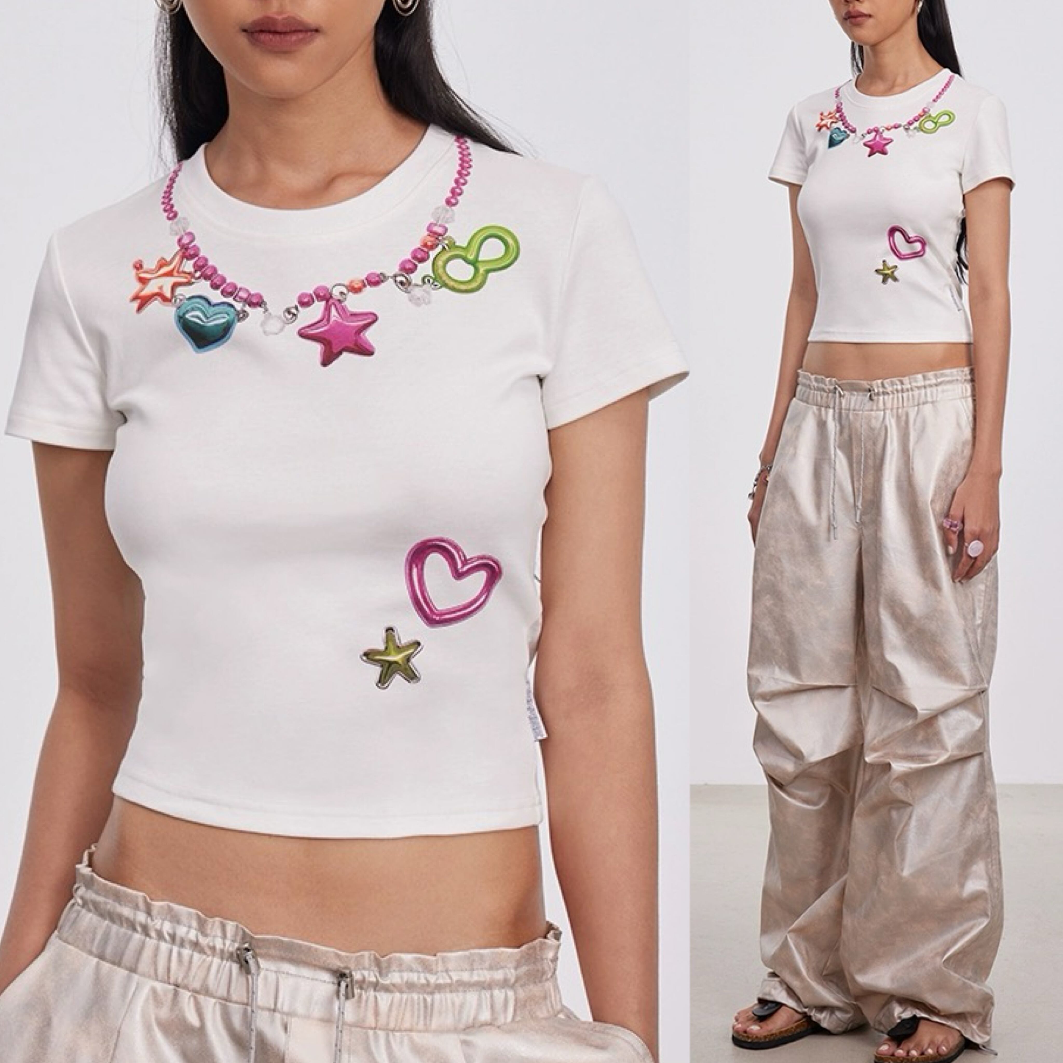 カラフル 白 ネックレース 原宿 トップス カジュアル ブラウス