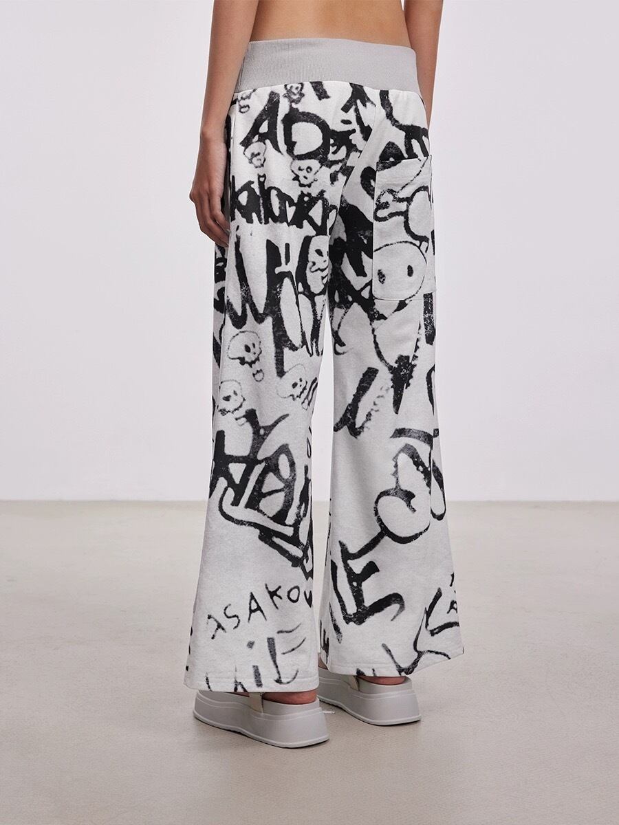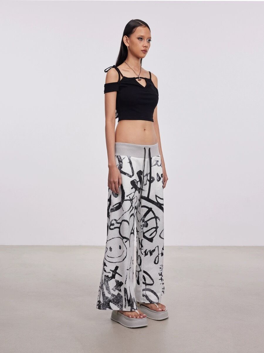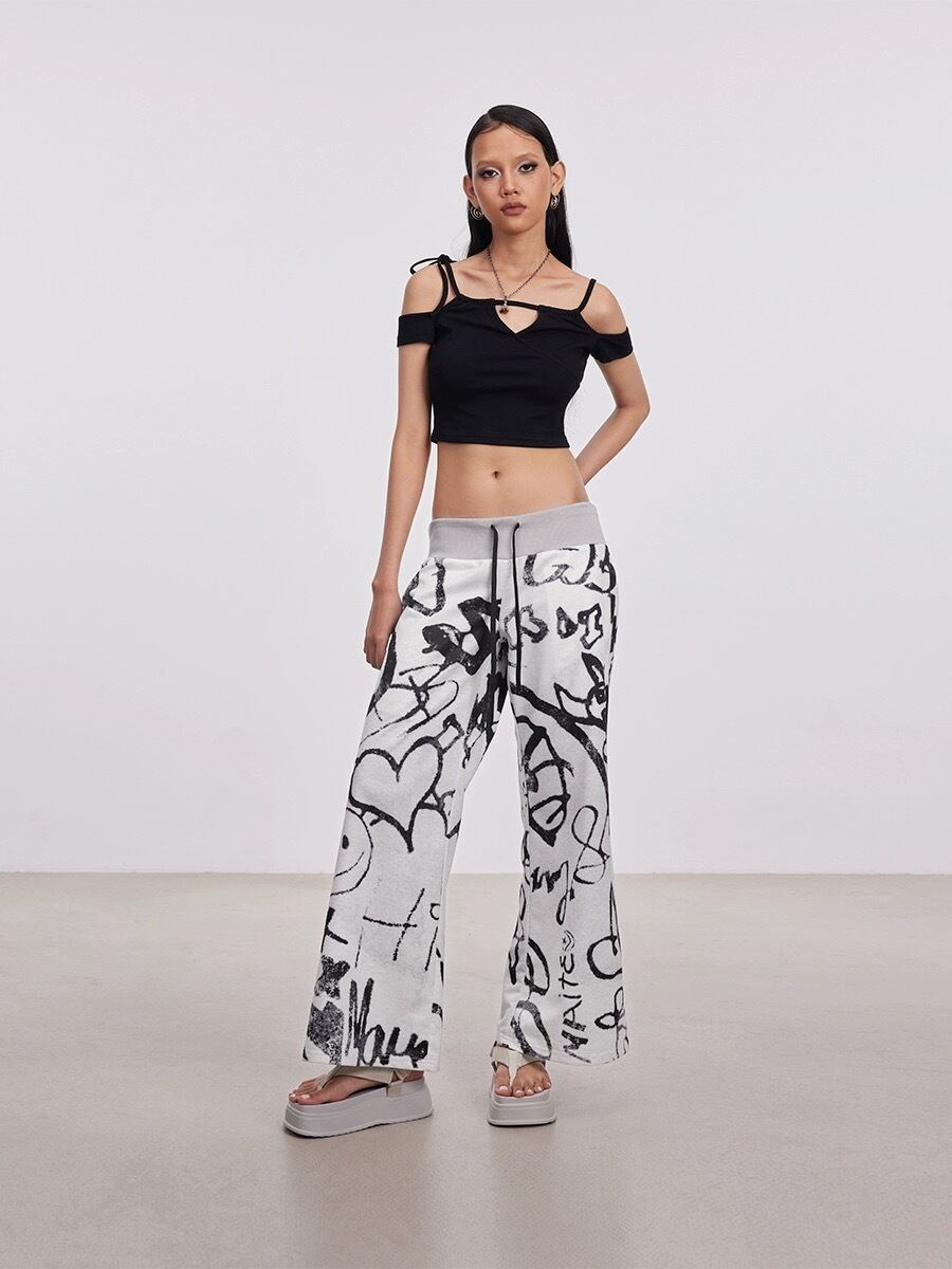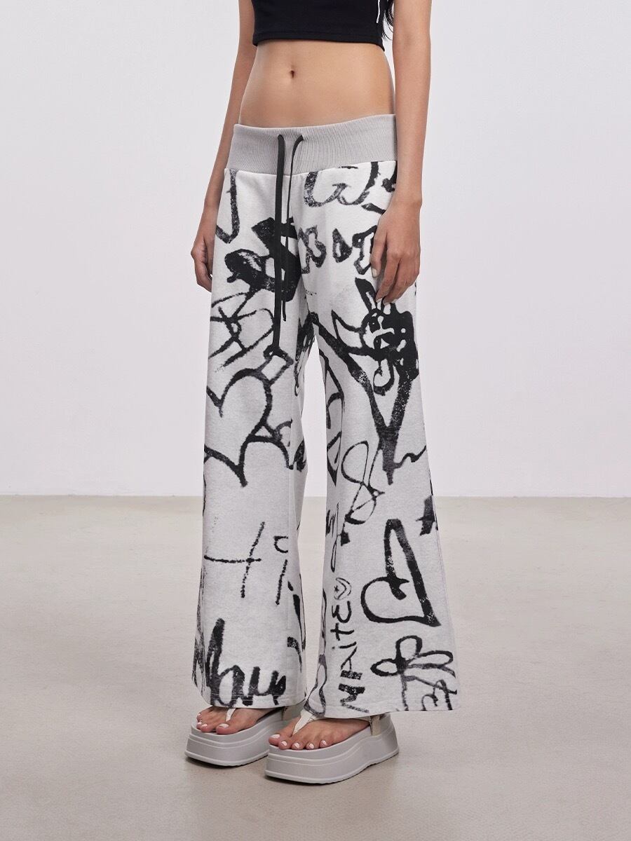 グレー 落書き カジュアル スウェット パンツ ルームウェア ハート