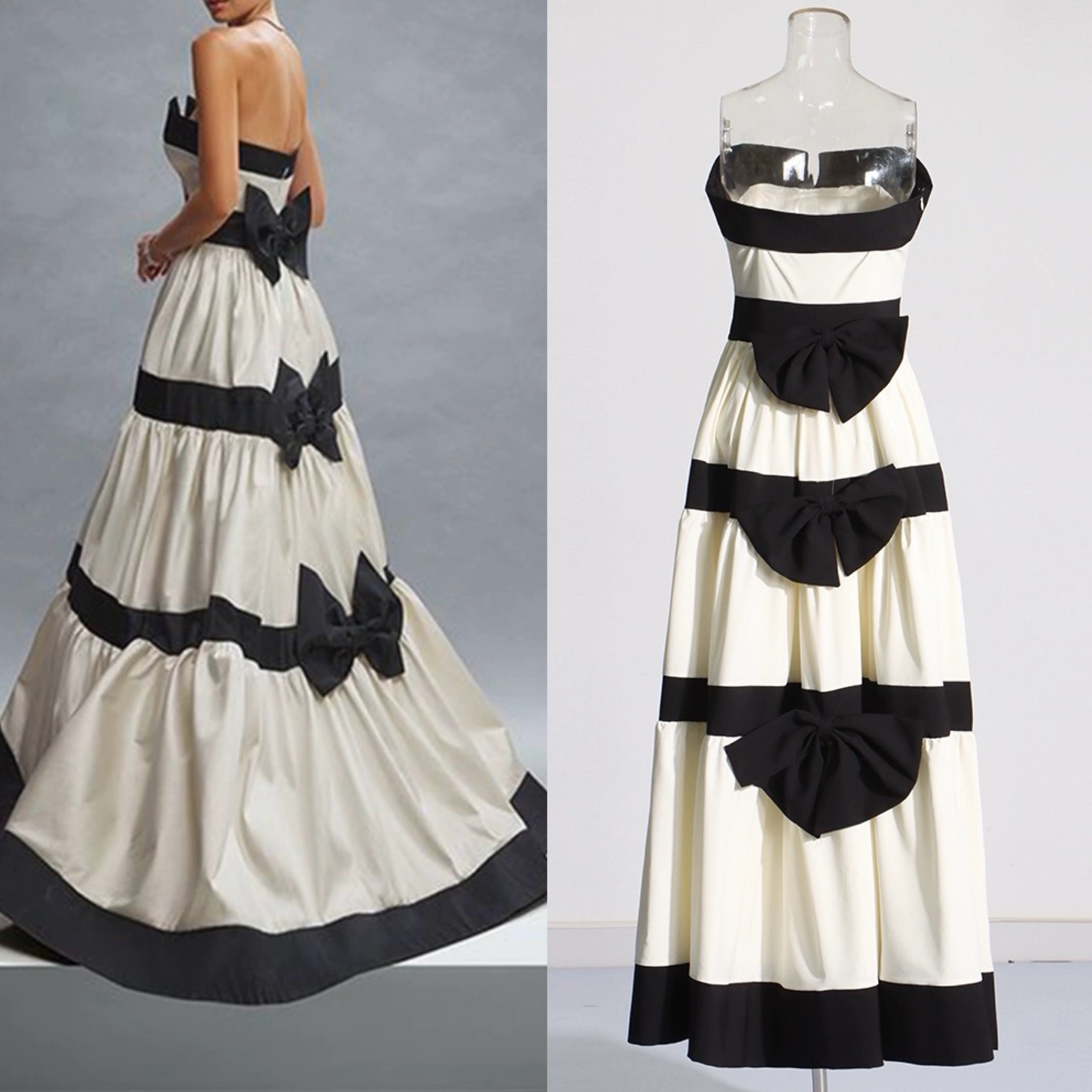 リボン ベアトップ ワンピース ドレス マキシ XL エレガント