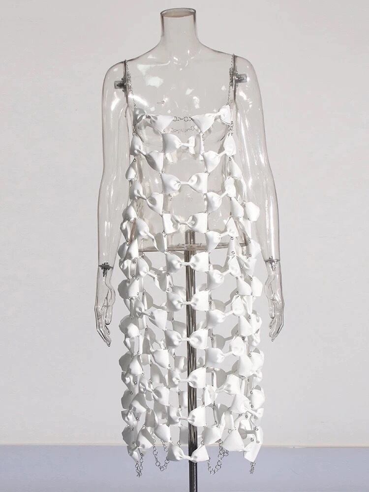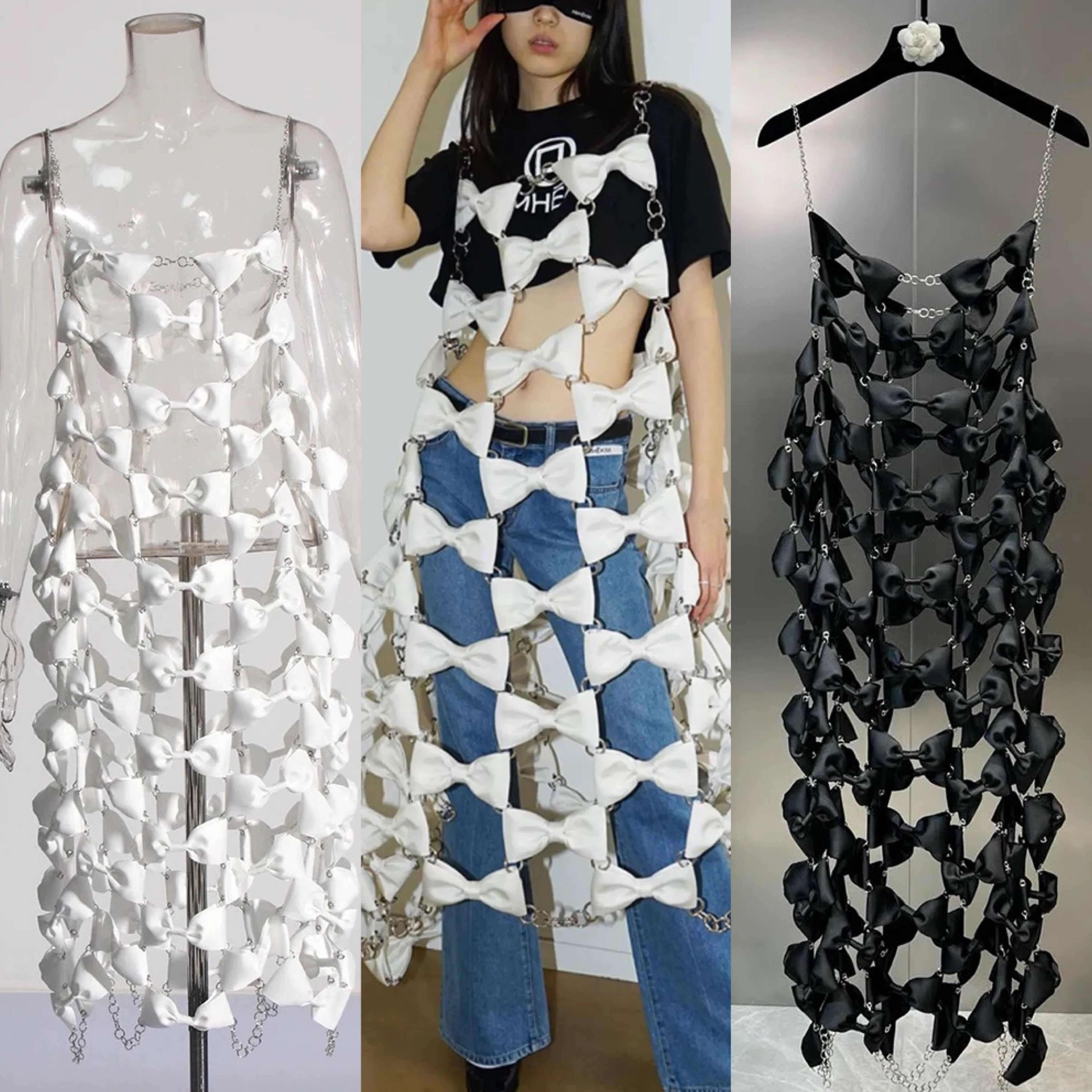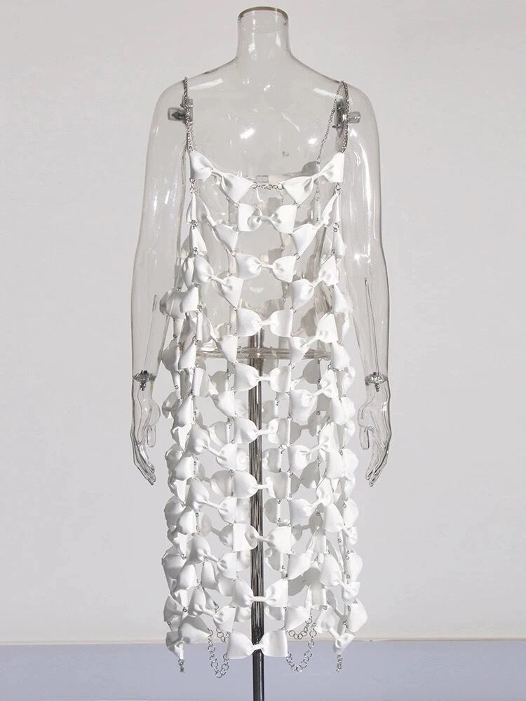 リボン ワンピース アクセサリー ドレス 白 黒 可愛い 個性的