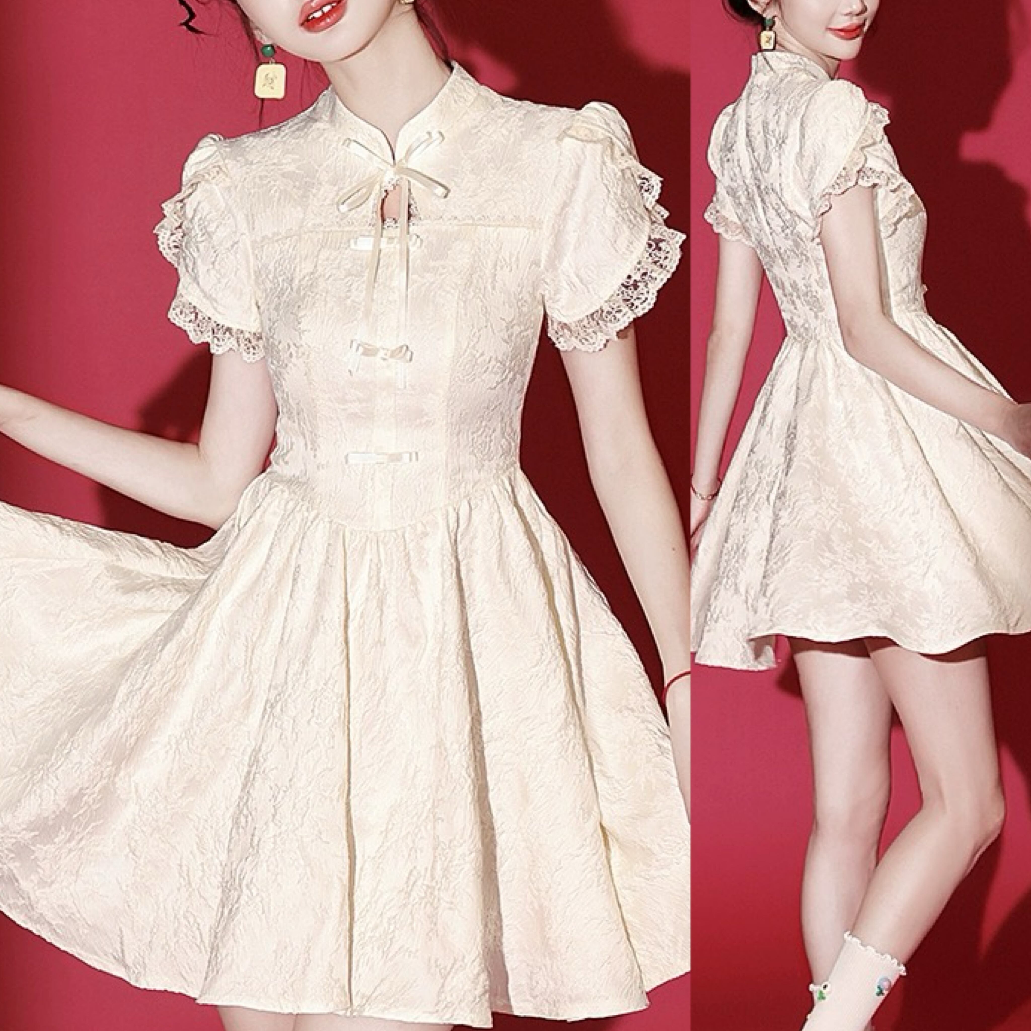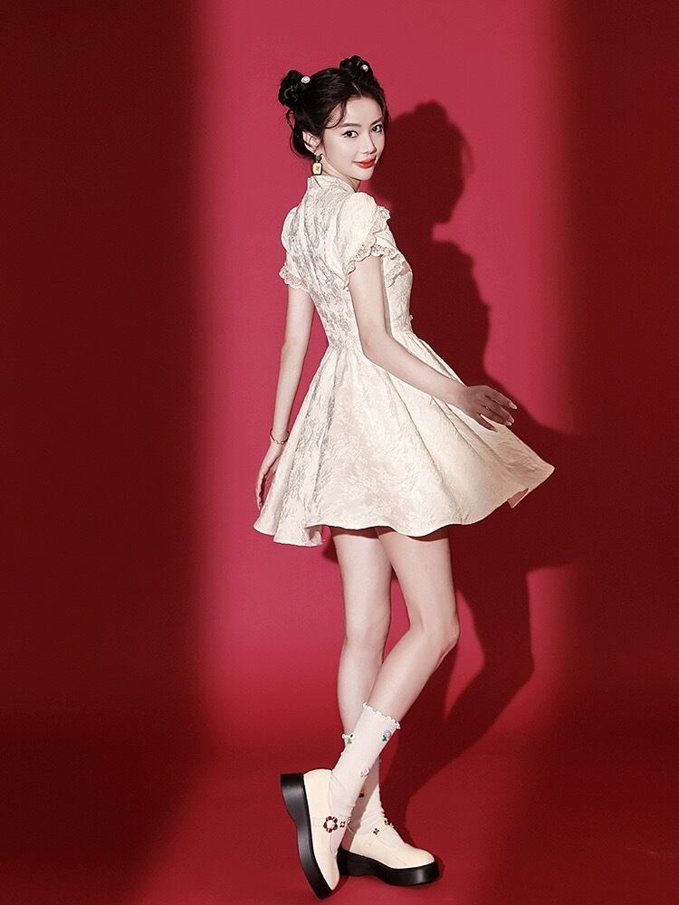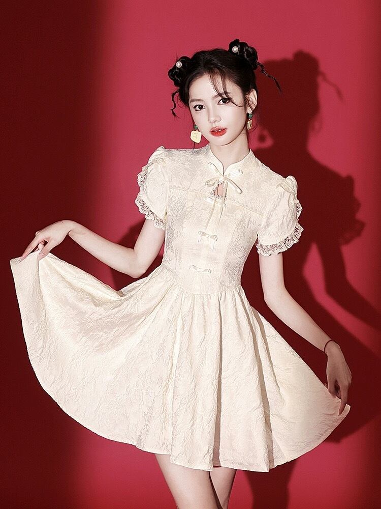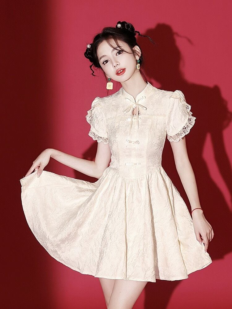 ベージュ チャイナ ワンピース ガーリー XL XXL 可愛い コスプレ